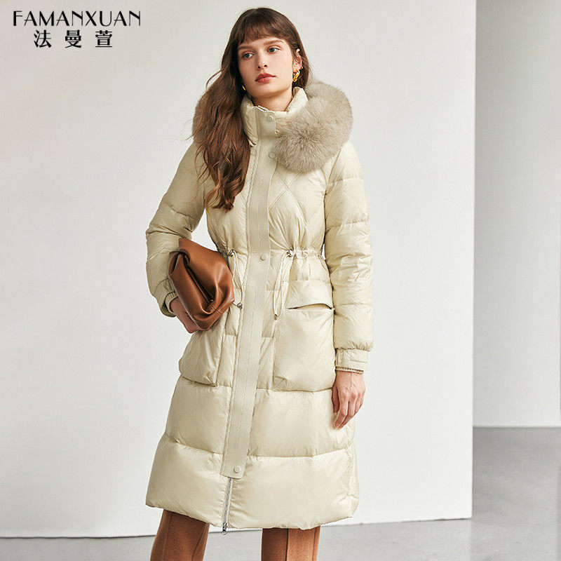 法曼萱 Бежевый зимний пуховик, вместительная и большая куртка, коллекция 2021
