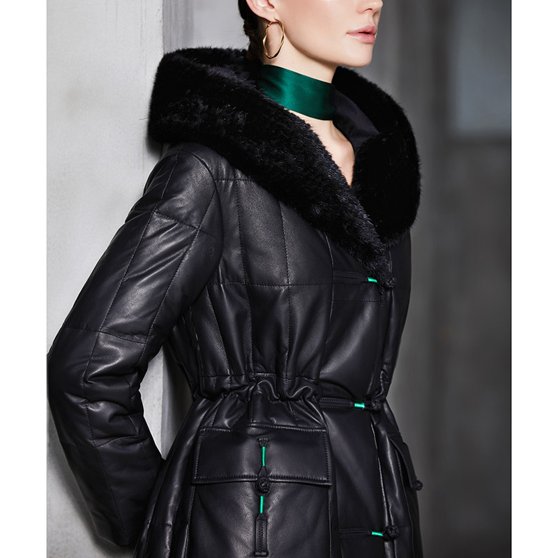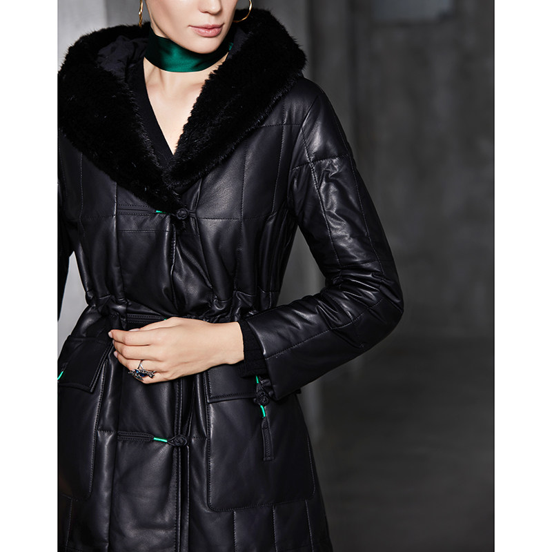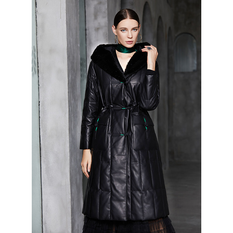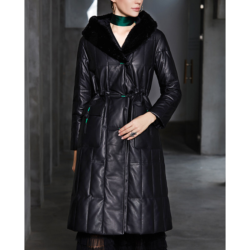 Удерживающий тепло пуховик, куртка, гусиный пух, из натуральной кожи