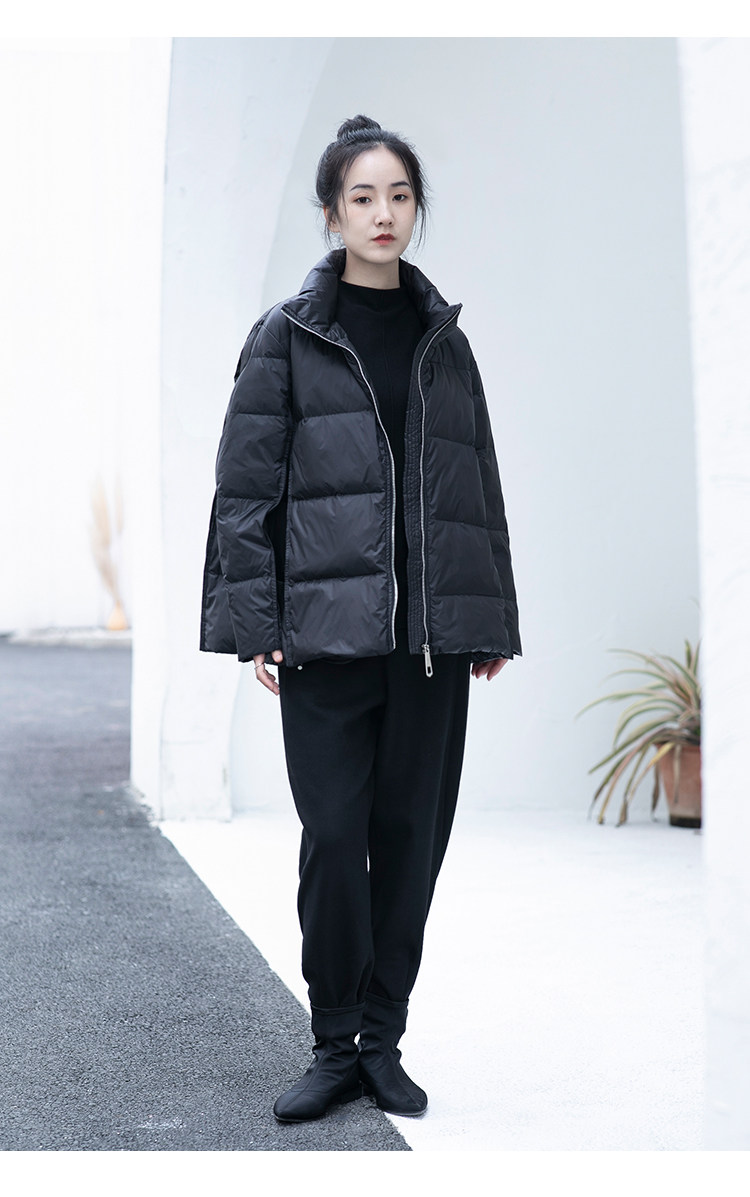 Оригинальный дизайнерский зимний минималистичный пуховик, бархатная куртка, изысканный стиль, утиный пух