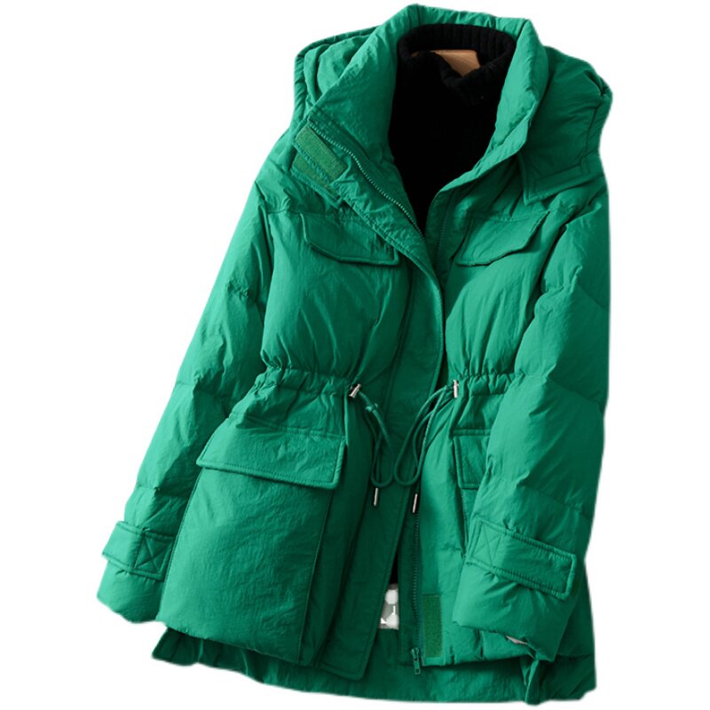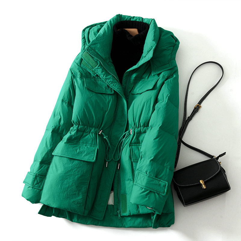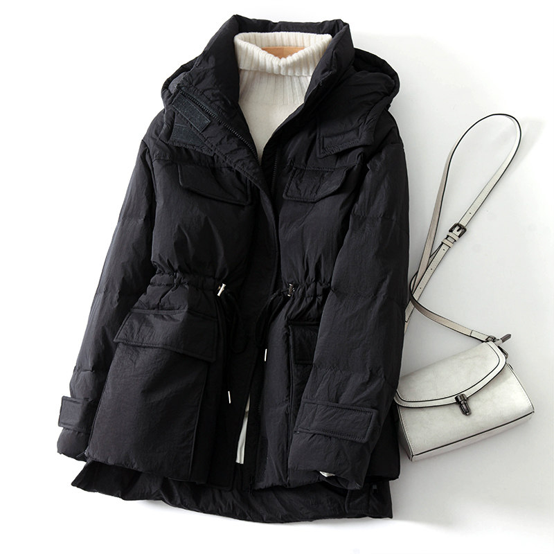 Дизайнерский корсет, модный пуховик, утепленная куртка с капюшоном, тренд сезона, в западном стиле