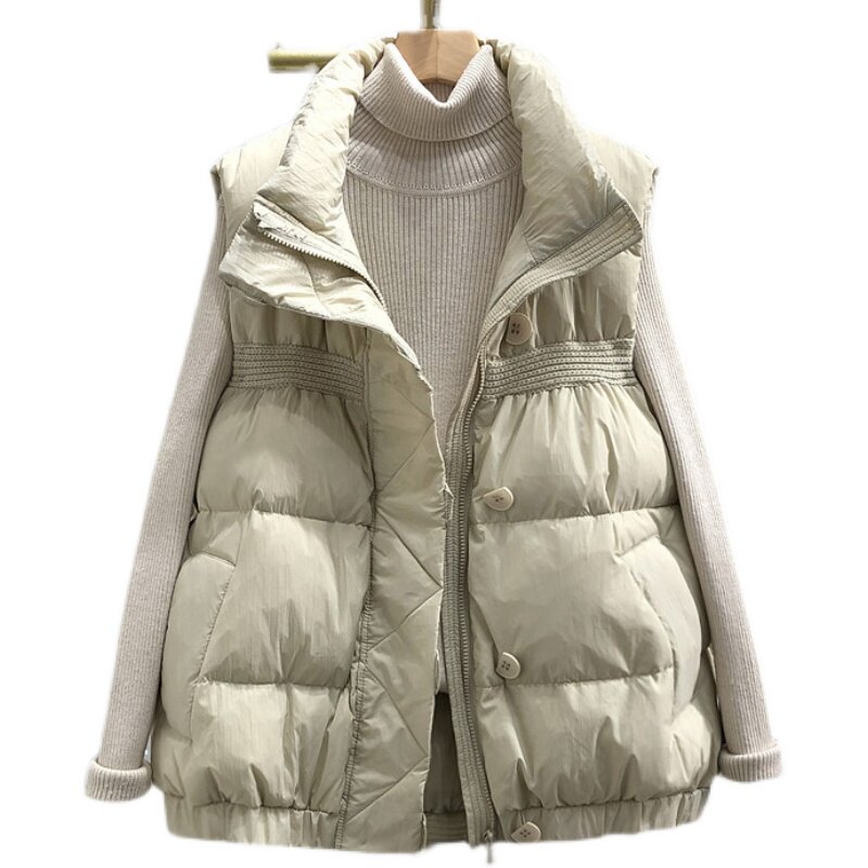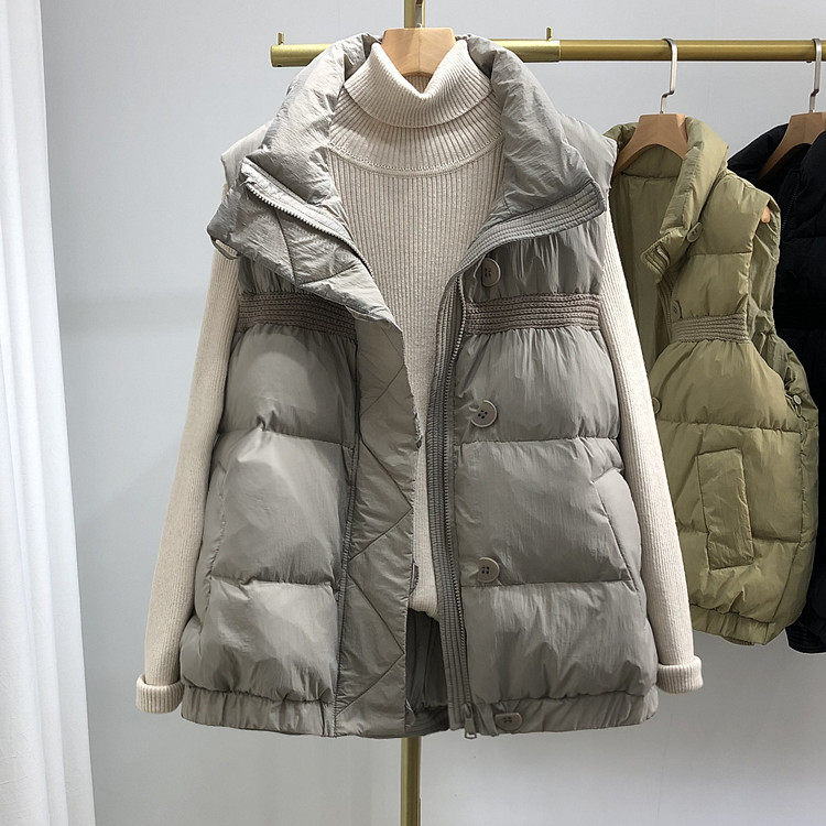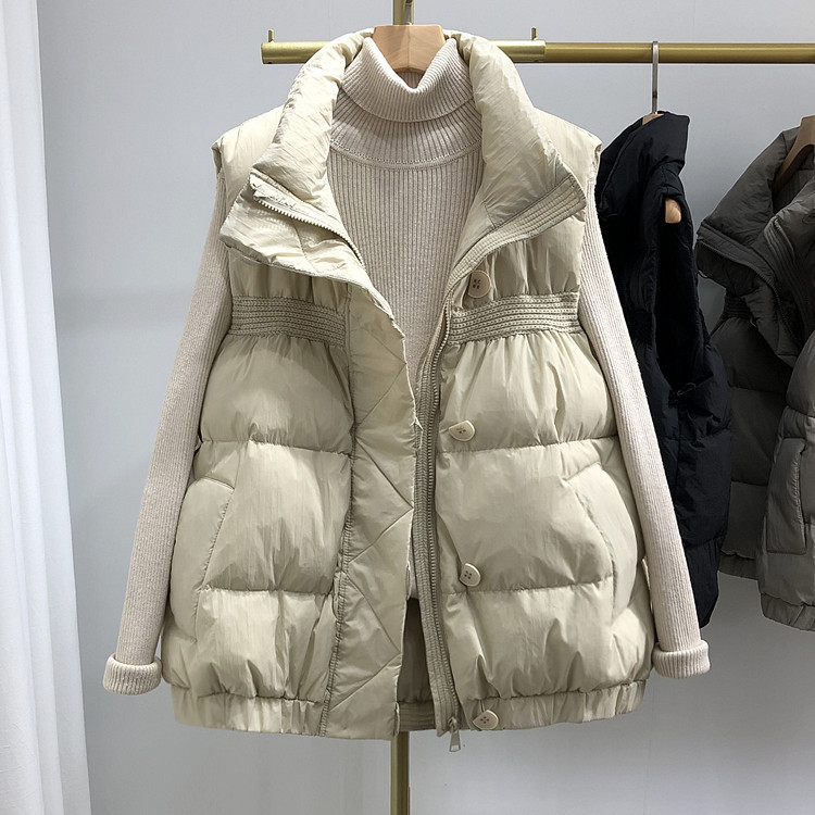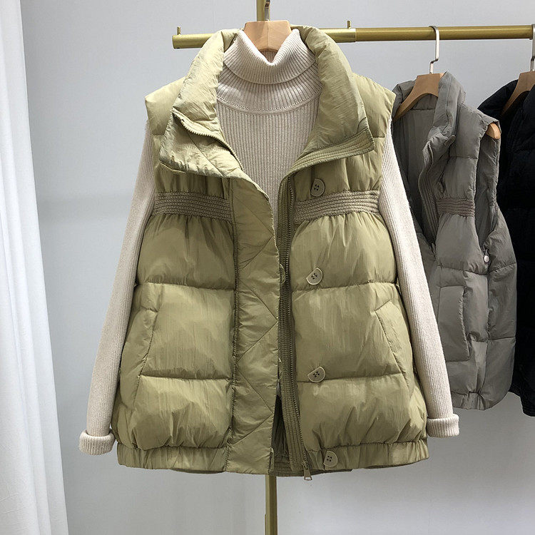 Пуховик, короткий жилет, легкая и тонкая майка топ, утиный пух, коллекция 2023, в корейском стиле, в западном стиле
