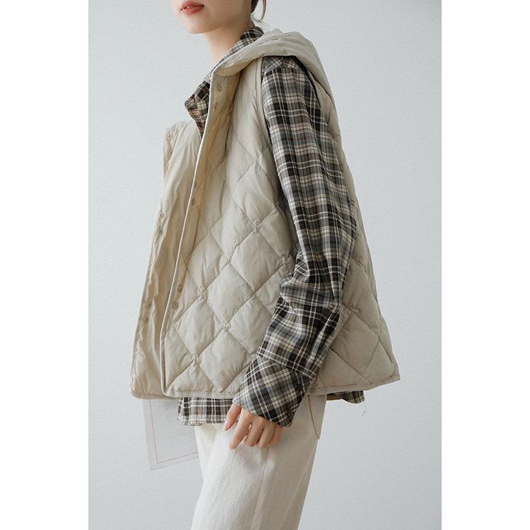 Бархатный жилет с ромбовидным узором с капюшоном без рукавов, пуховик, утиный пух