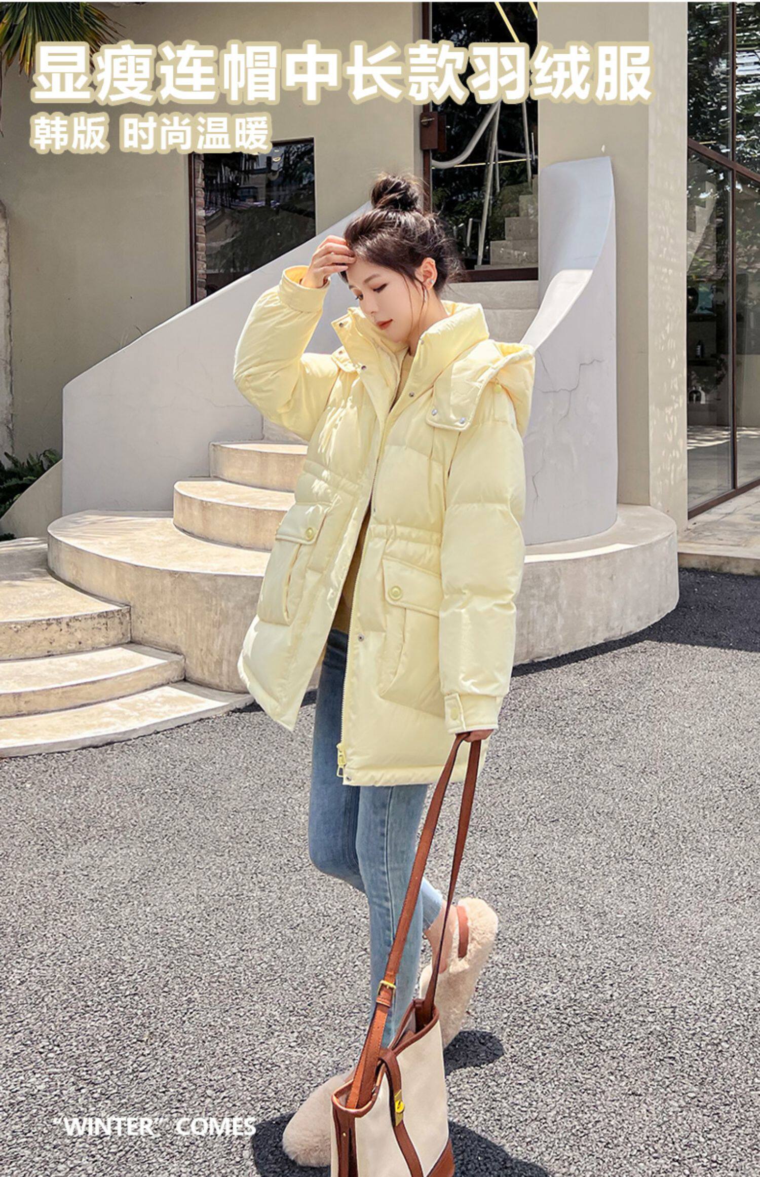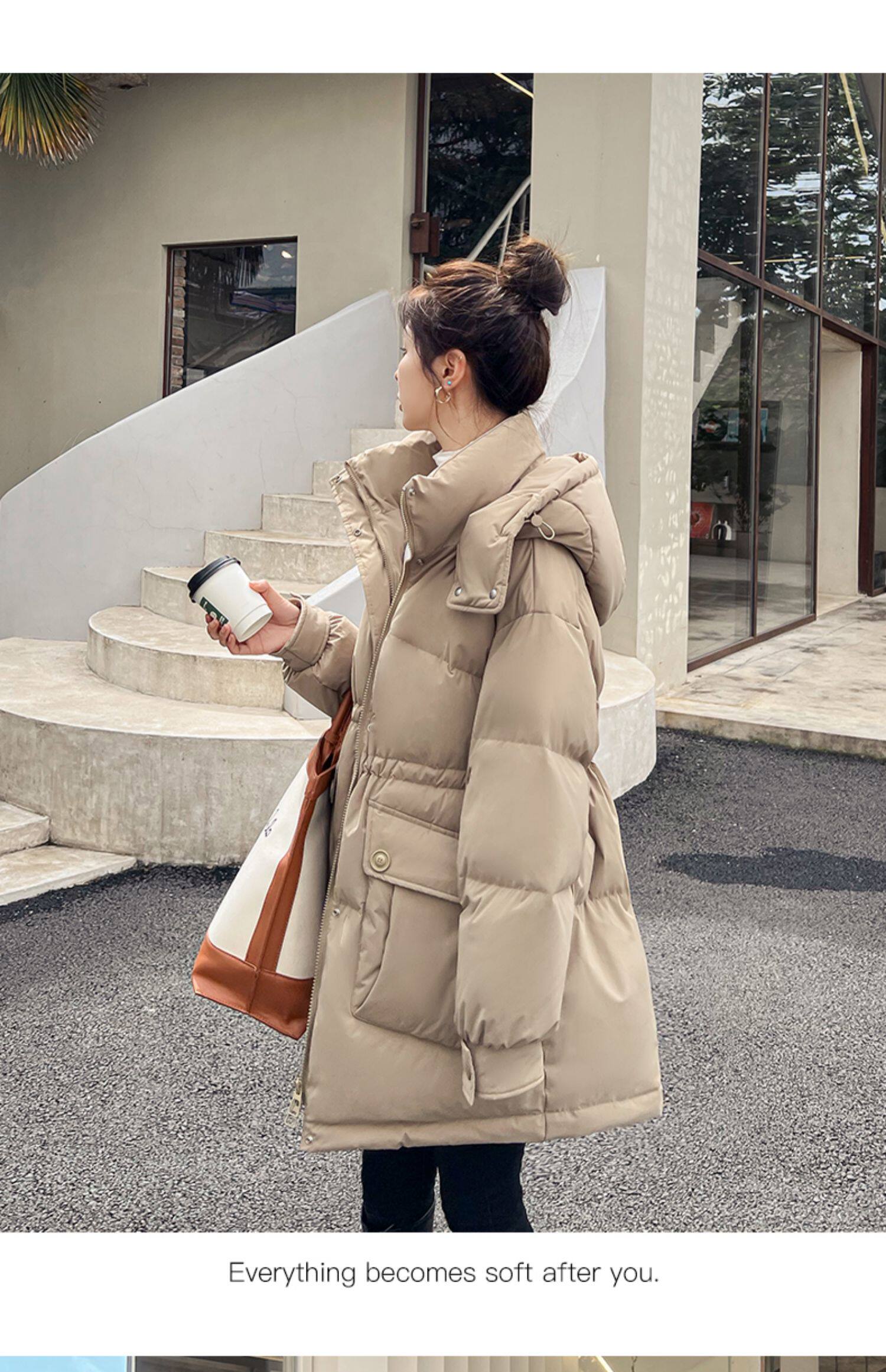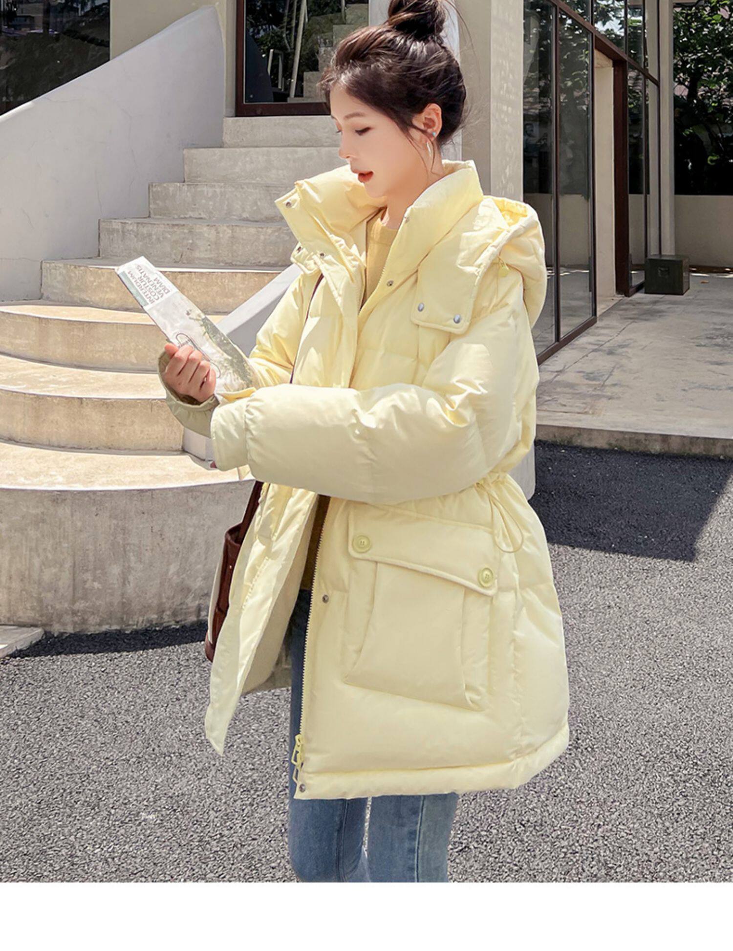 Модный длинный зимний пуховик, модная куртка, утиный пух, средней длины