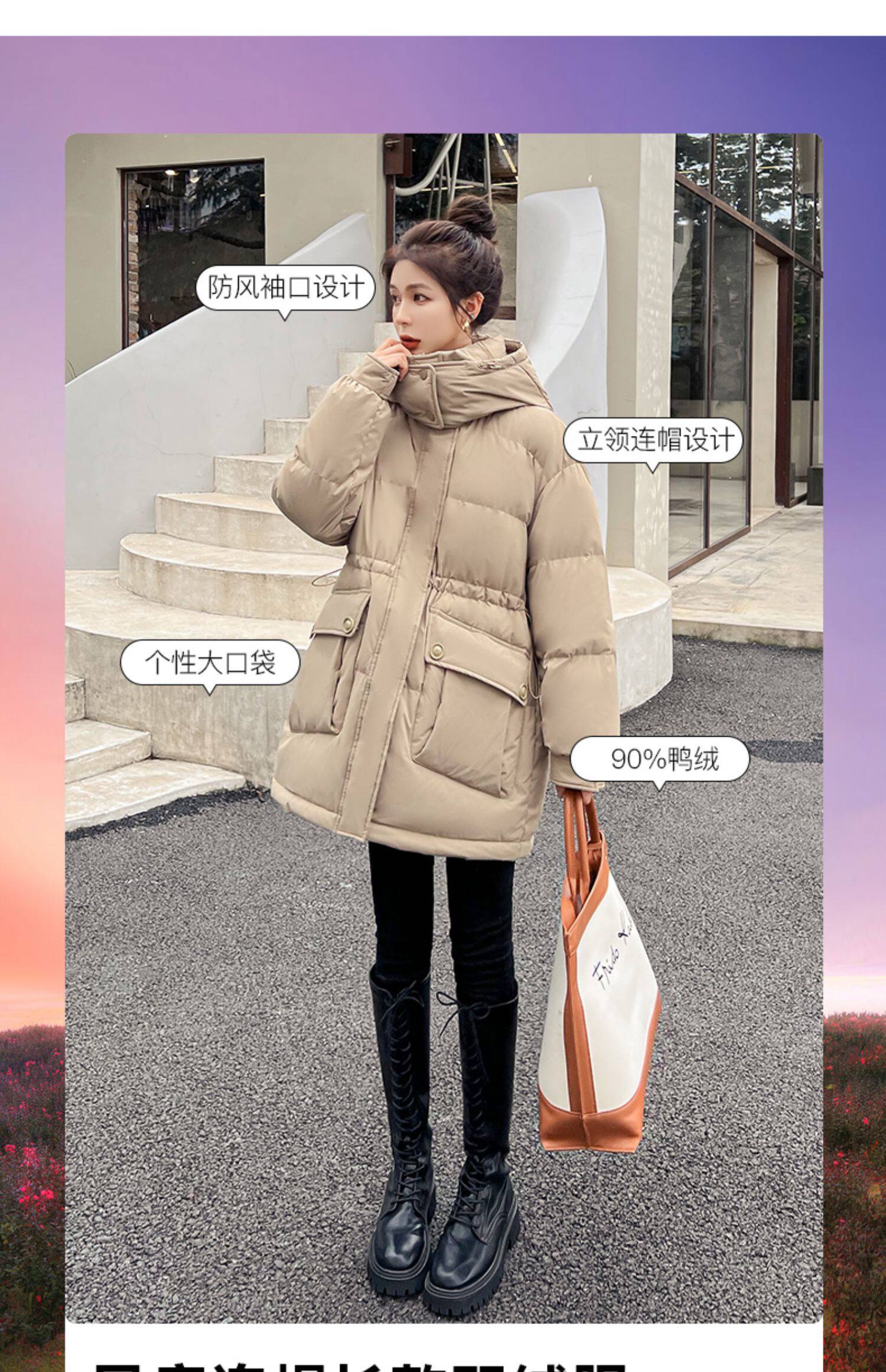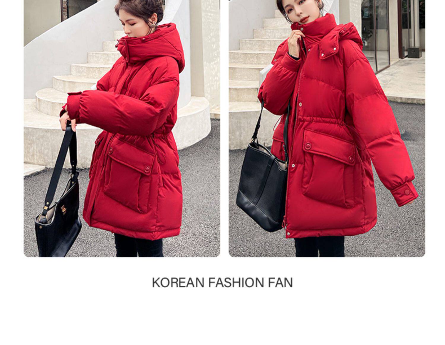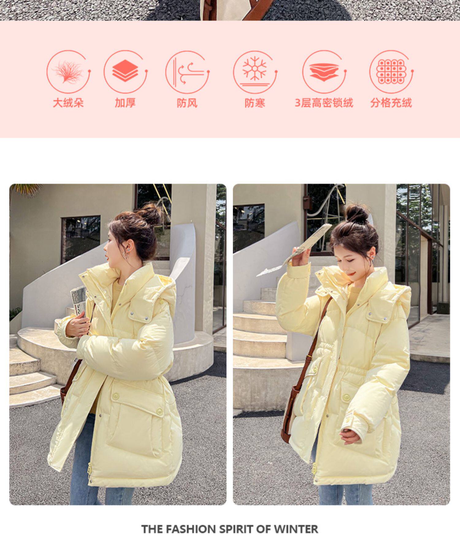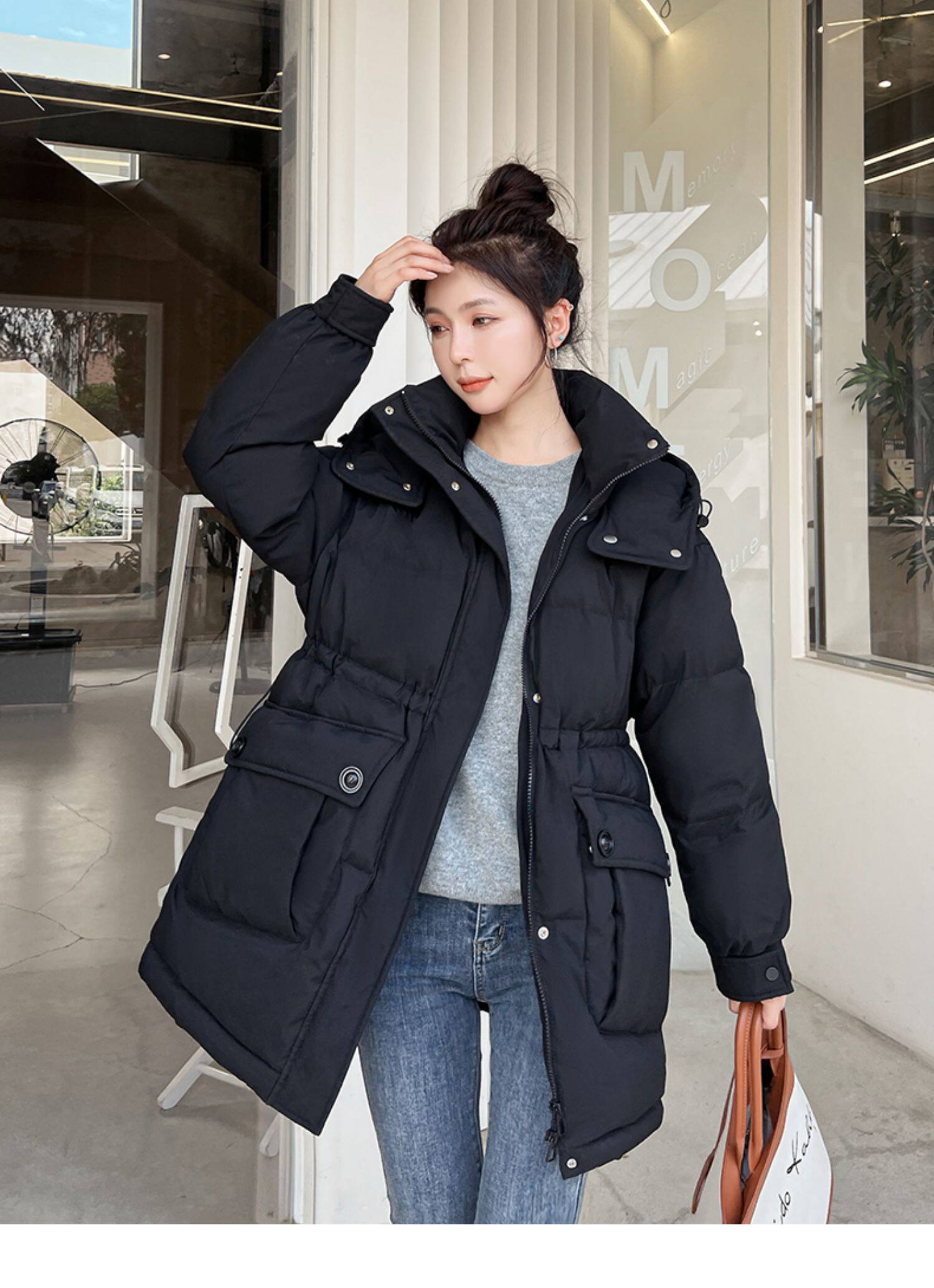 Модный длинный зимний пуховик, модная куртка, утиный пух, средней длины