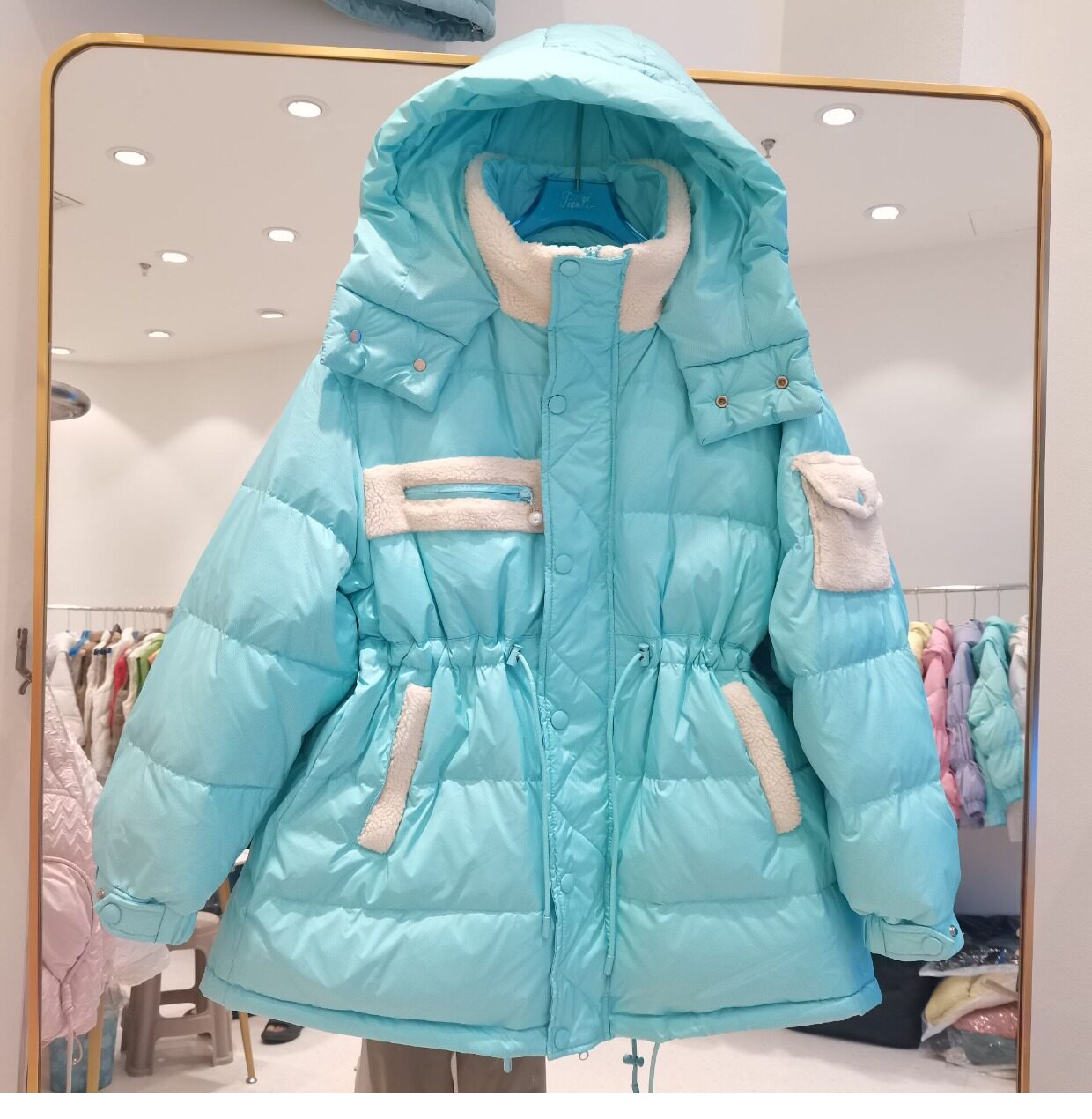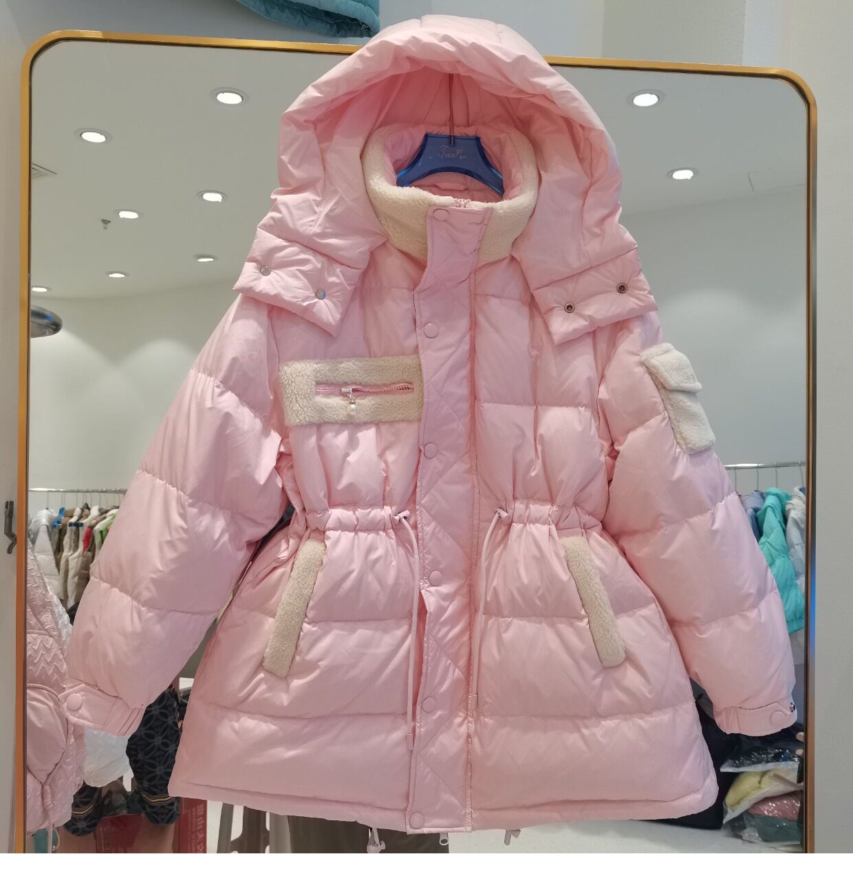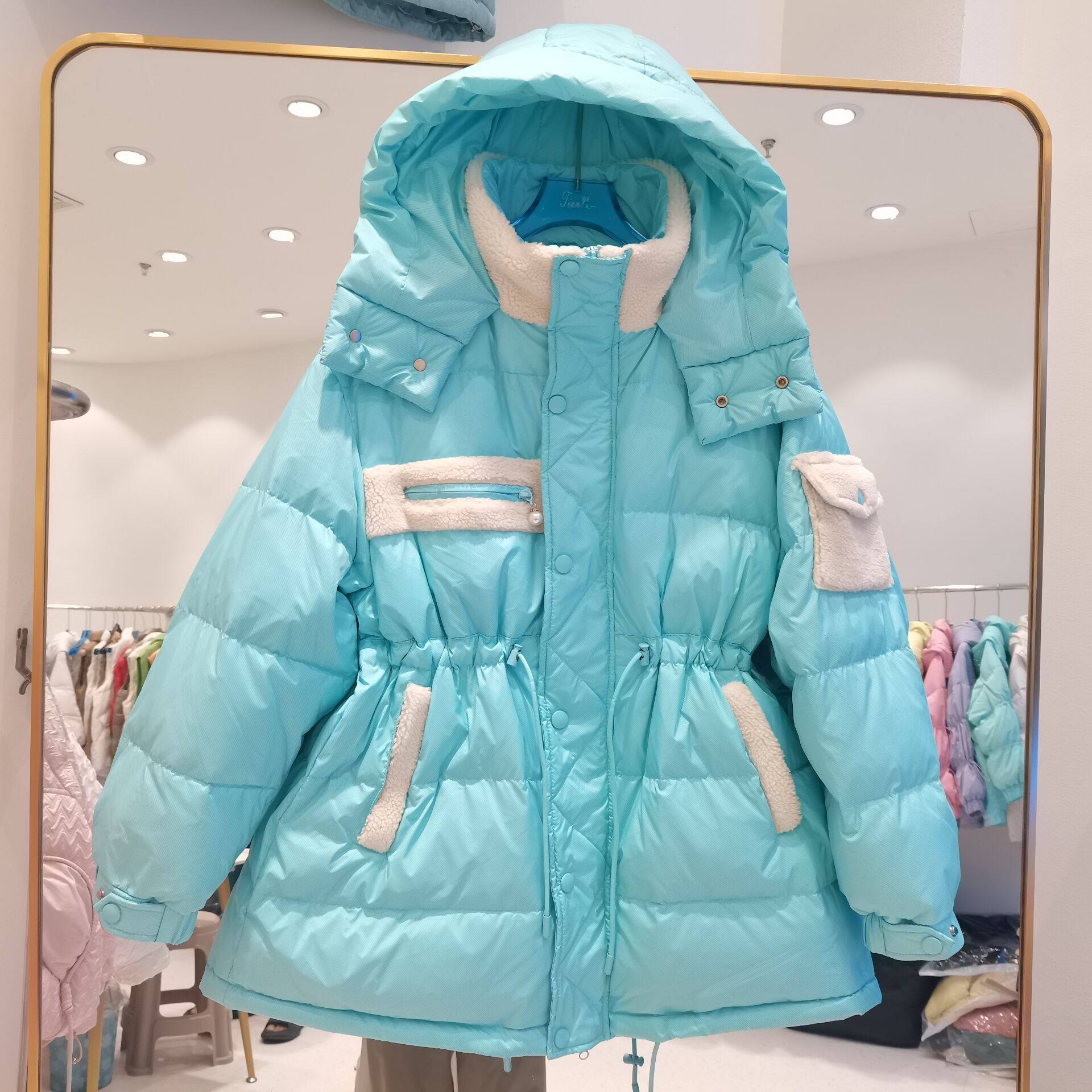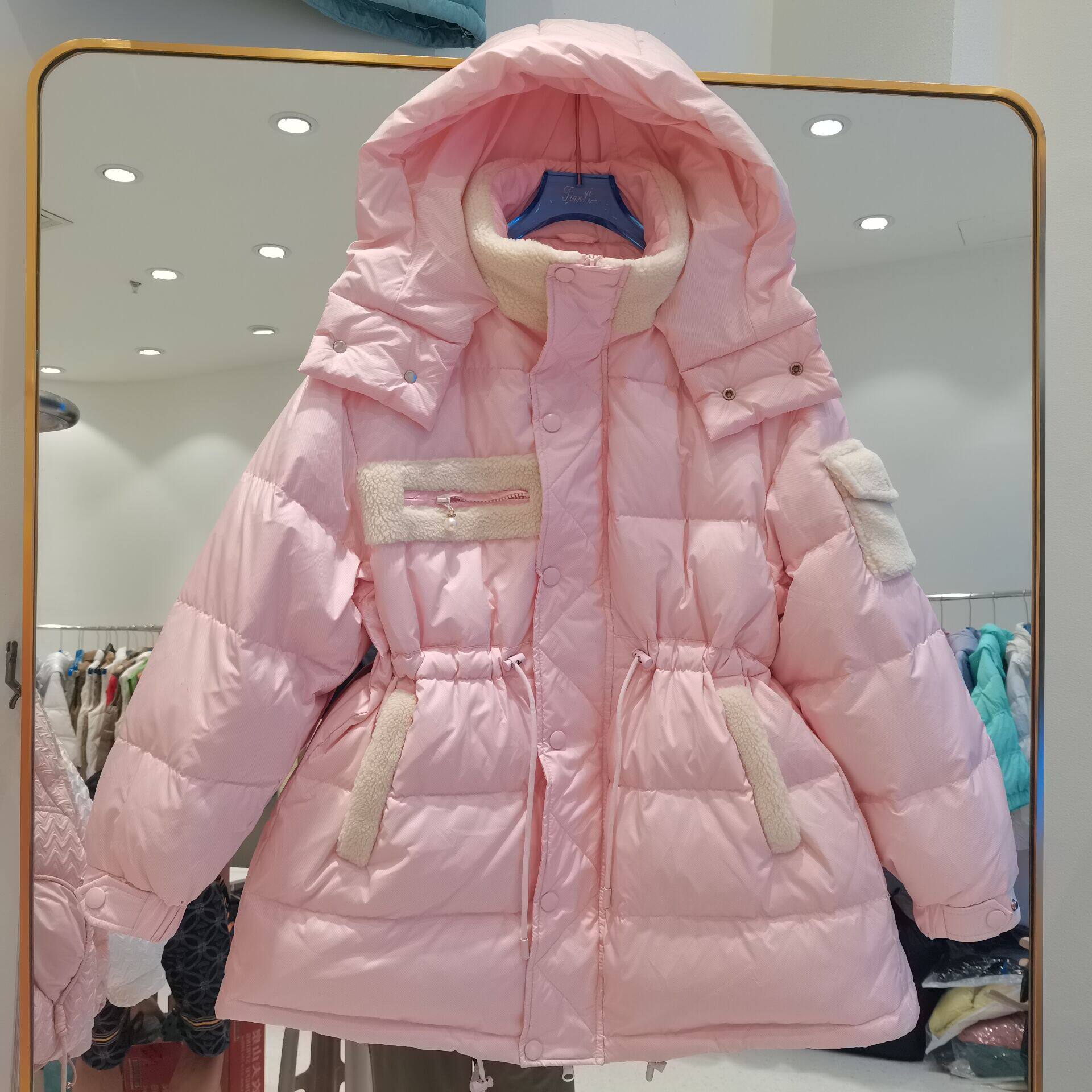 Пуховик, толстовка с капюшоном, корсет, бархатная куртка, коллекция 2022, средней длины, утиный пух
