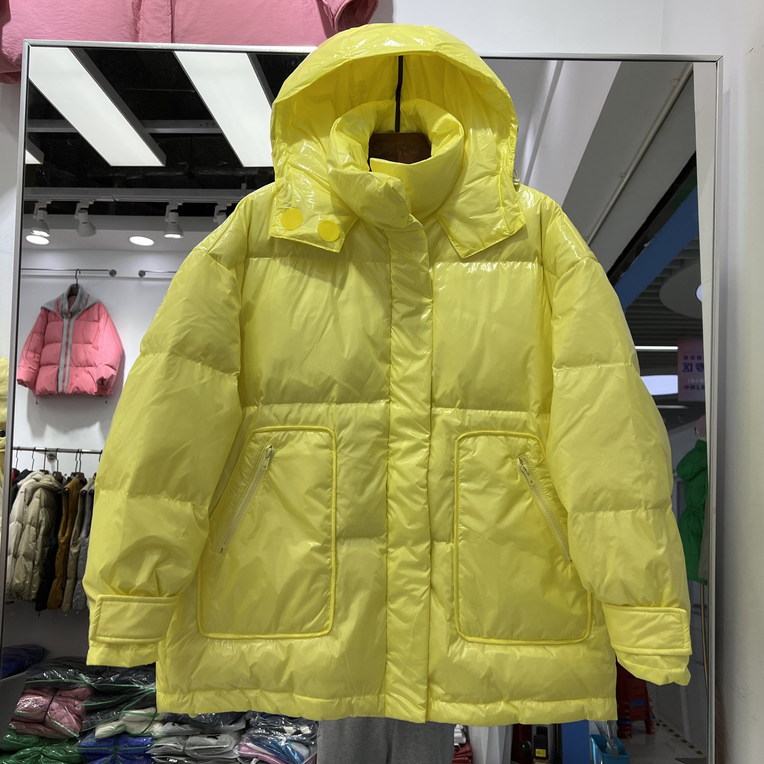 Глянцевый пуховик, толстовка с капюшоном, бархатная куртка, 2022 года, в корейском стиле, оверсайз, утиный пух