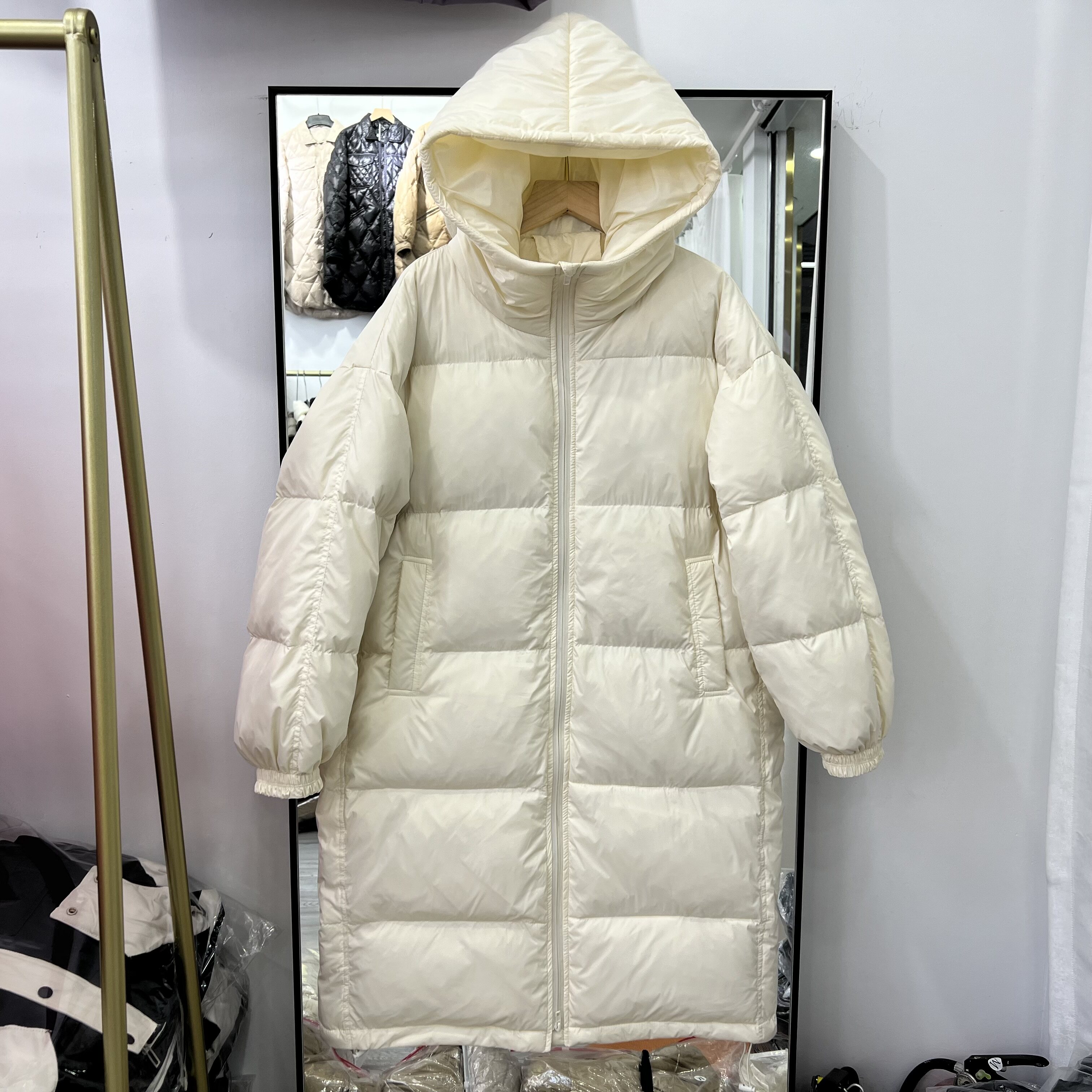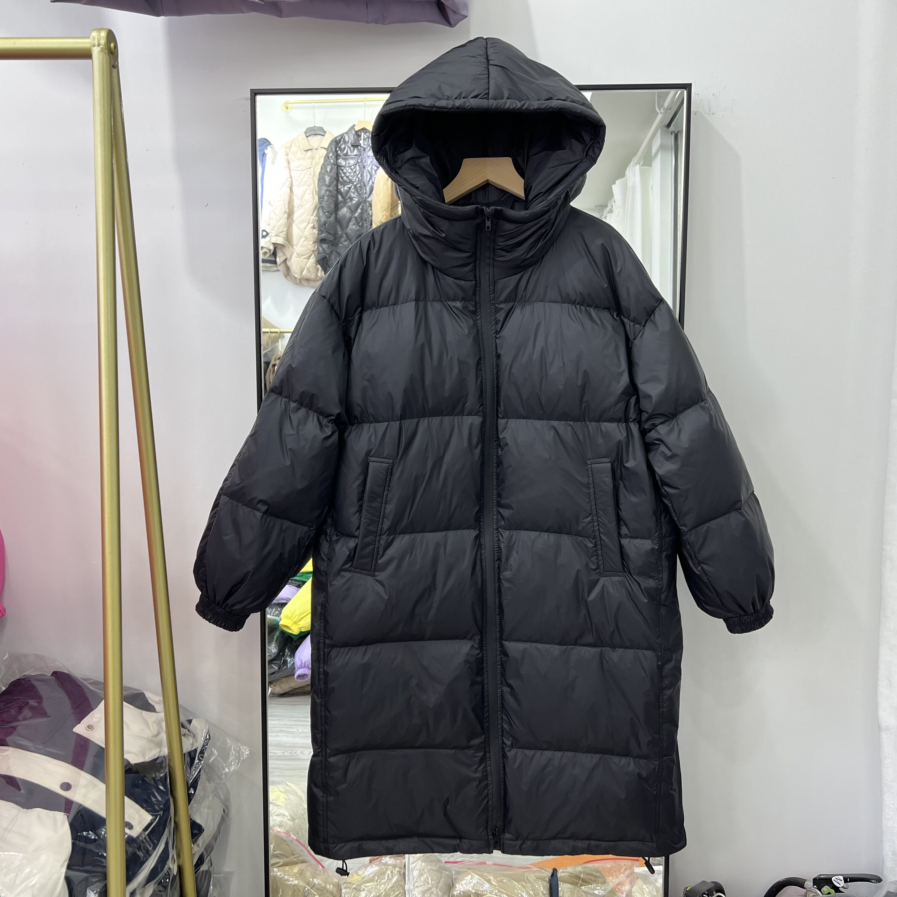 Пуховик, бархатная длинная толстовка с капюшоном, коллекция 2022, утиный пух, средней длины