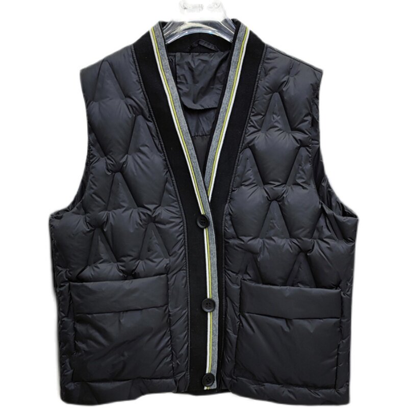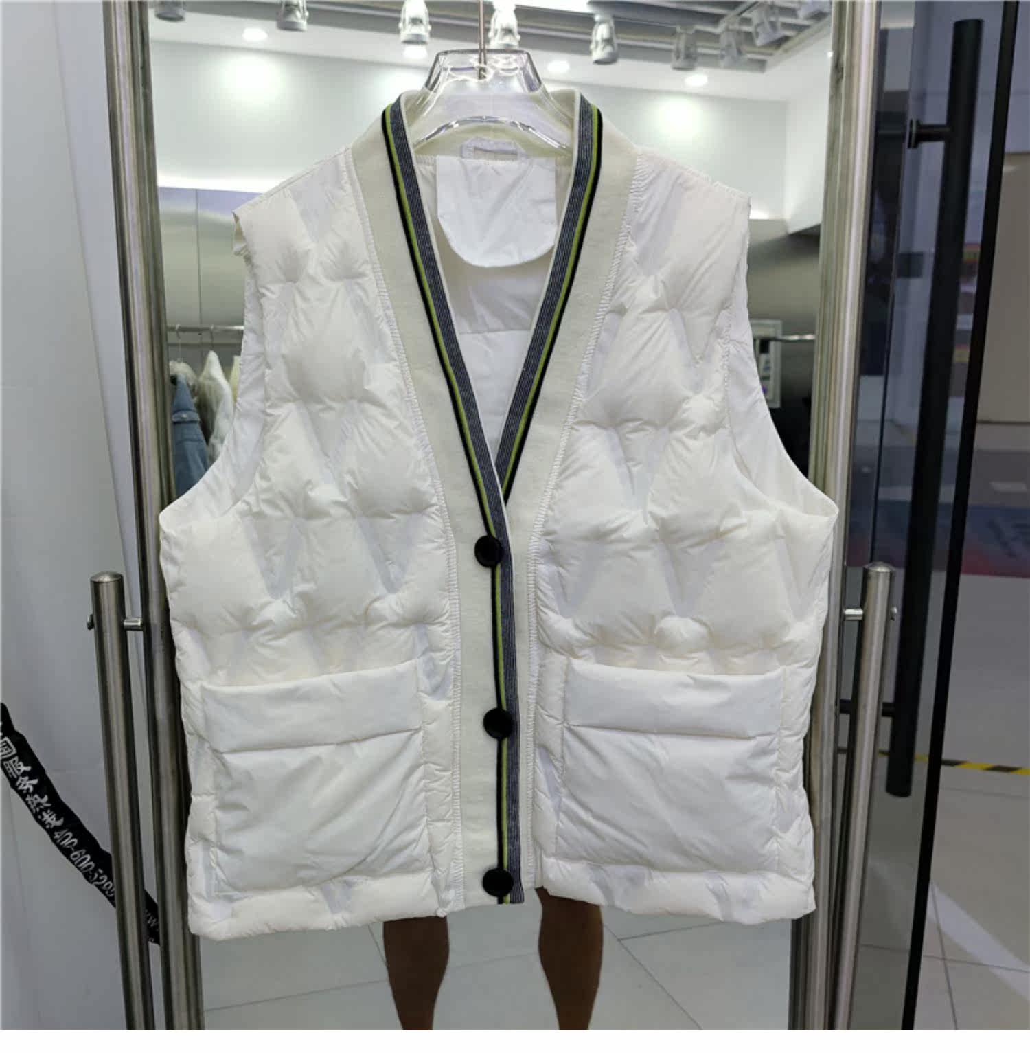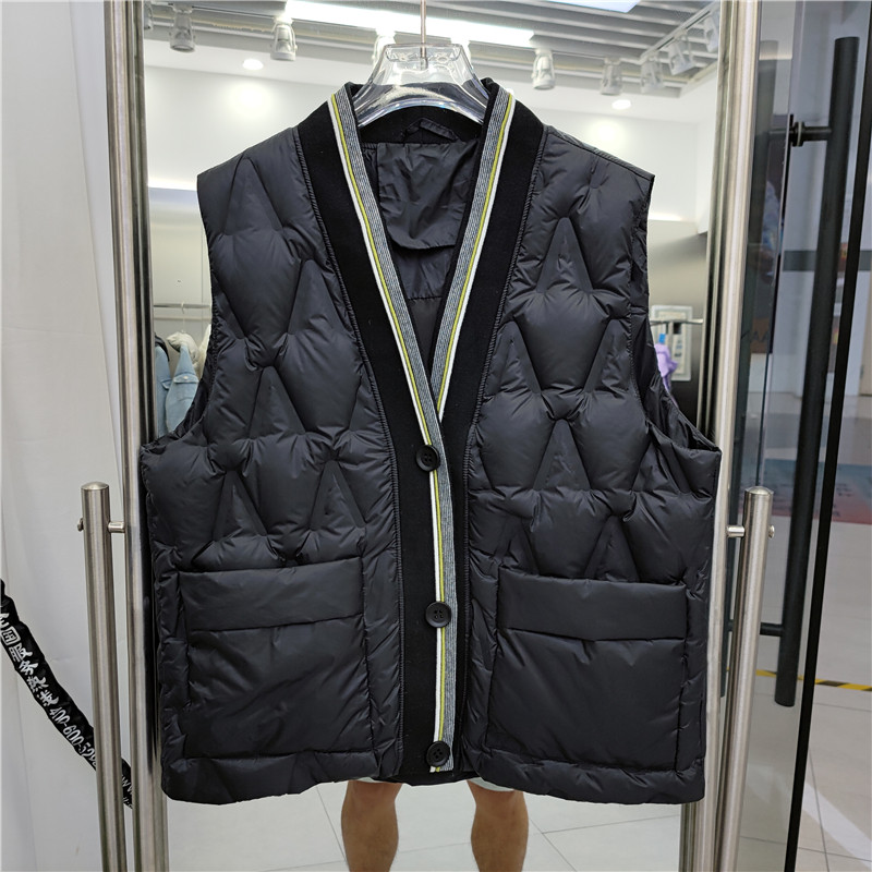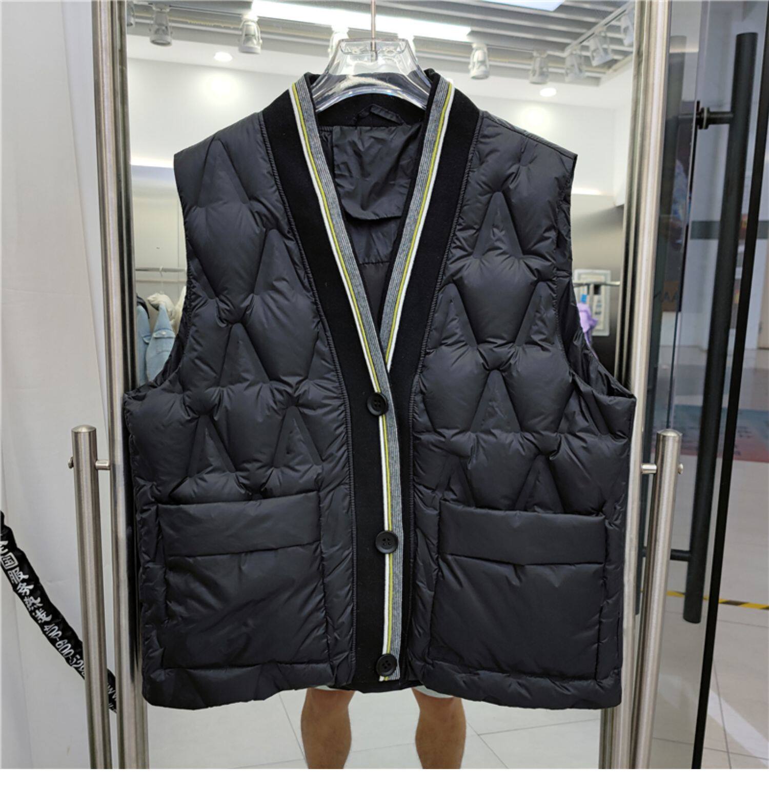 Товар, пуховик, короткий демисезонный жилет, бархатное пальто, в корейском стиле, свободный крой, V-образный вырез, утиный пух