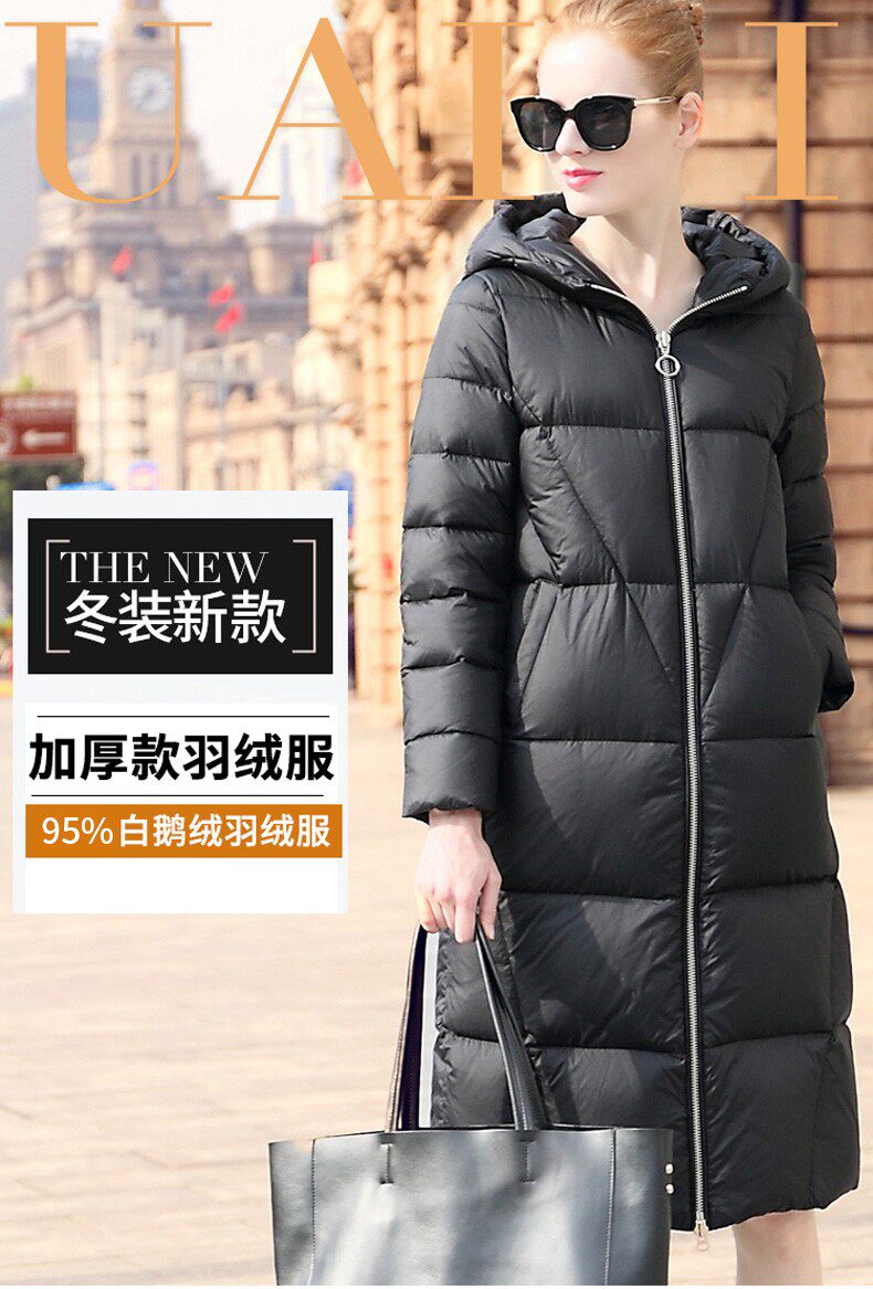 Пуховик, сверхдлинная длинная толстовка с капюшоном с пухом, зимняя бархатная куртка, увеличенная толщина, гусиный пух