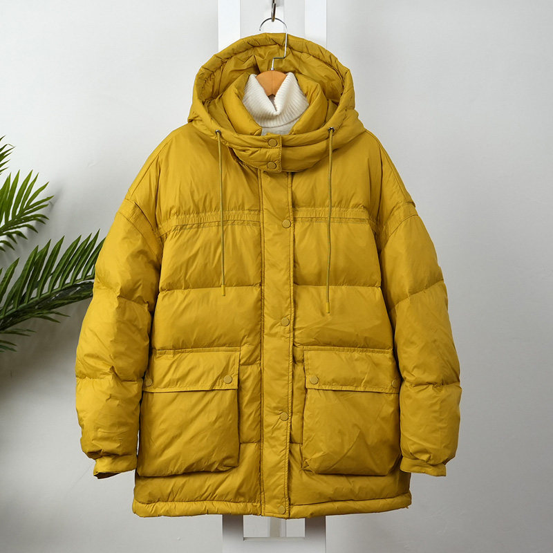 Пуховик для отдыха, утепленная бархатная куртка, средней длины, коллекция 2022, в корейском стиле, на шнурках, утиный пух