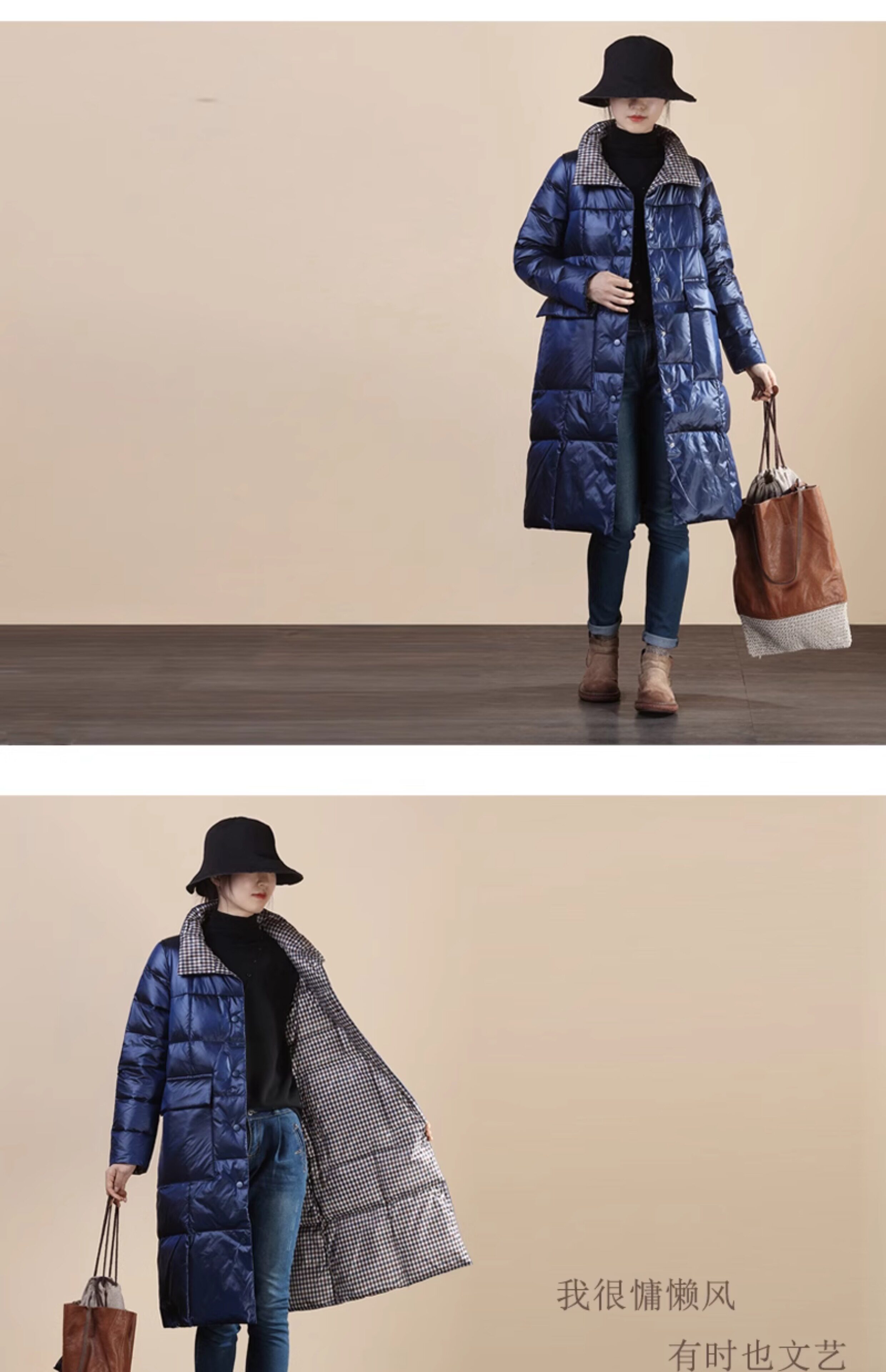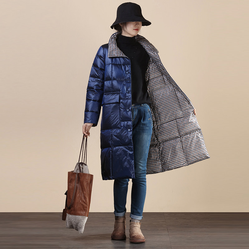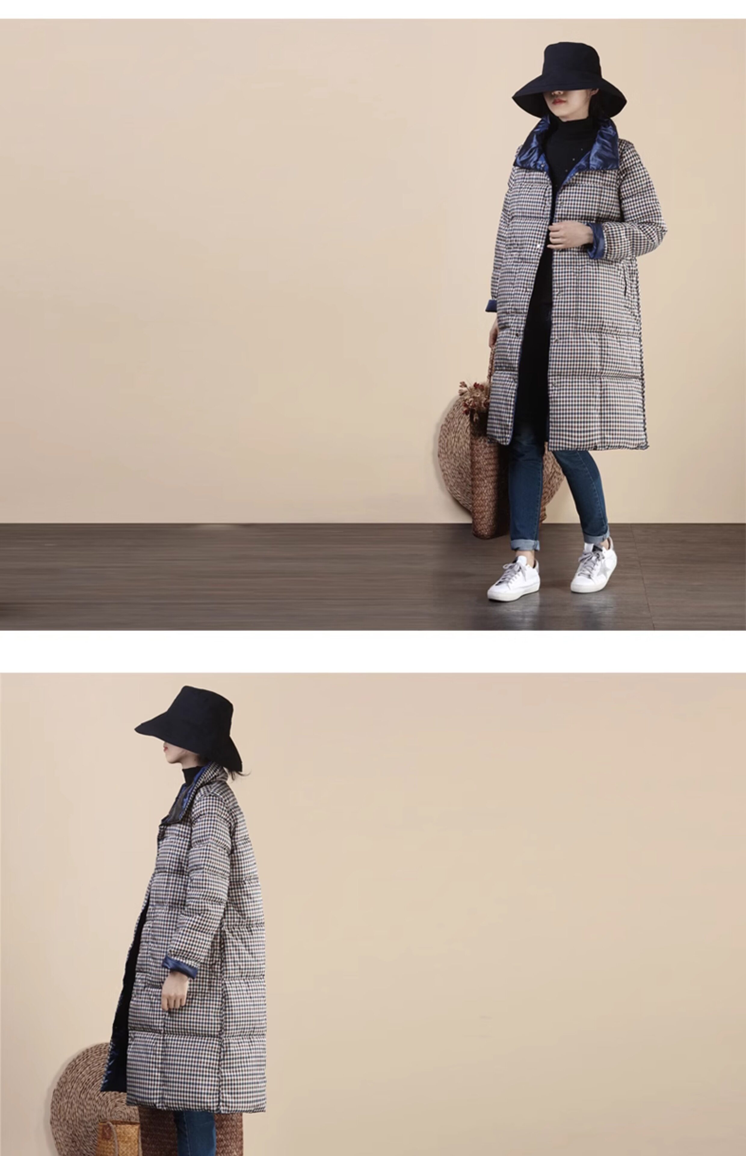 Два наряда в одном предмете одежды~ Передняя и задняя стороны воспринимают вас по-разному. Клетчатый пуховик средней длины с воротником-стойкой имеет дополнительные преимущества в своем стиле.