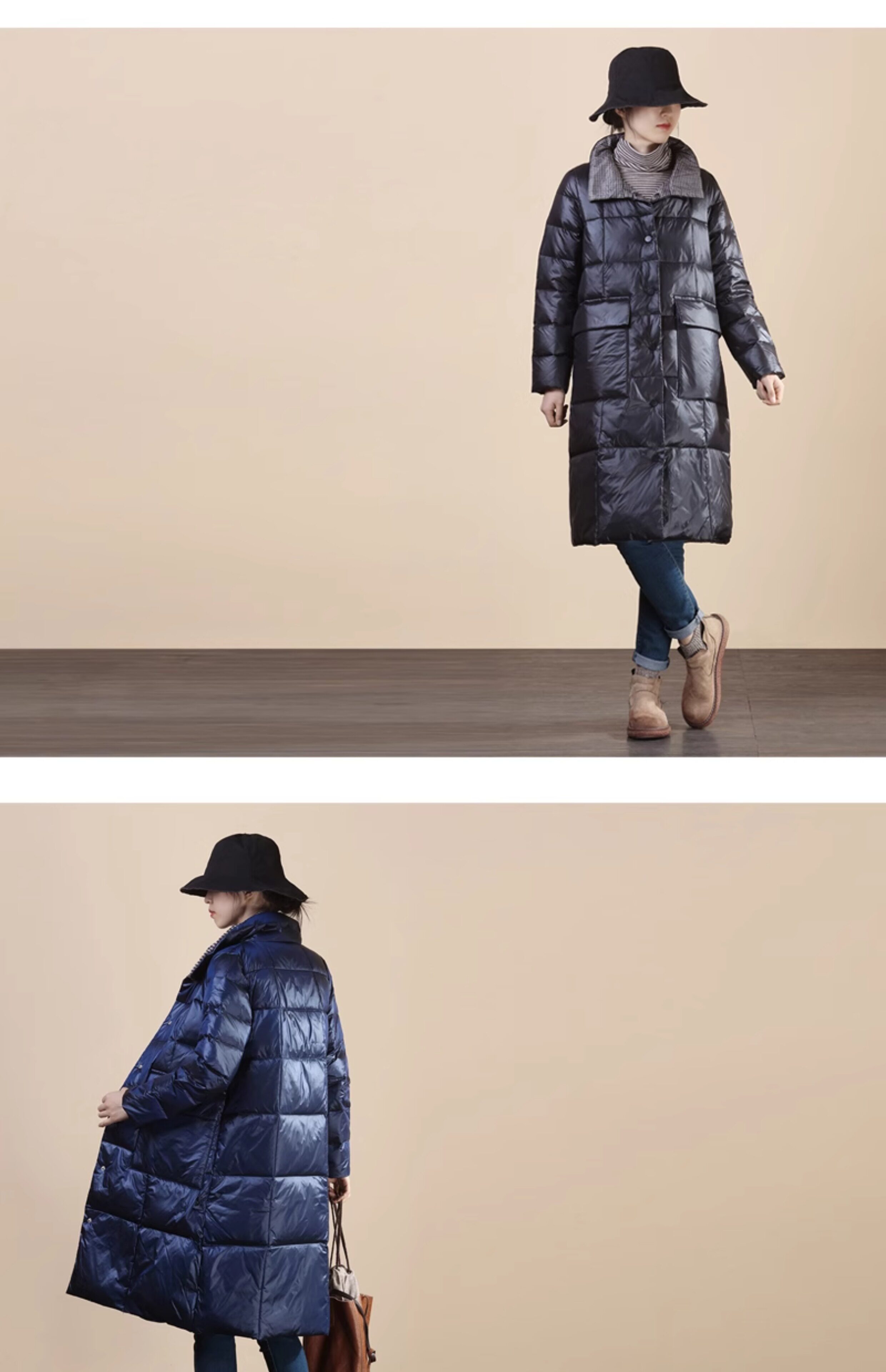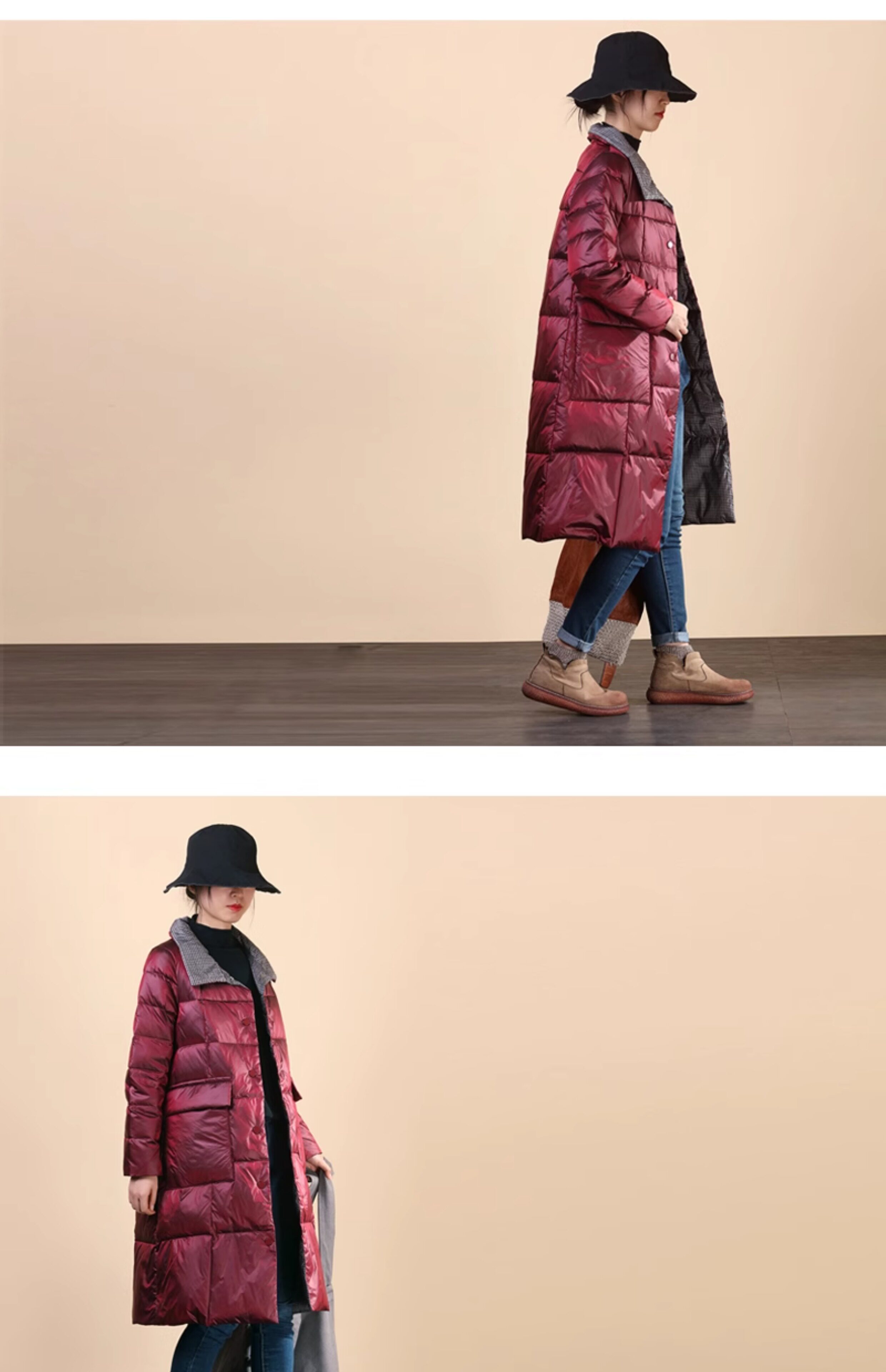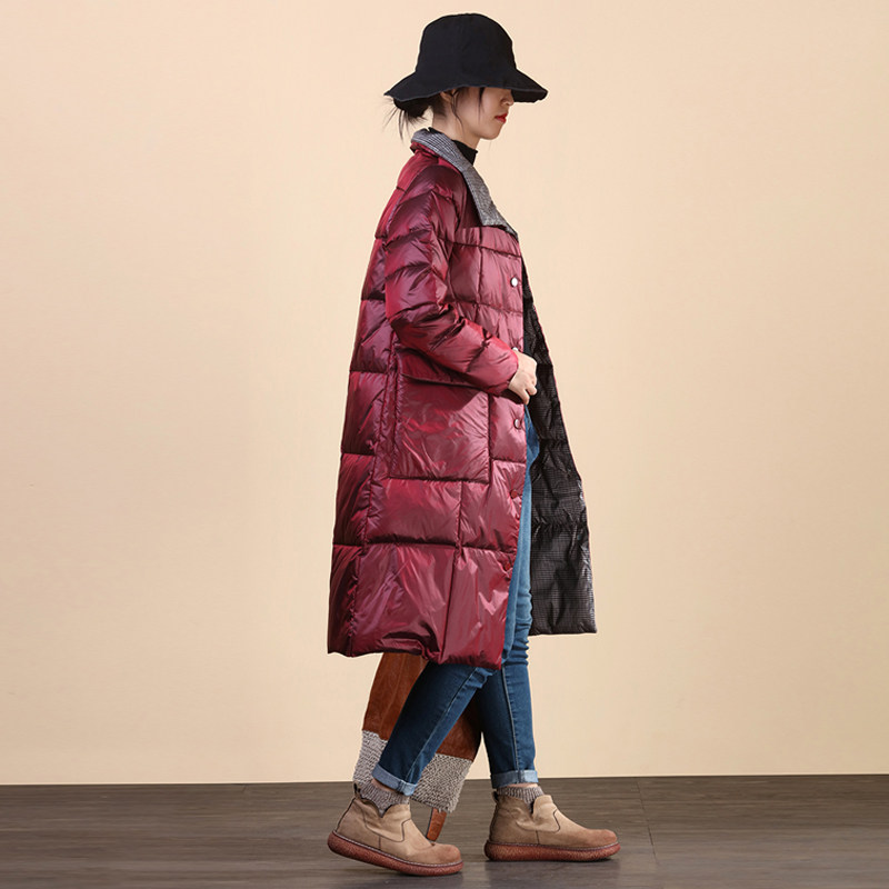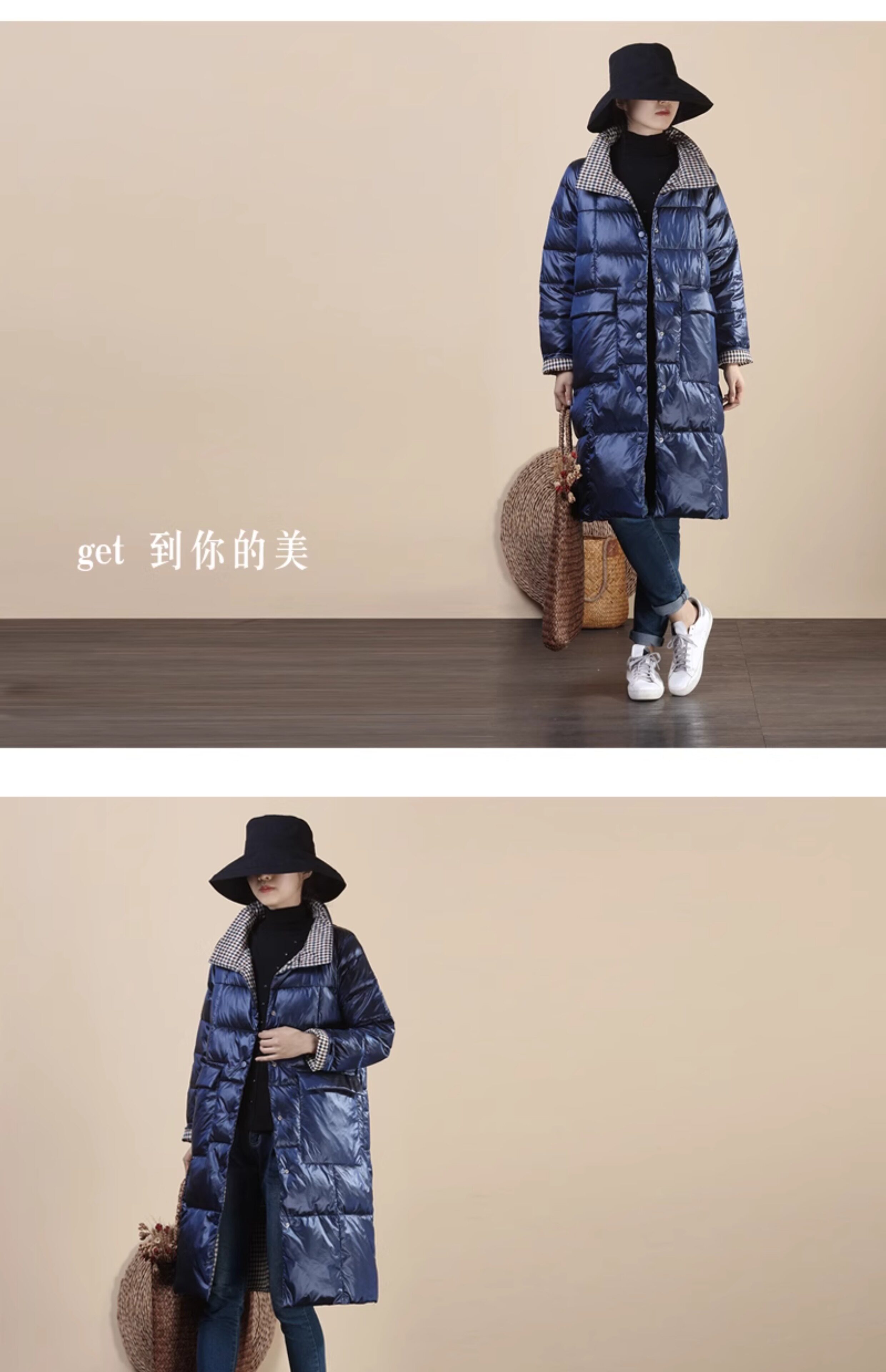 Два наряда в одном предмете одежды~ Передняя и задняя стороны воспринимают вас по-разному. Клетчатый пуховик средней длины с воротником-стойкой имеет дополнительные преимущества в своем стиле.