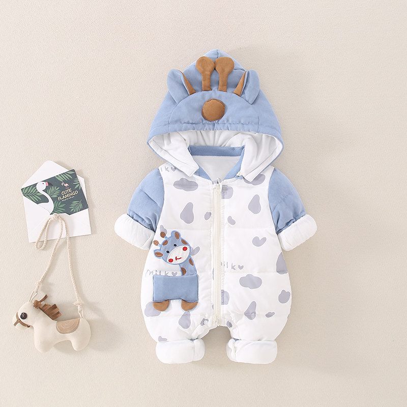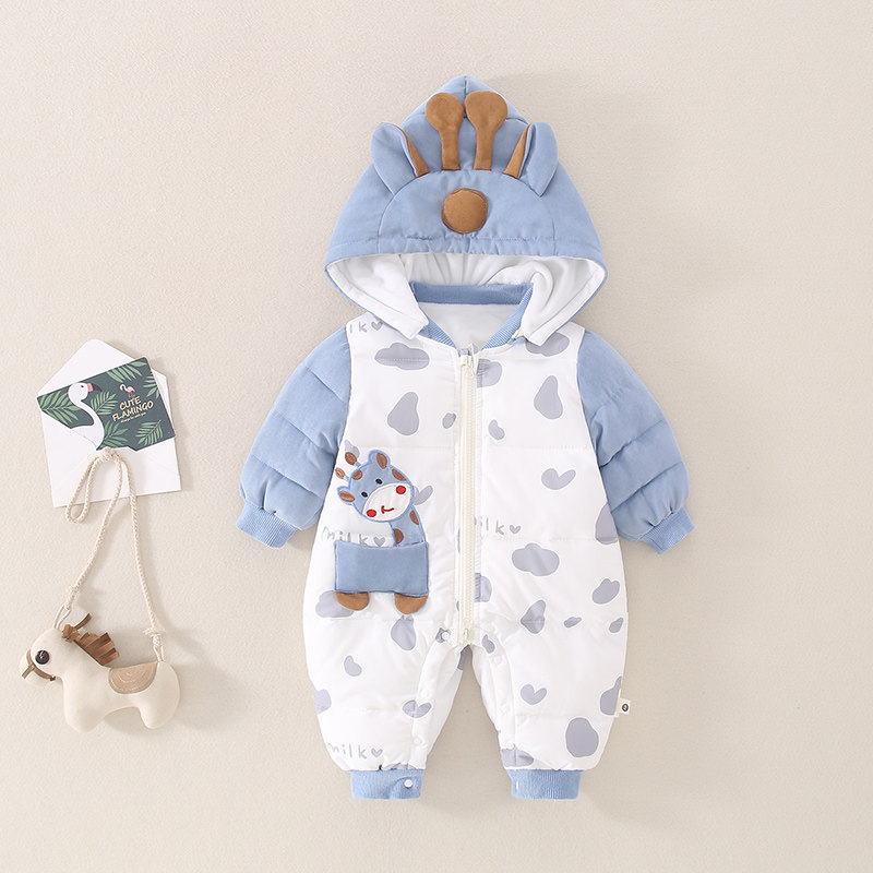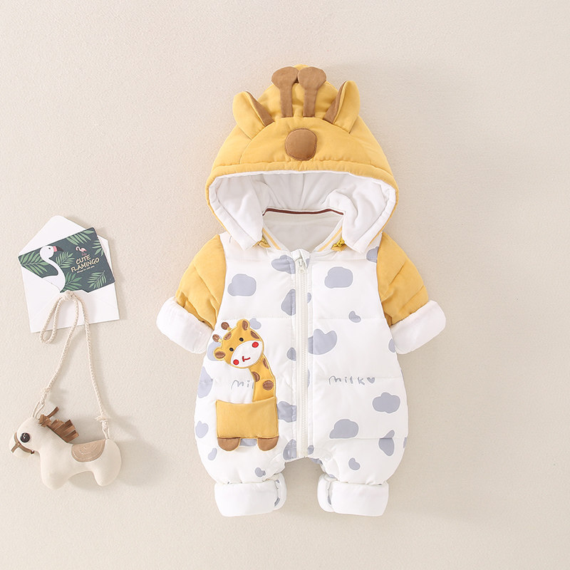 Детский пуховик, зимний милый комплект, бархатное боди для новорожденных для выхода на улицу, утиный пух