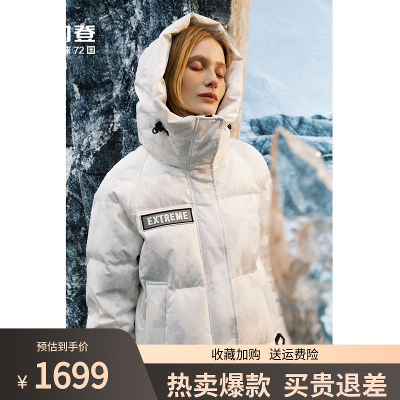 Длинный пуховик, камуфляжная модная куртка с капюшоном, средней длины, гусиный пух