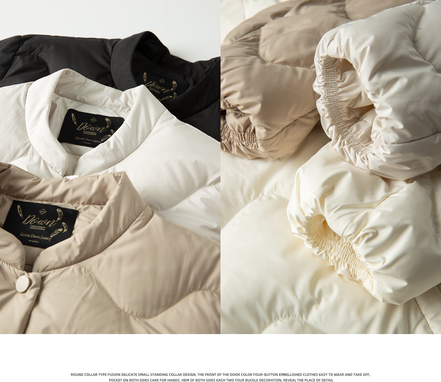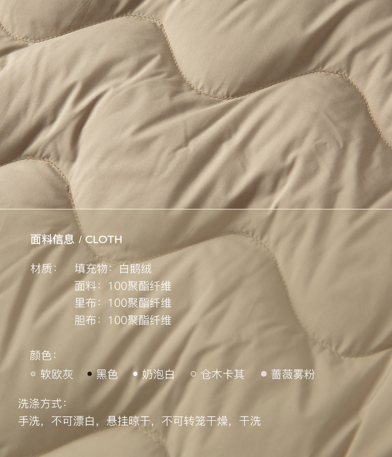 | Выбирать90 белый флиллический заливТрехмерное ощущение бархата похоже на одуванчики Гус -Down Теплый индекс очень хороший.Легкая верхняя часть тела без веса В то же времяПушистая и устойчивостьПодождите преимущества Громкость начинки высокой плотности делает весь кусок одежды полным и стильным, блокируя тепло, легкость и комфорт |