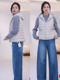 Длинный жилет, удерживающий тепло демисезонный пуховик с капюшоном, утиный пух, средней длины