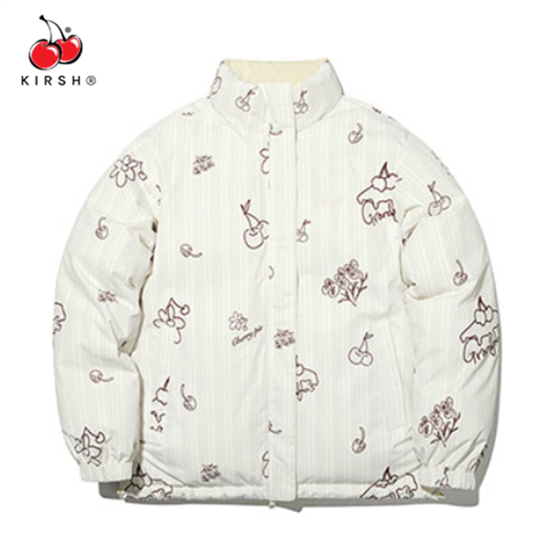 22 зимний кирш корейский дизайнерский дизайнерский бренд академия стиль вишневые принты с обеих сторон в теплой утиной куртке