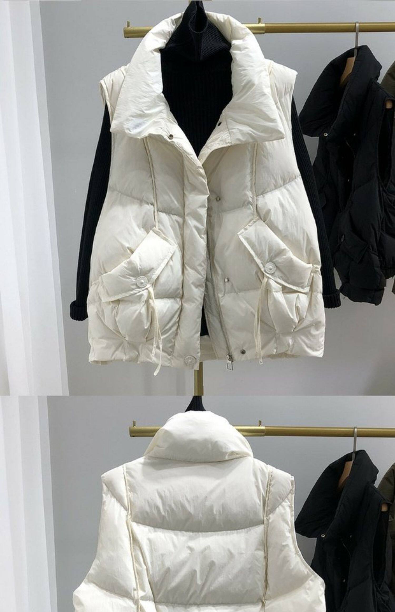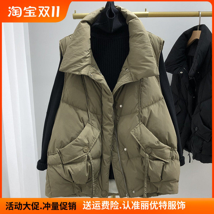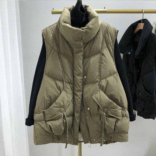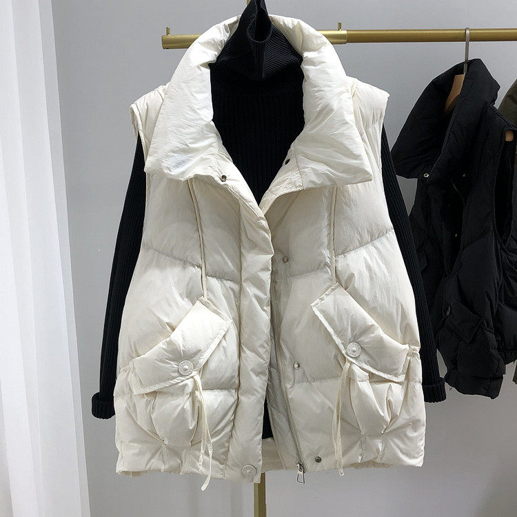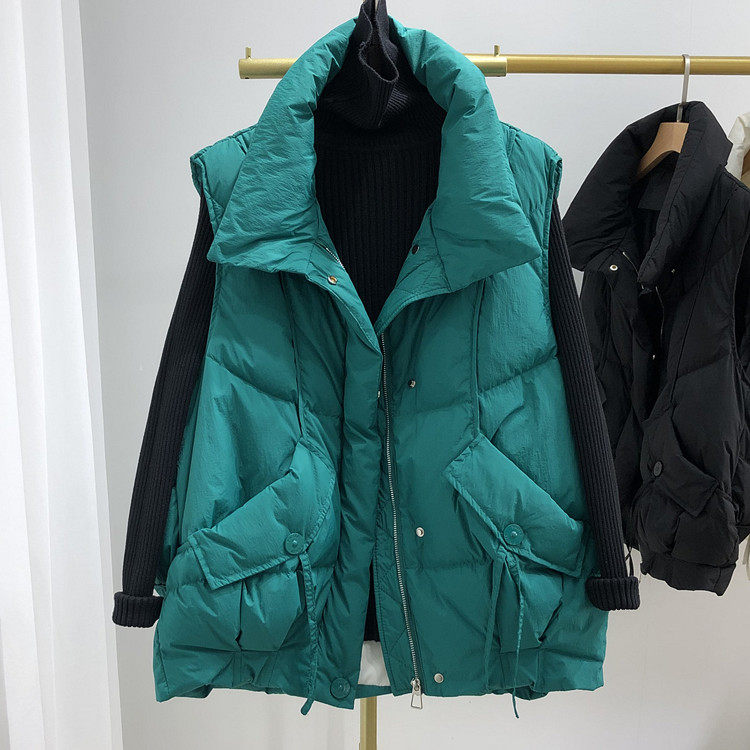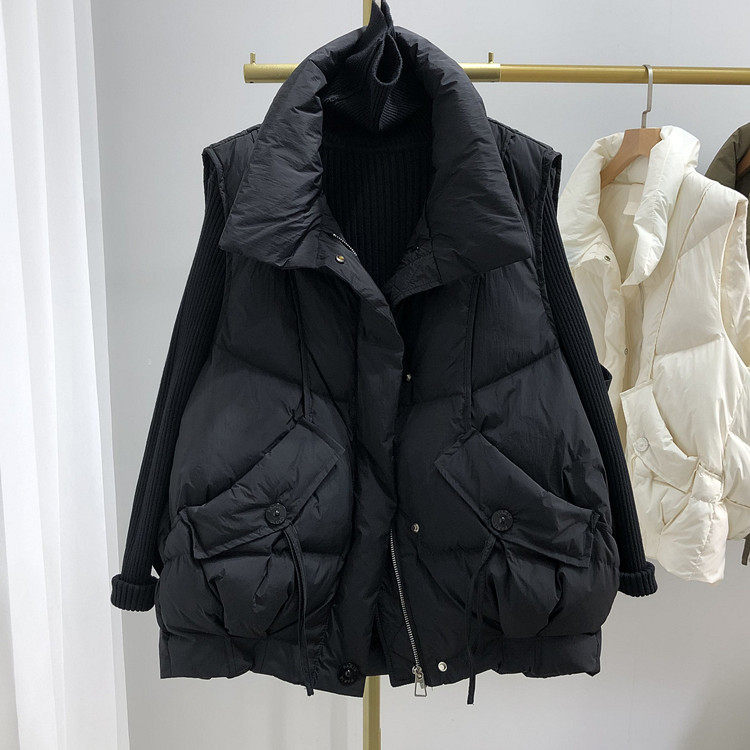 Пуховик, бархатный демисезонный жилет, оверсайз, увеличенная толщина, утиный пух, в корейском стиле, в западном стиле