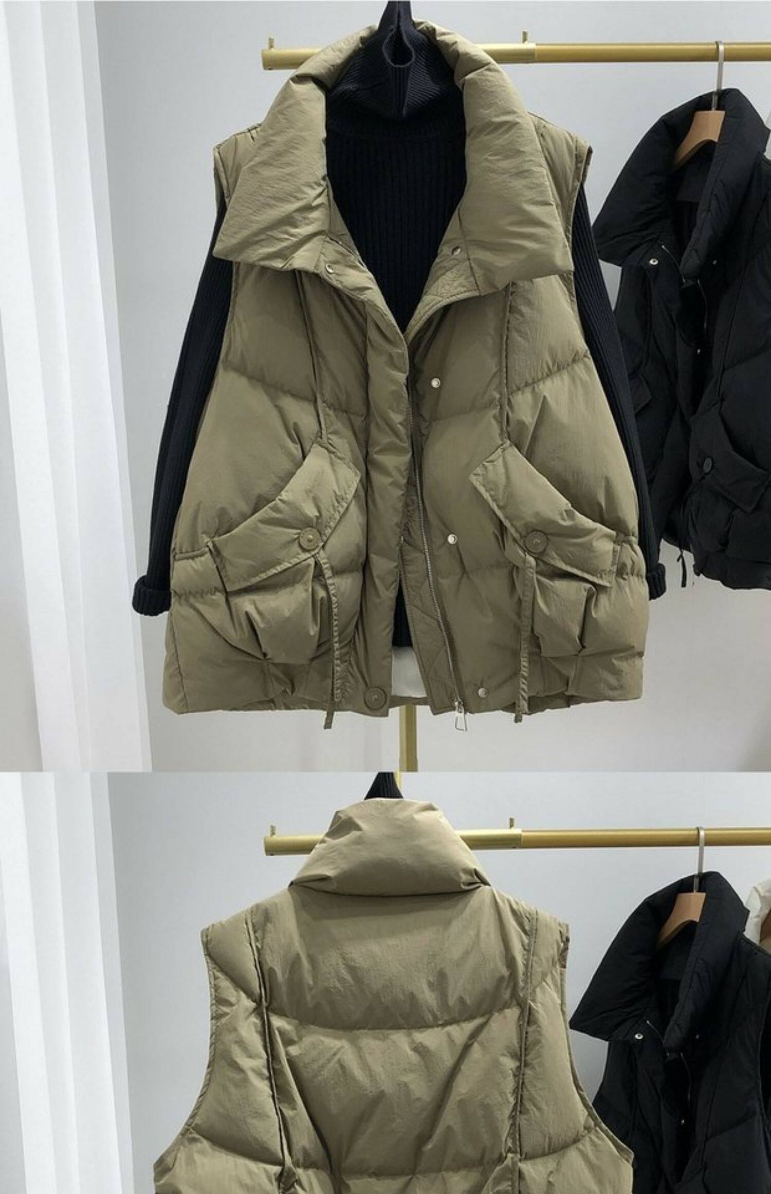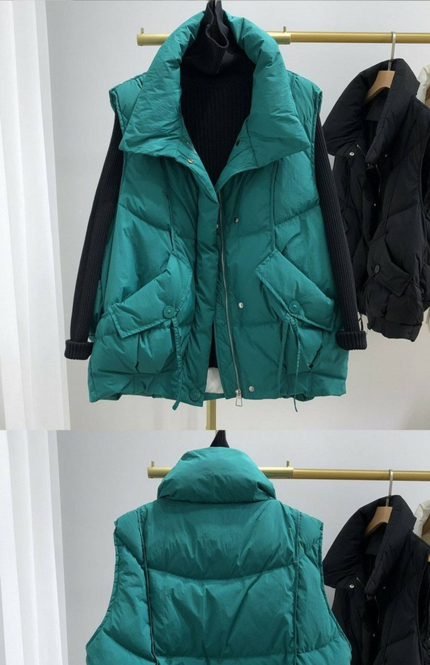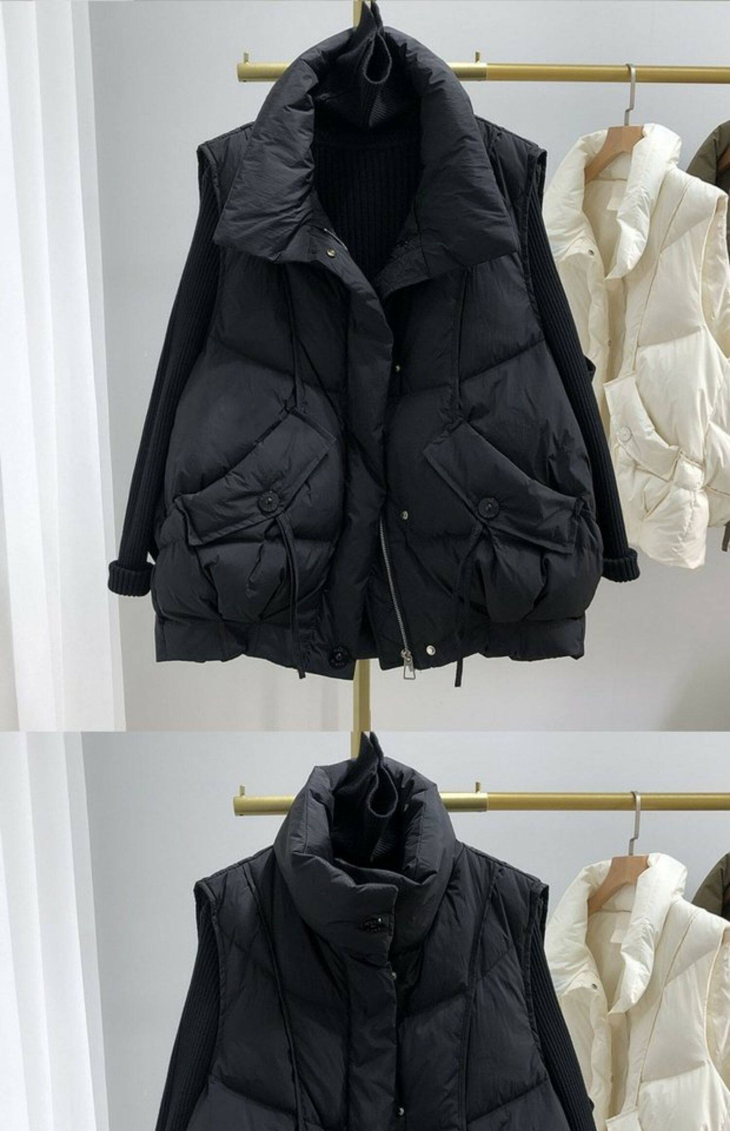 Пуховик, бархатный демисезонный жилет, оверсайз, увеличенная толщина, утиный пух, в корейском стиле, в западном стиле