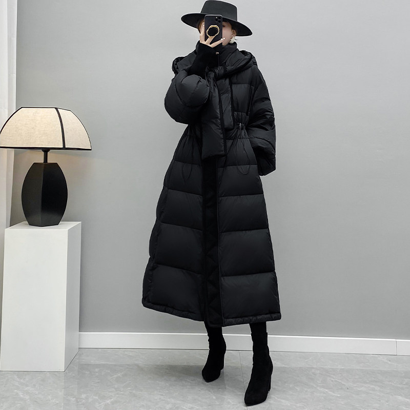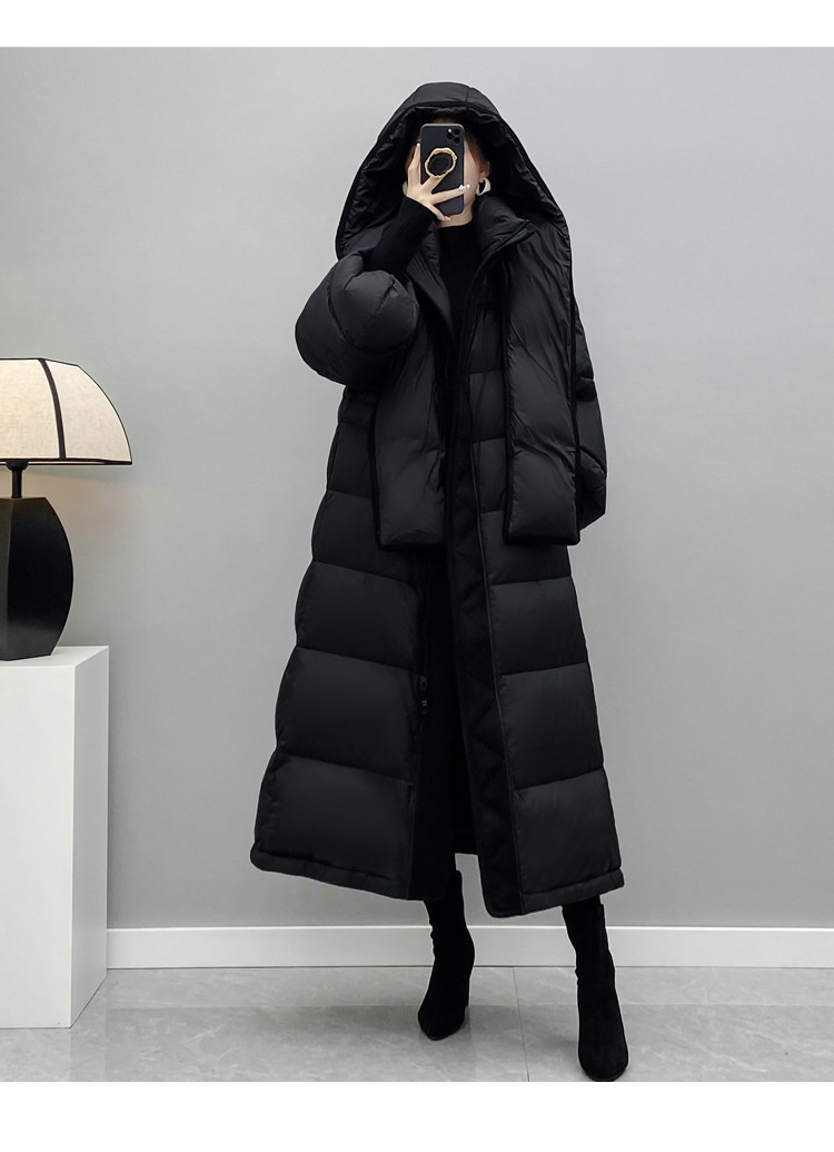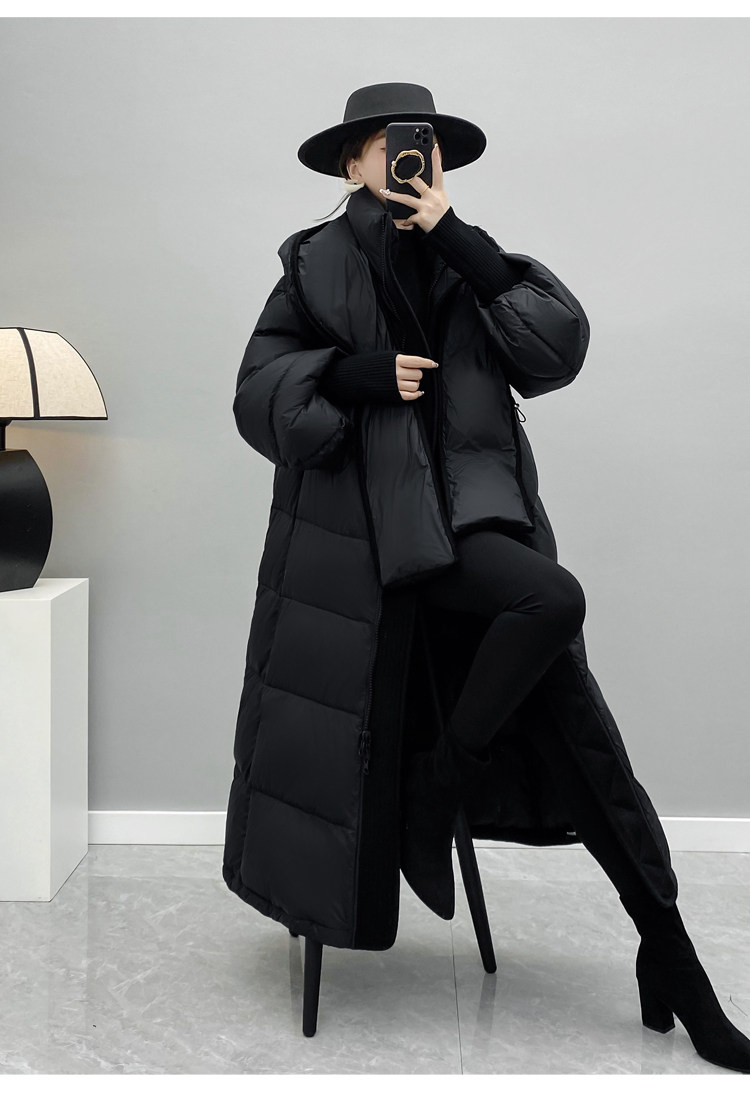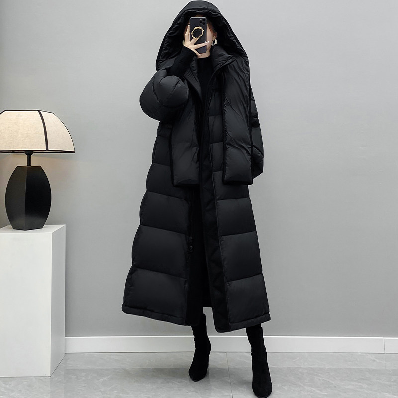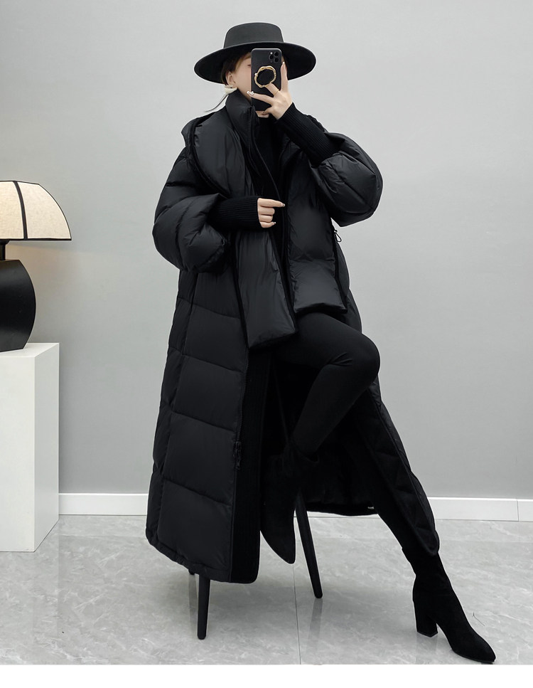 Зимняя бархатная дизайнерская толстовка с капюшоном с пухом, черный пуховик, оверсайз, белая одежда, утиный пух, тренд сезона