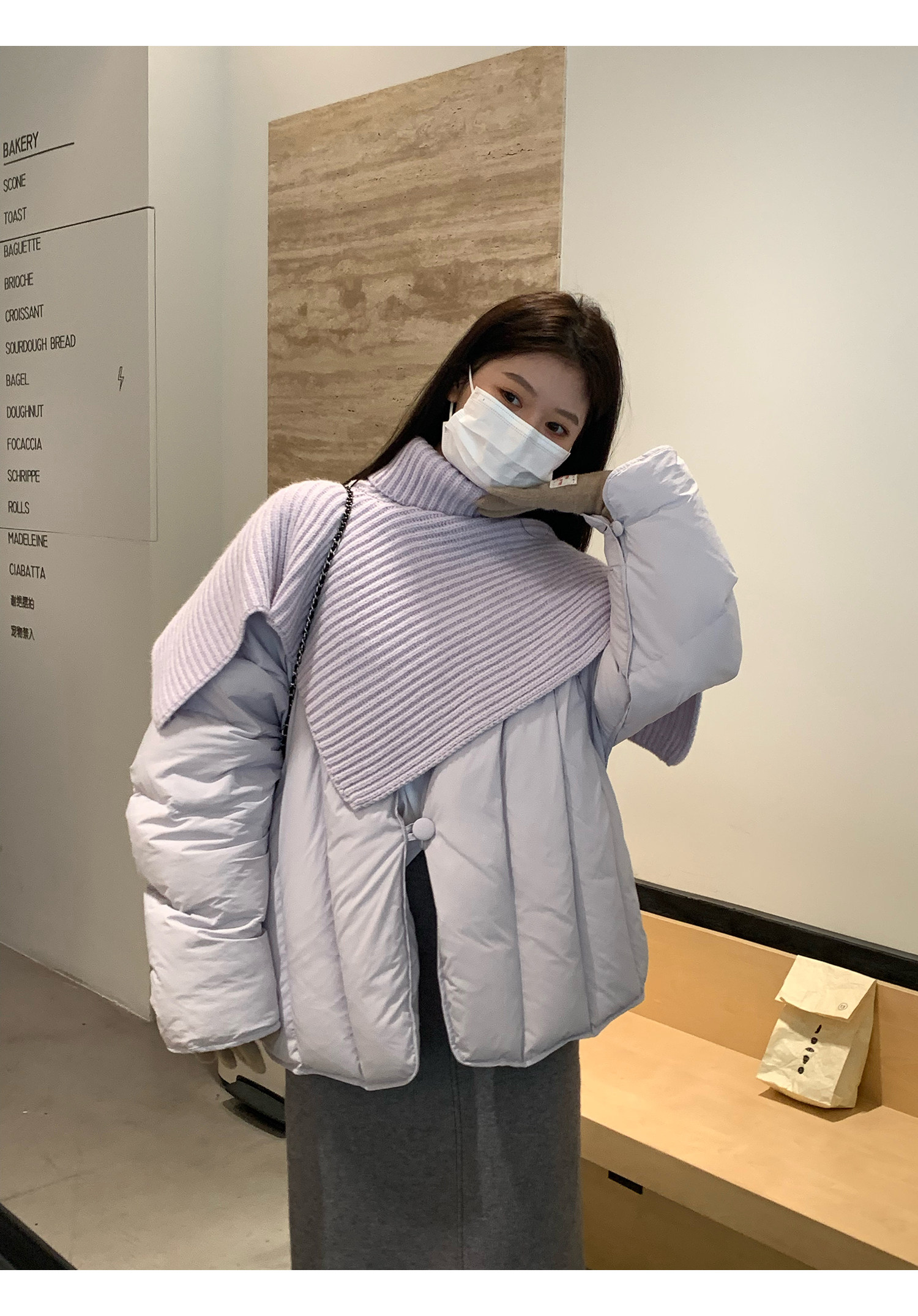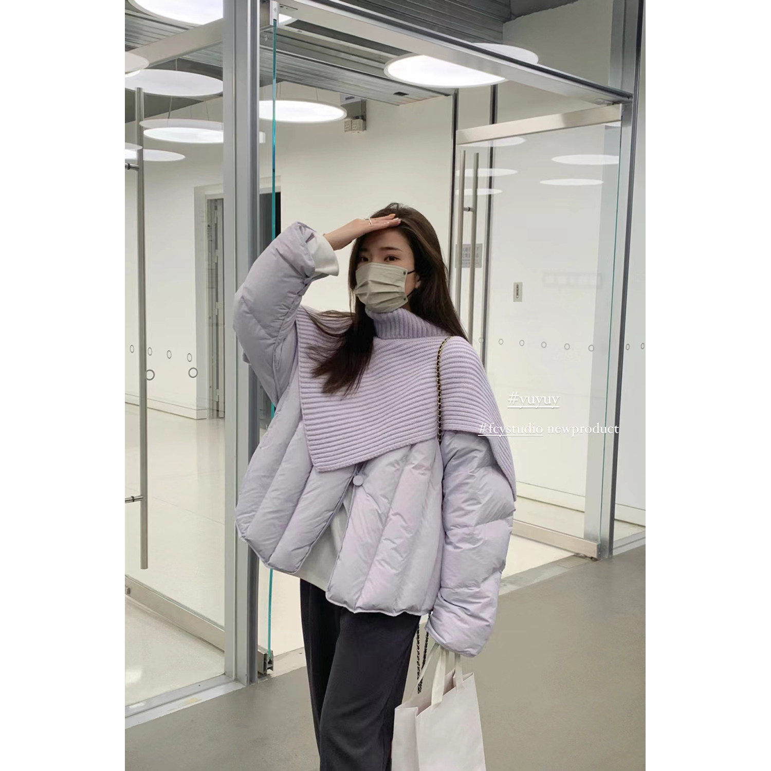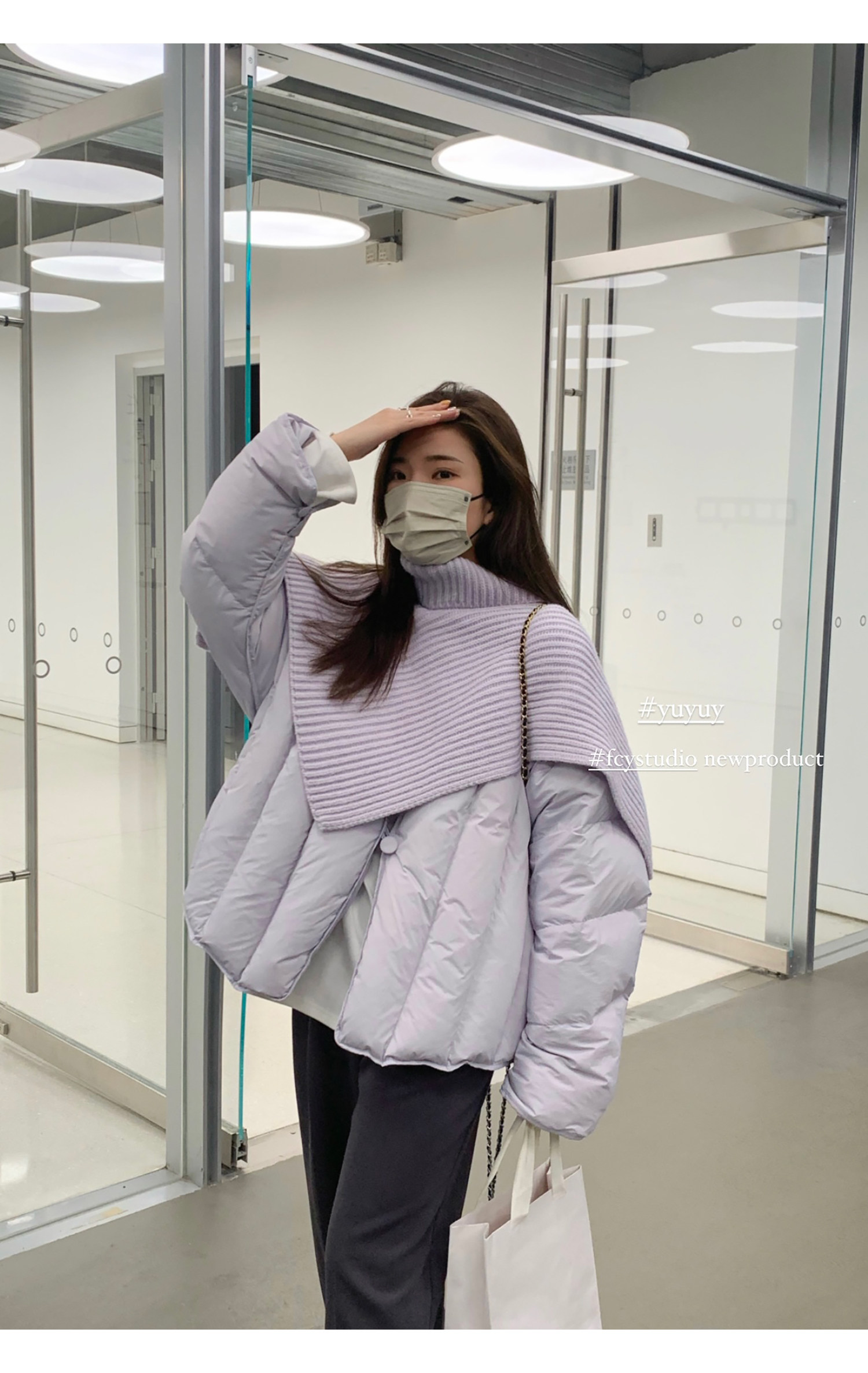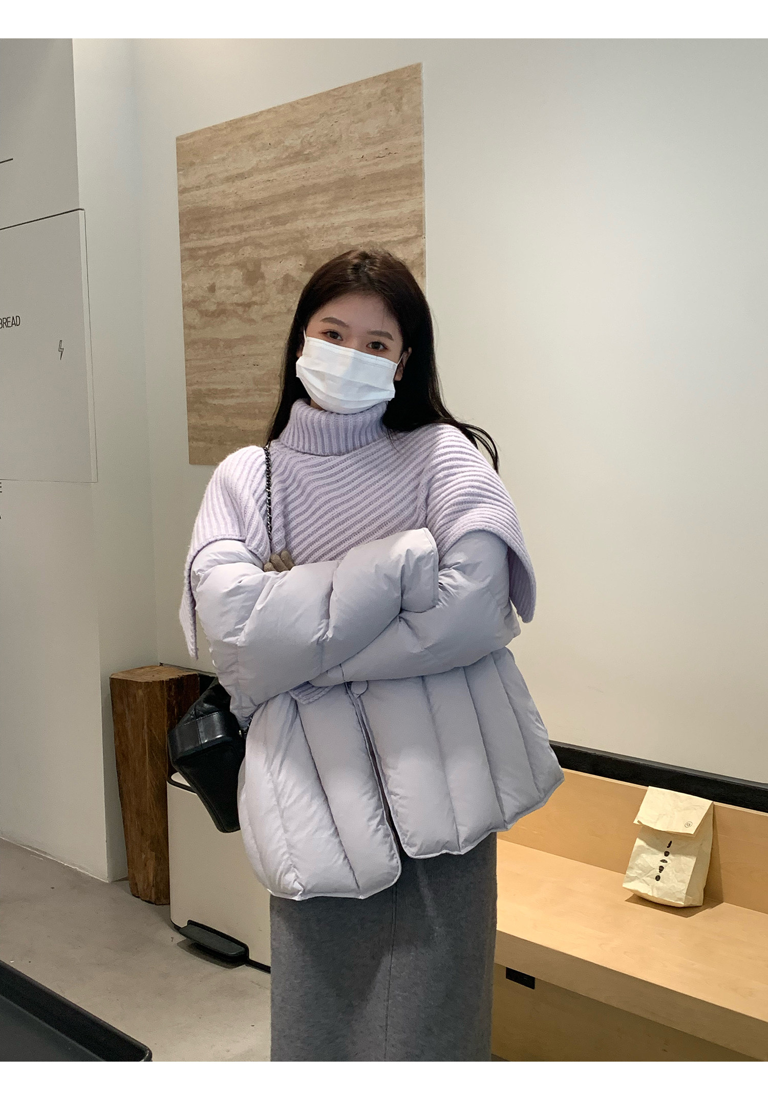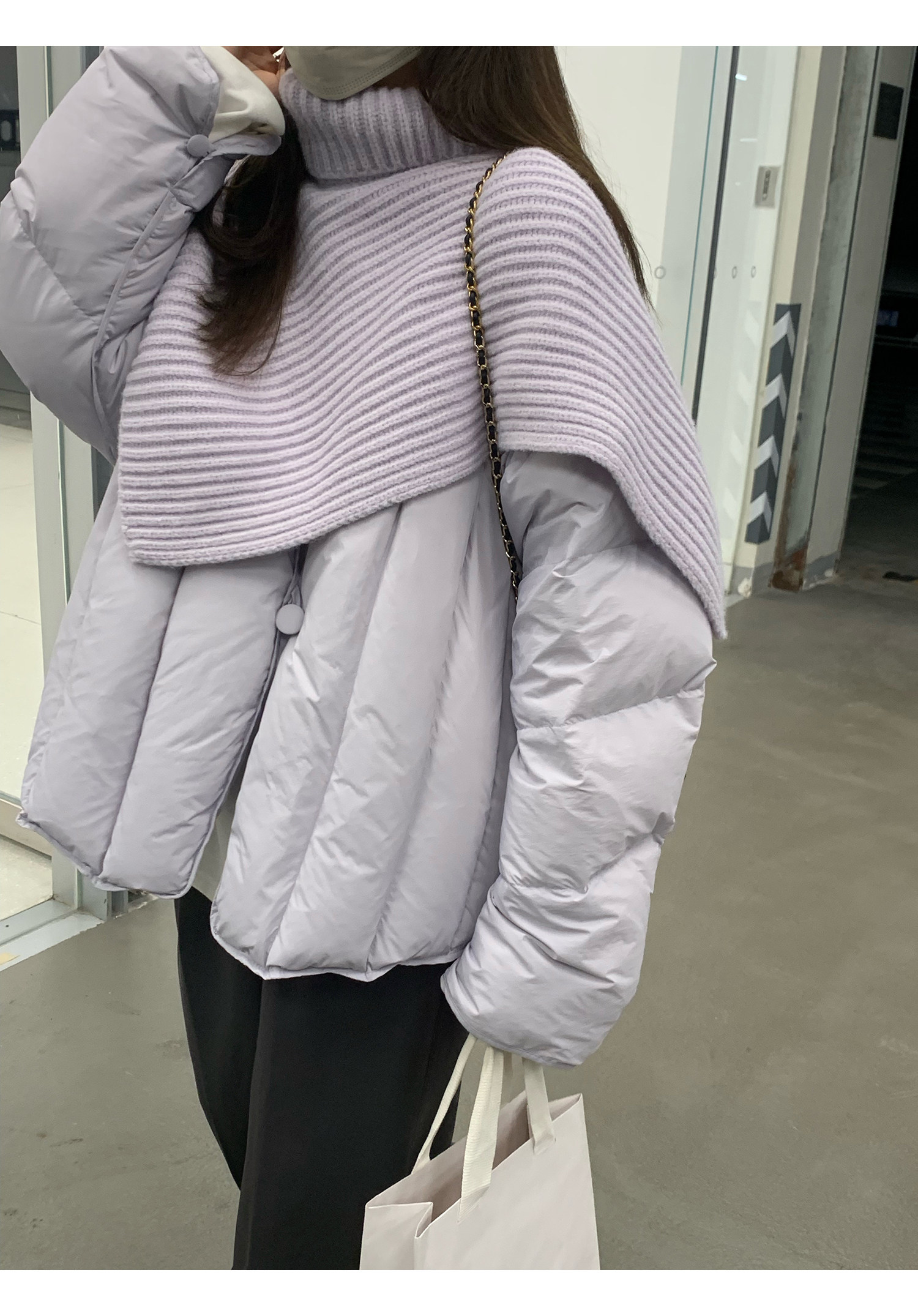 Сиреневая накидка, зимний пуховик, дизайнерская модная куртка, тренд сезона, в корейском стиле