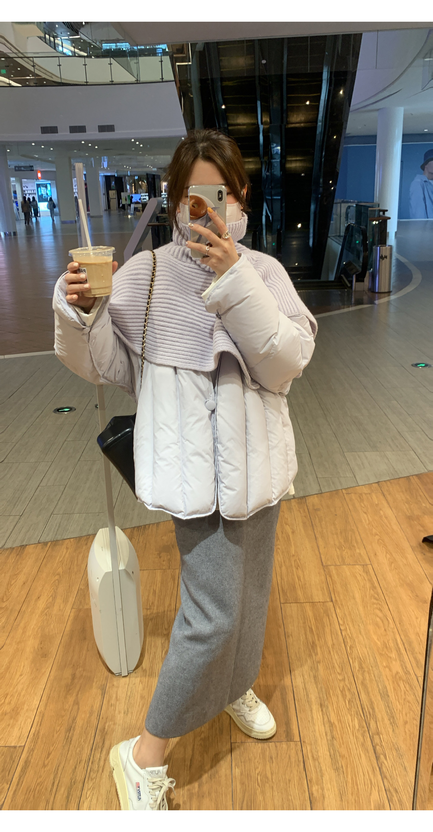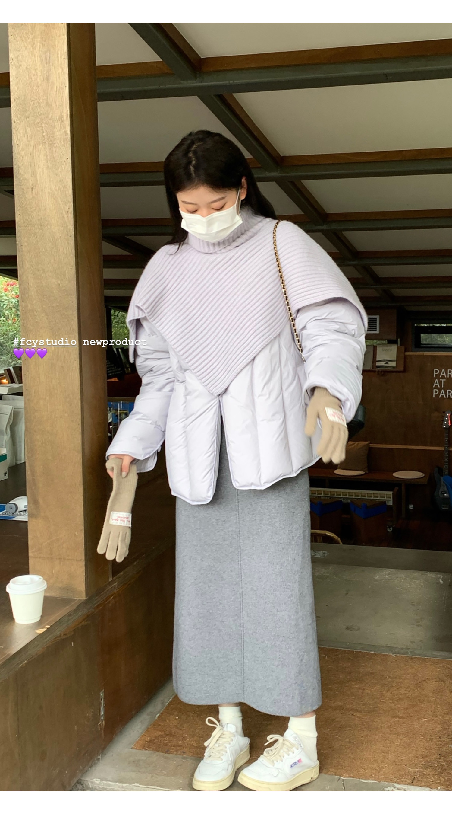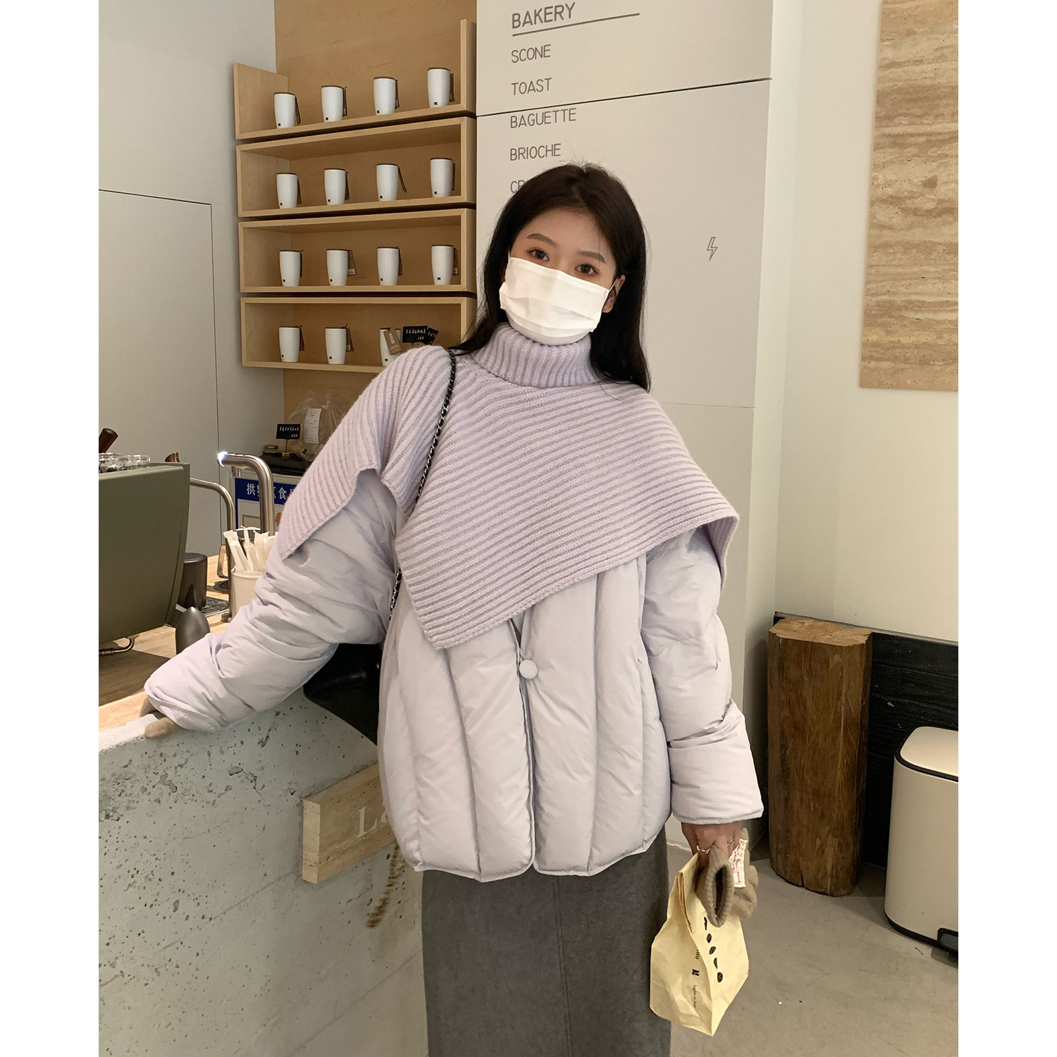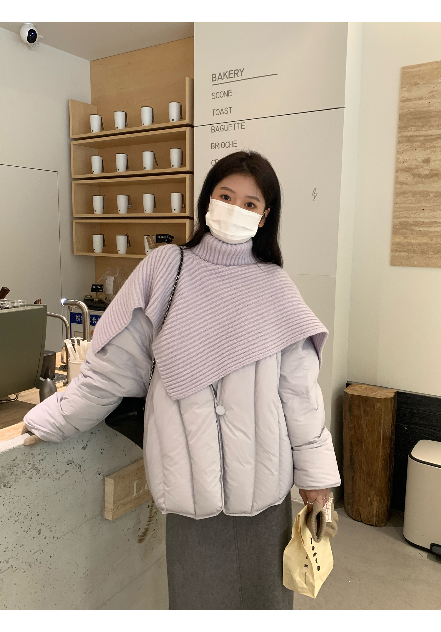 Сиреневая накидка, зимний пуховик, дизайнерская модная куртка, тренд сезона, в корейском стиле