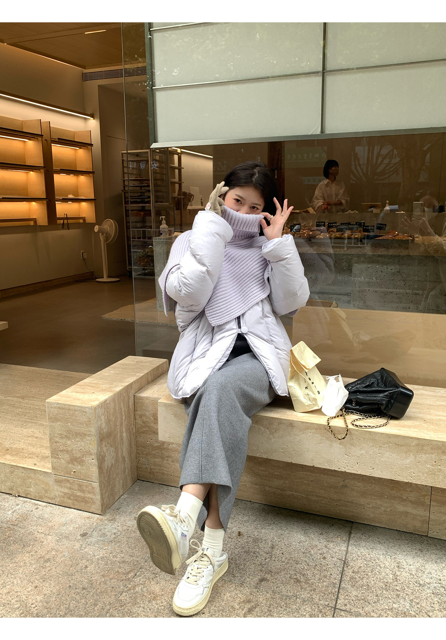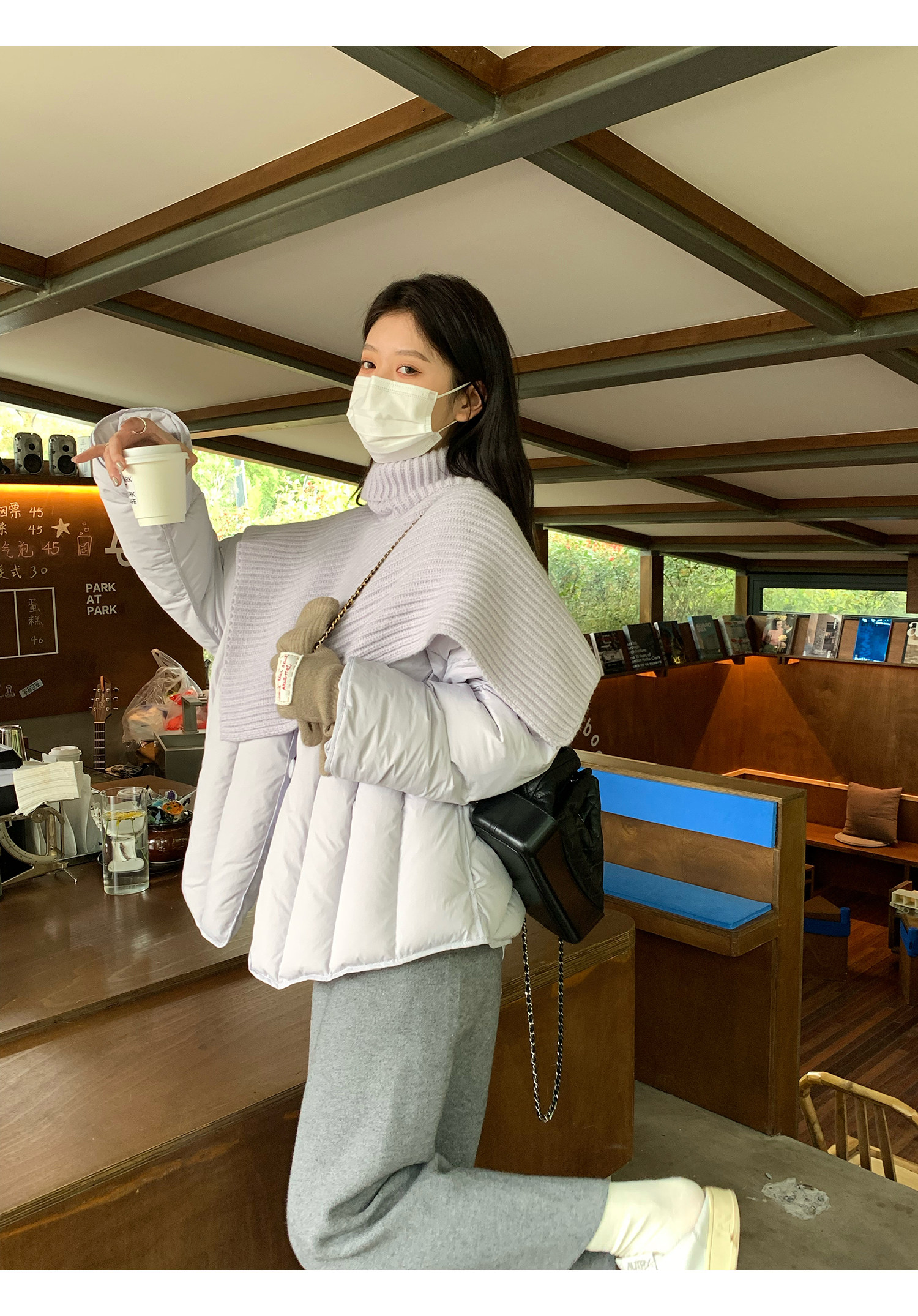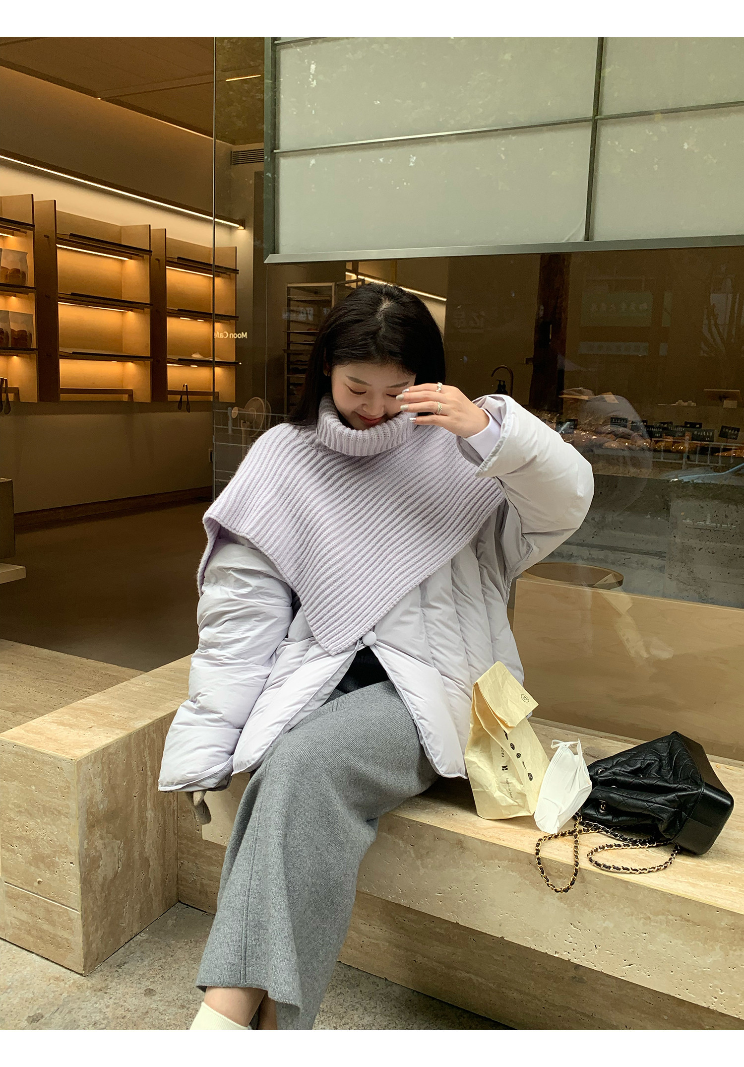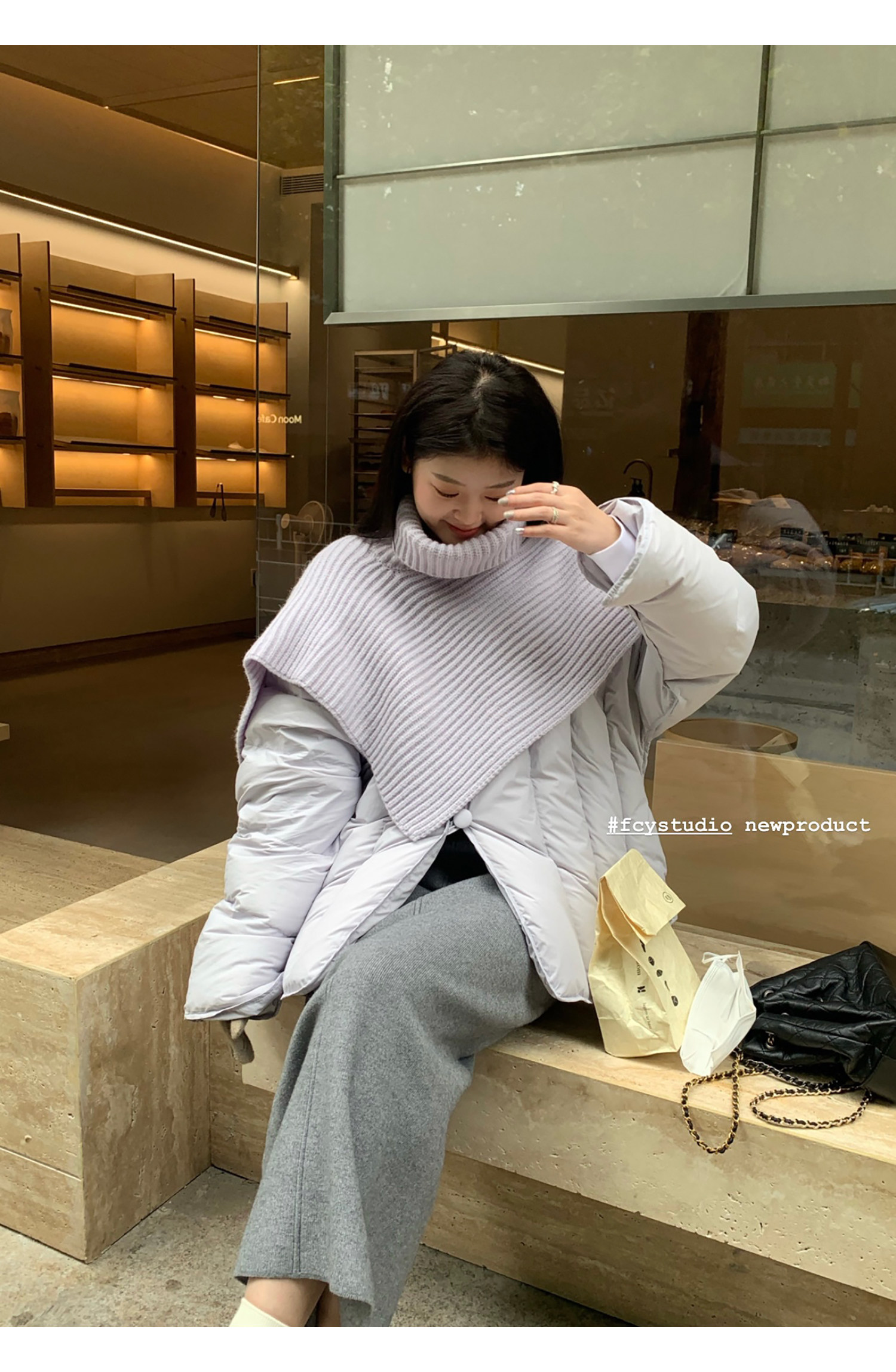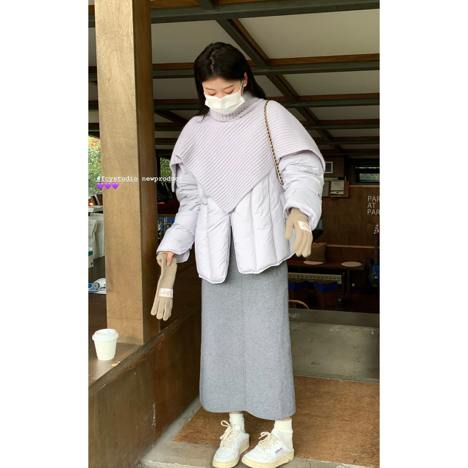 Сиреневая накидка, зимний пуховик, дизайнерская модная куртка, тренд сезона, в корейском стиле