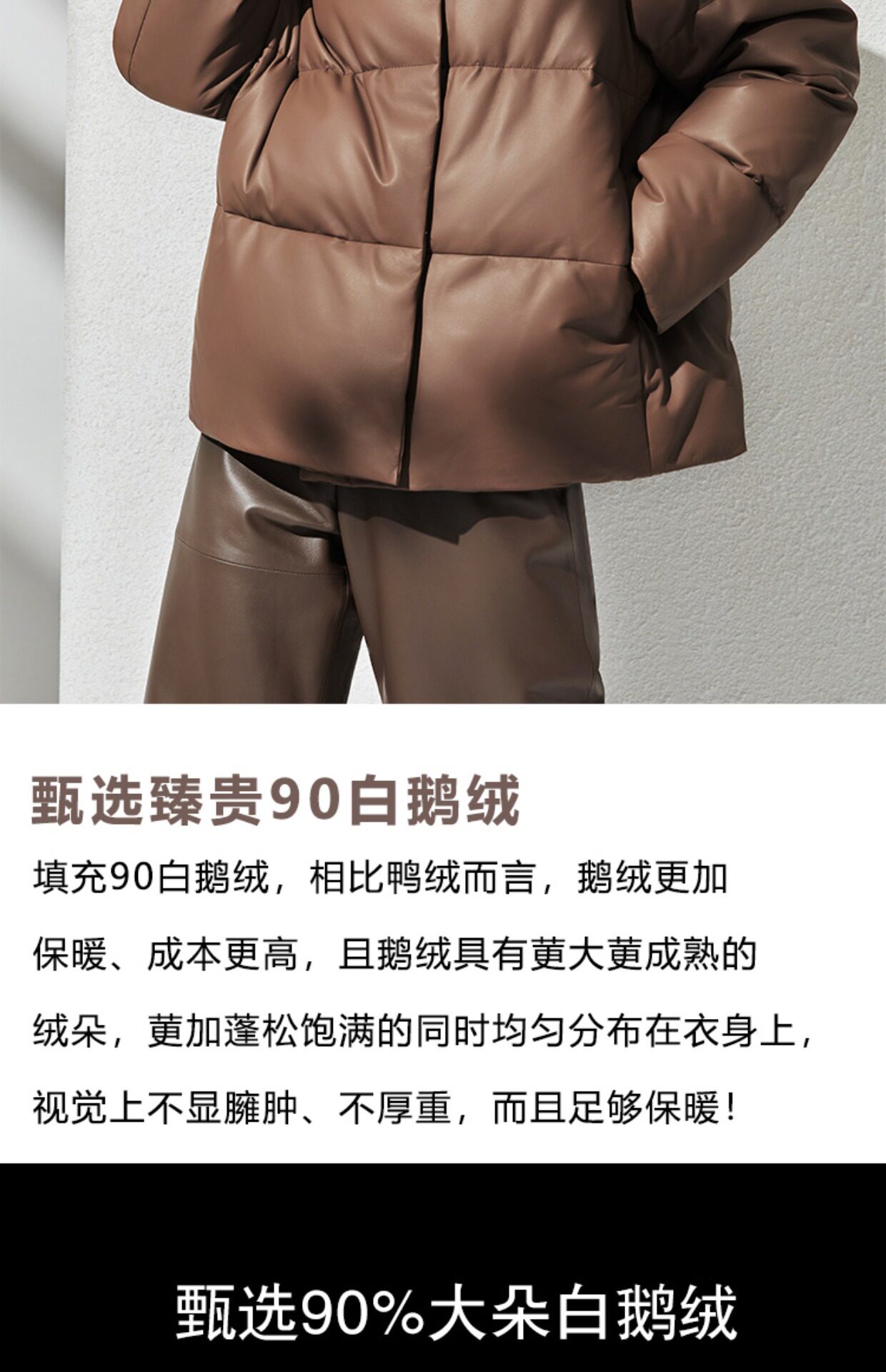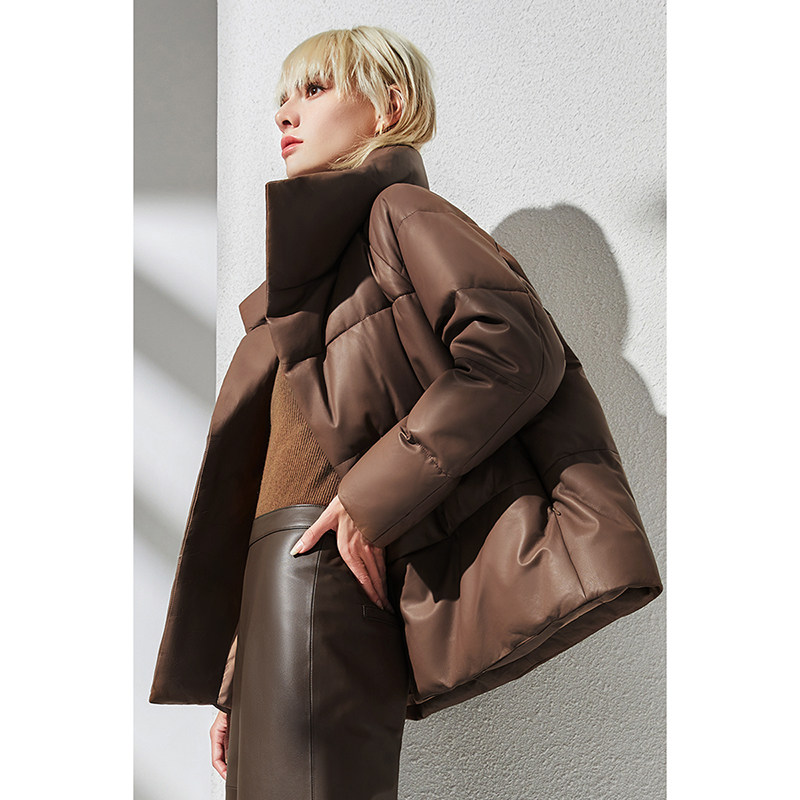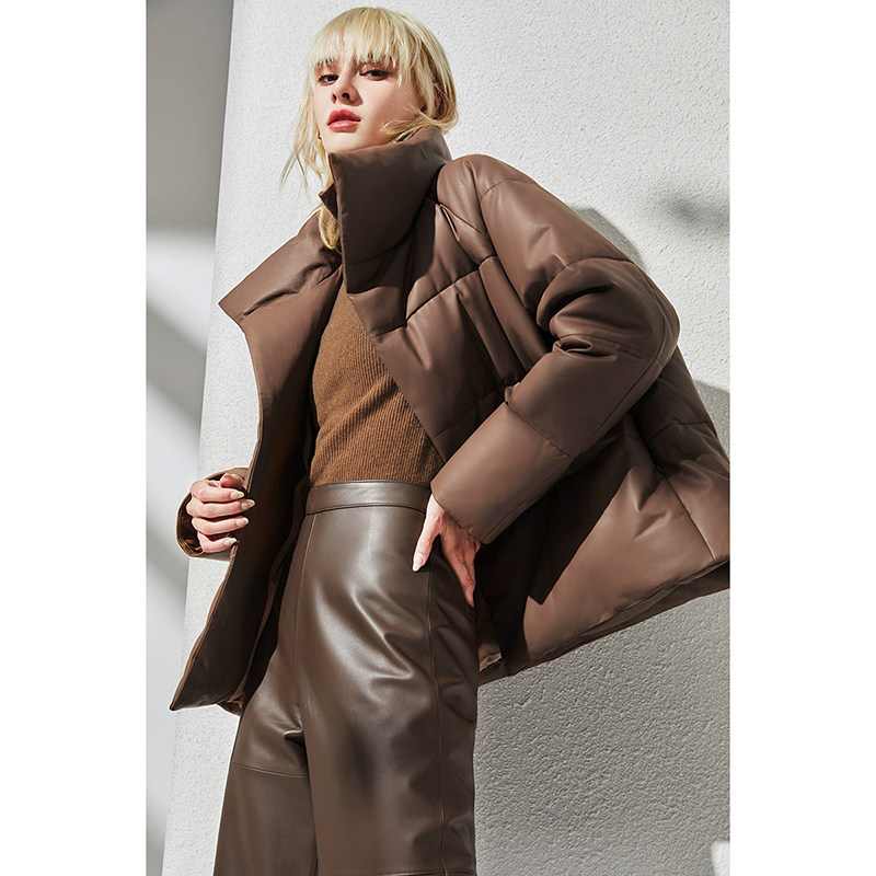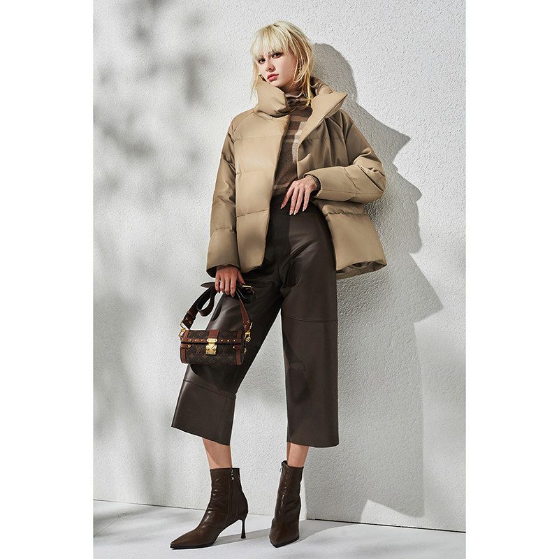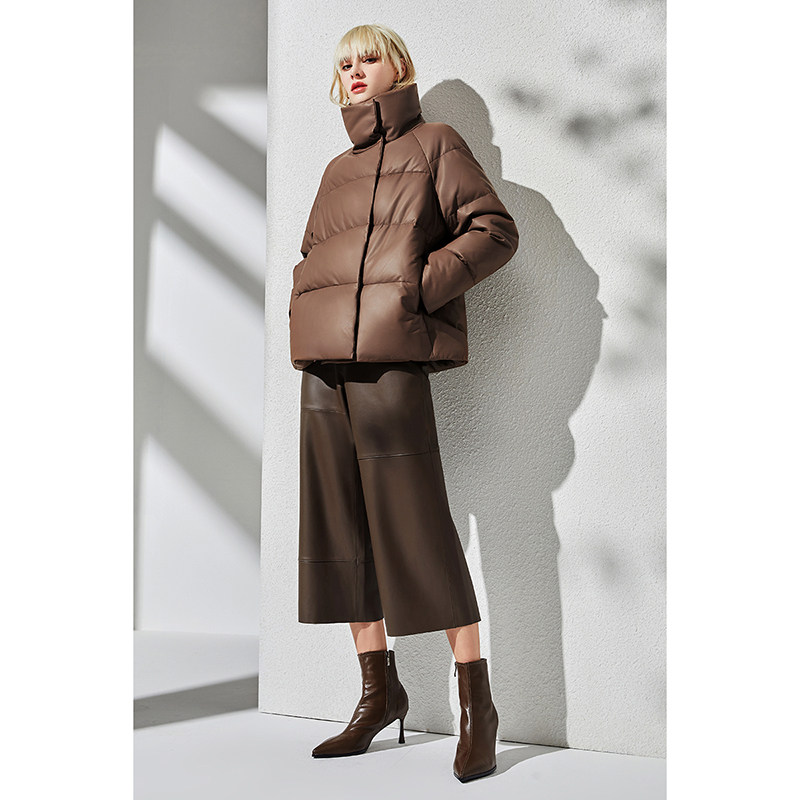 Импортный бархатный утепленный короткий пуховик, гусиный пух, из натуральной кожи