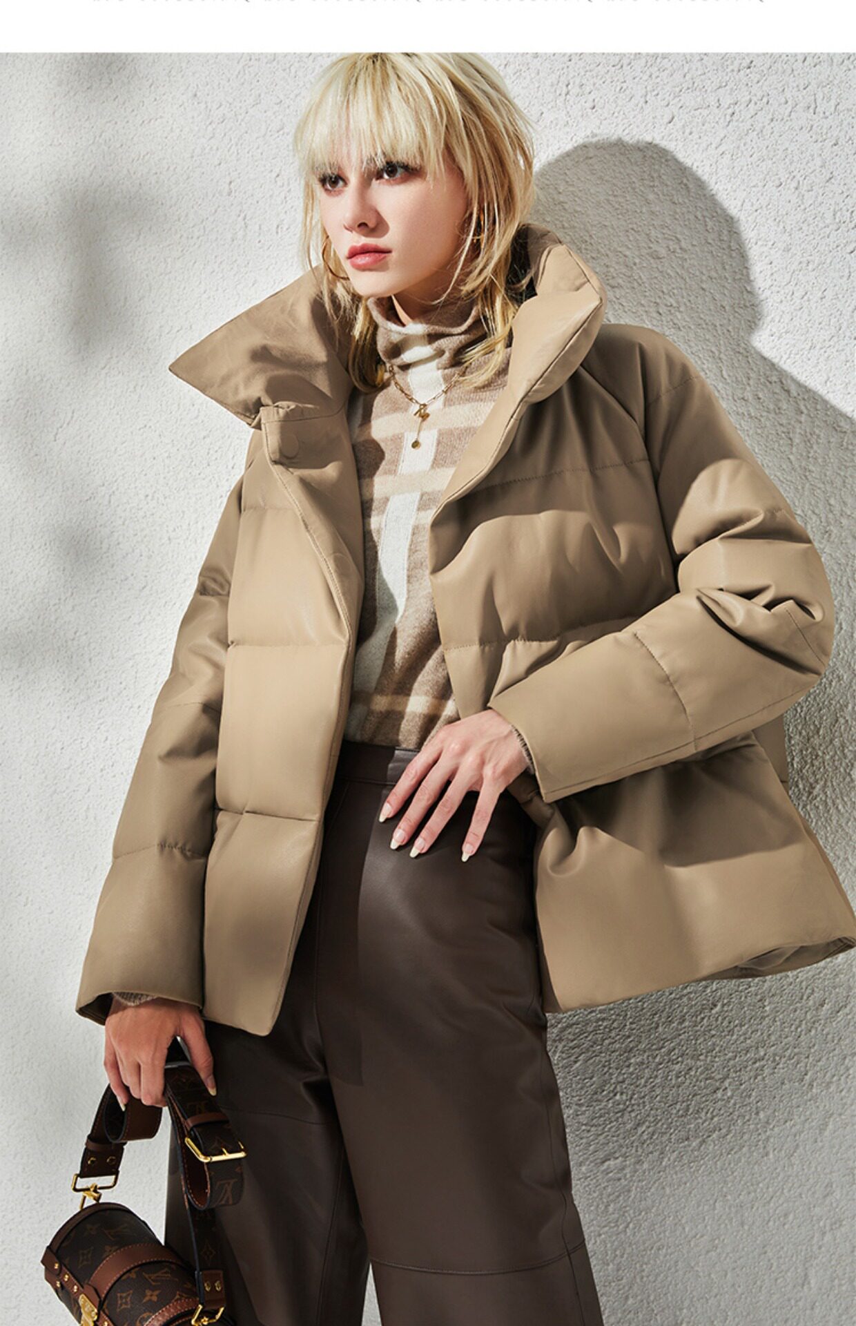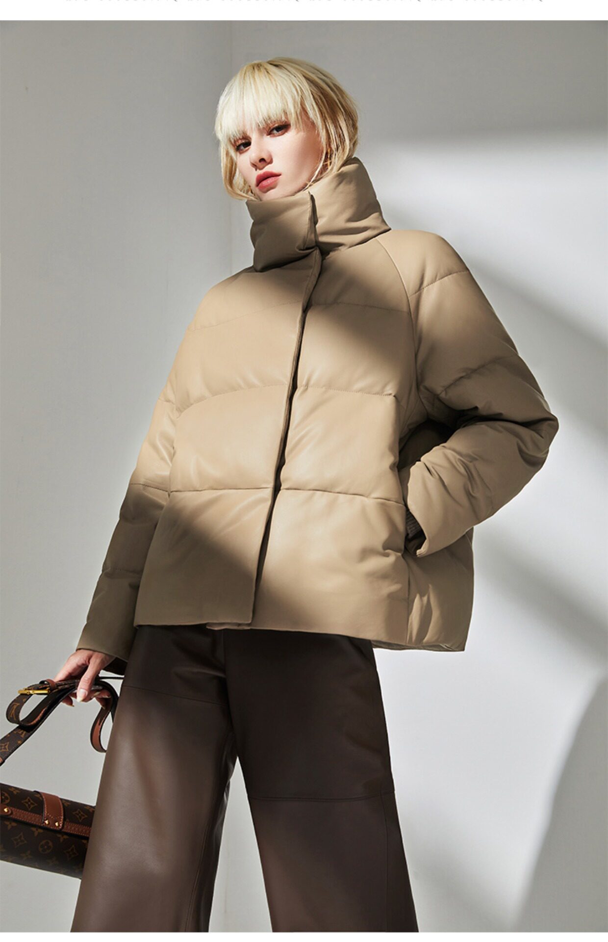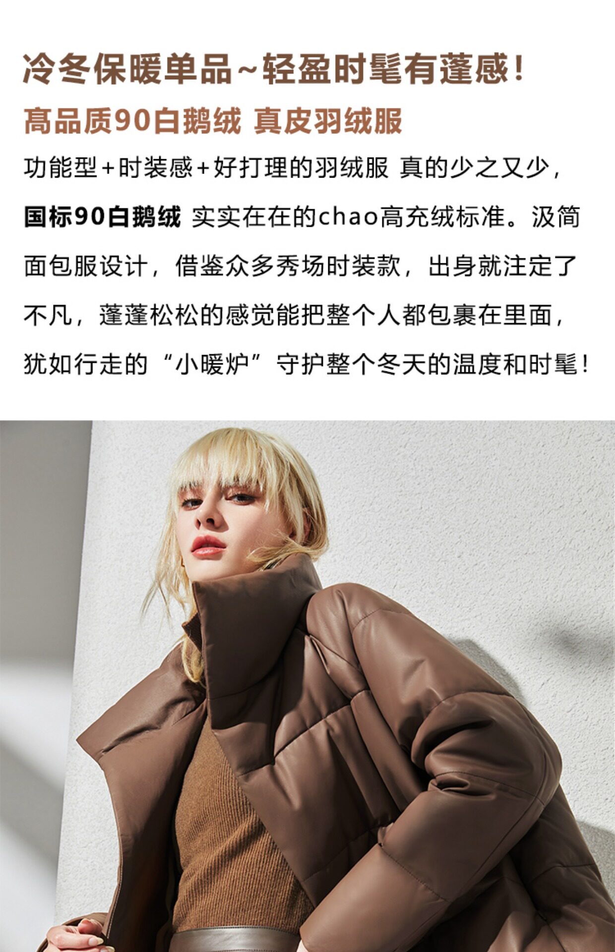 Импортный бархатный утепленный короткий пуховик, гусиный пух, из натуральной кожи