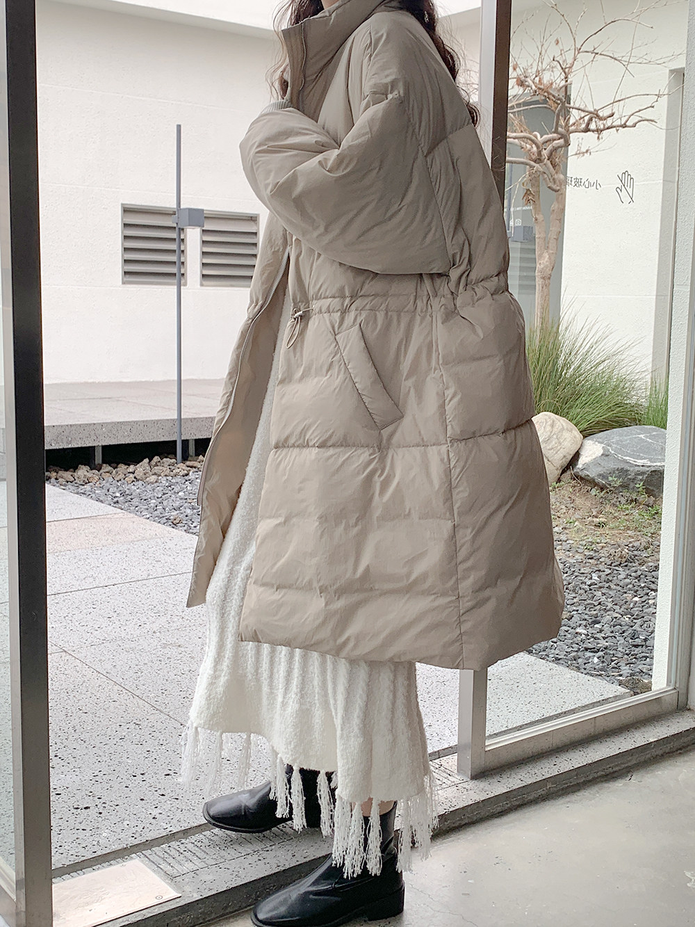 Конструкция воротника на стенде тепет, чтобы защитить шею, а насосная веревка вокруг талии будет продолжать постоянно добывать температуру и ветрозащитный эффект.