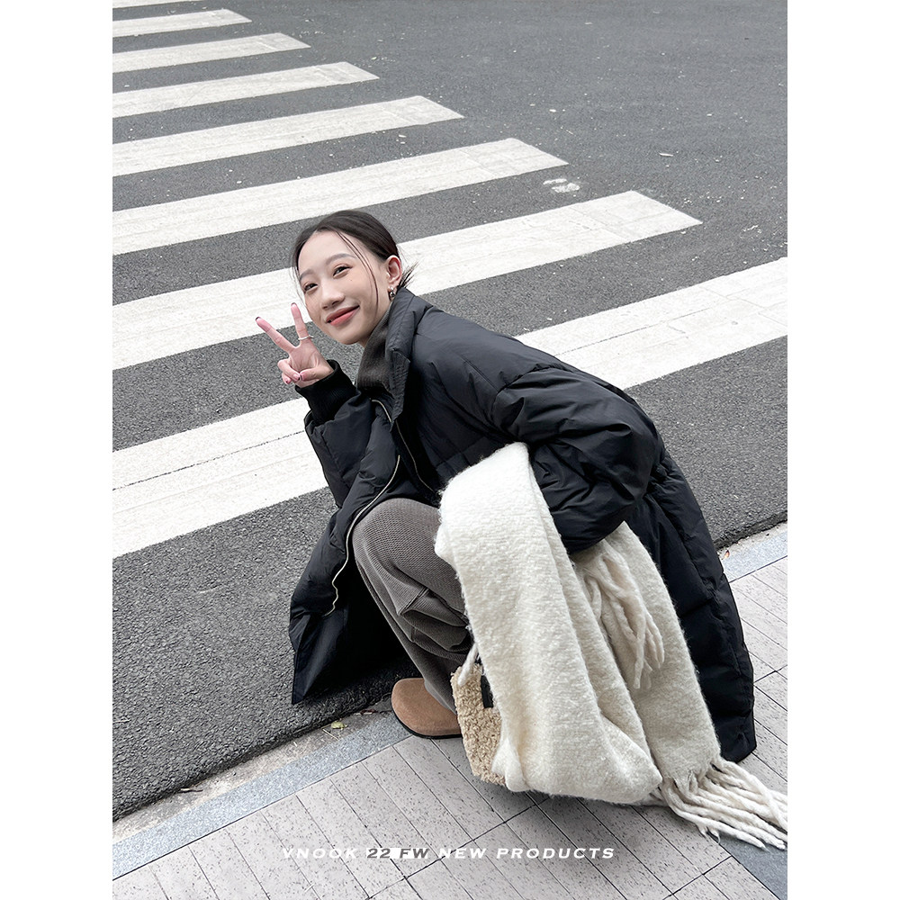 Демисезонный длинный пуховик, коллекция 2022, свободный крой, средней длины