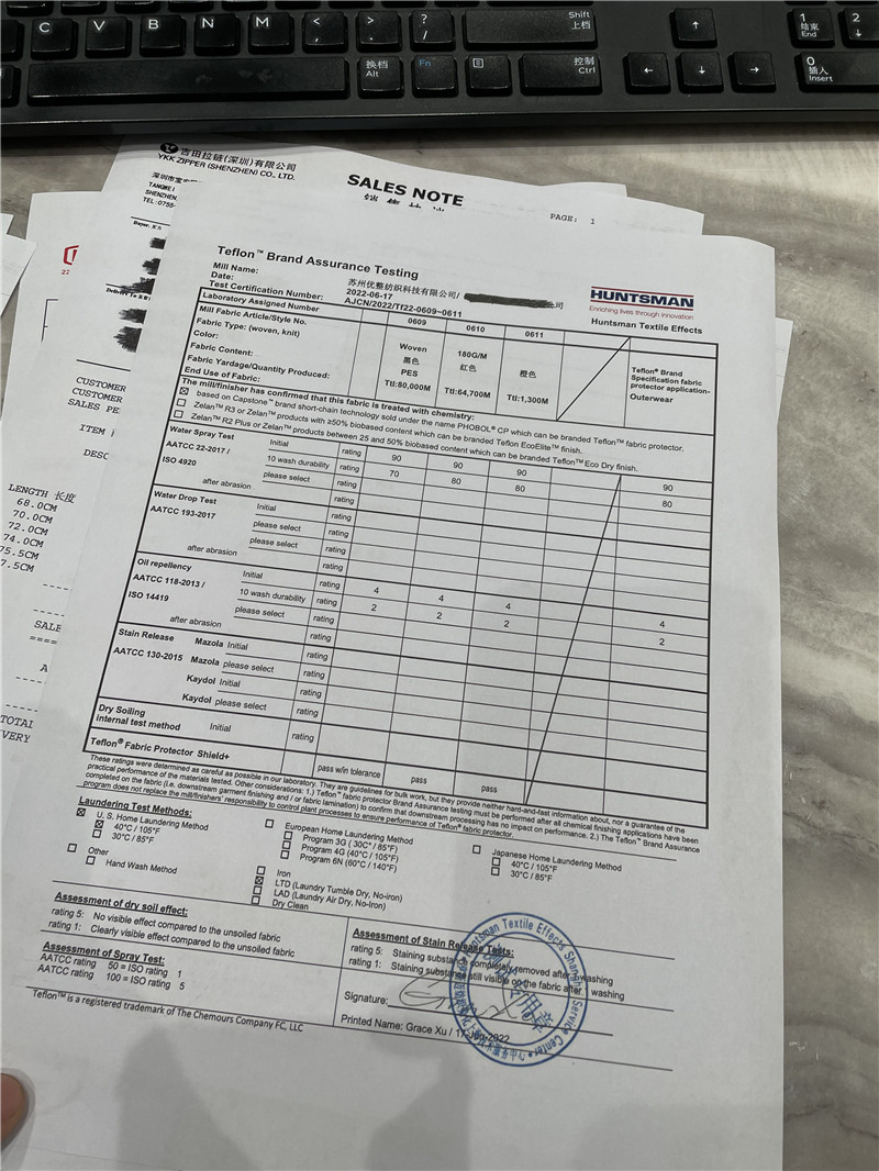 Застежка -молния из компании YKK Company, Shenzhen, а на молнии вспомогательного материала от YKK, Даляни -Йока,