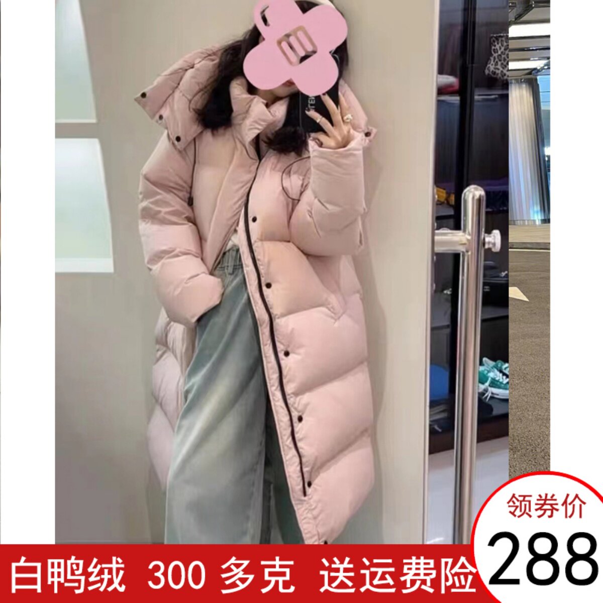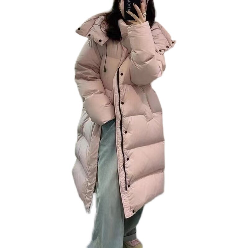 Розовый зимний модный пуховик, бархатная куртка, длина макси, в корейском стиле, оверсайз, утиный пух