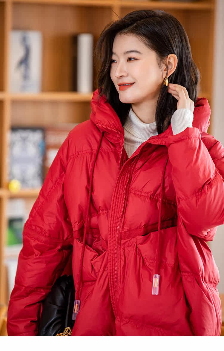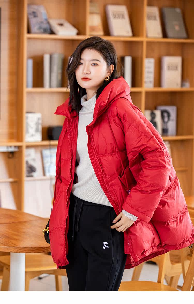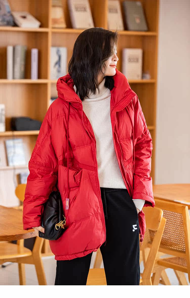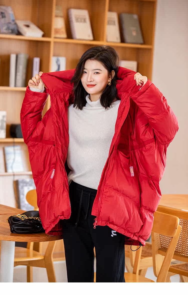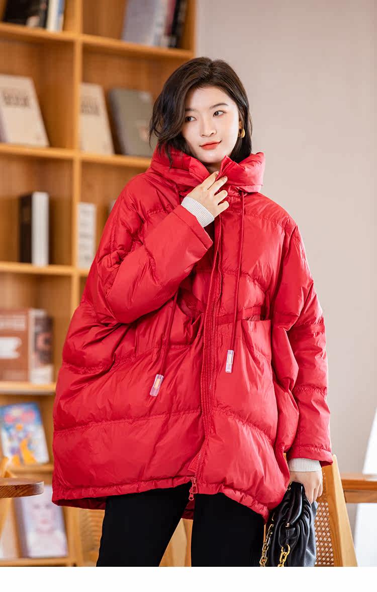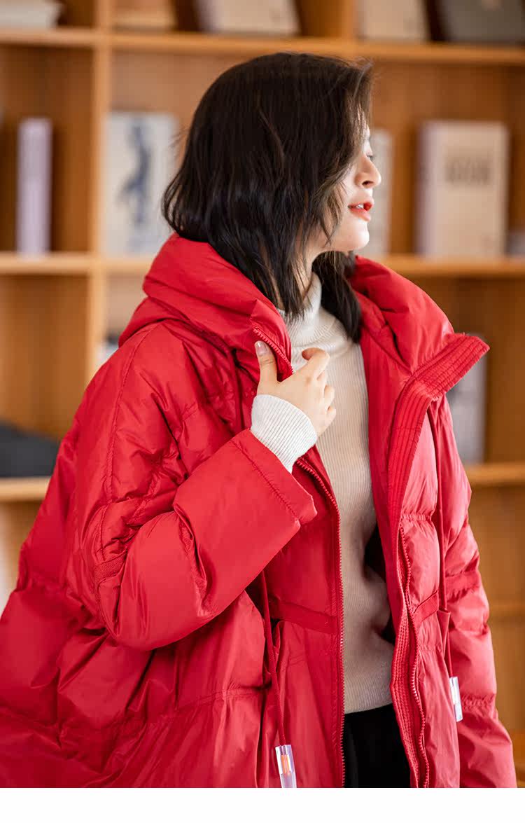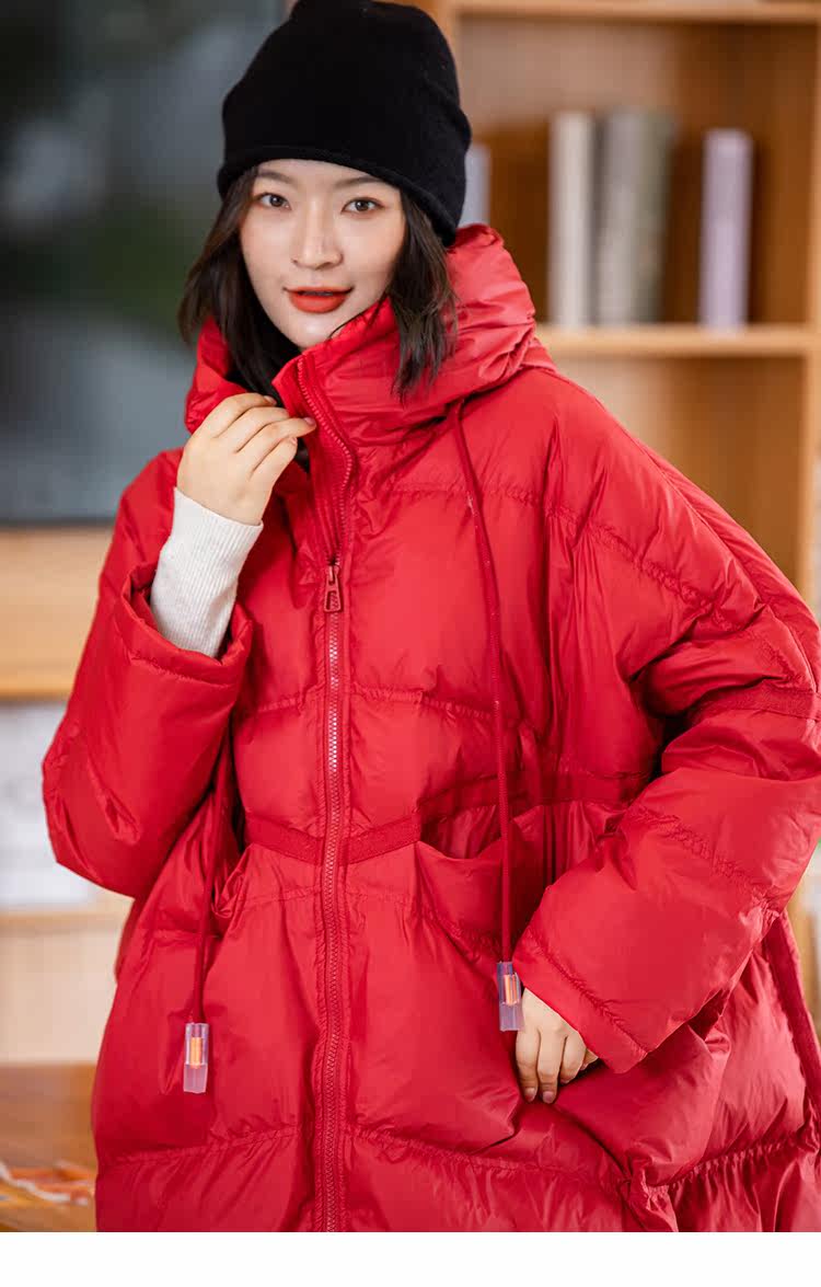 Зимний пуховик, красное удерживающее тепло пальто с капюшоном, бархатная куртка, большой размер, утиный пух