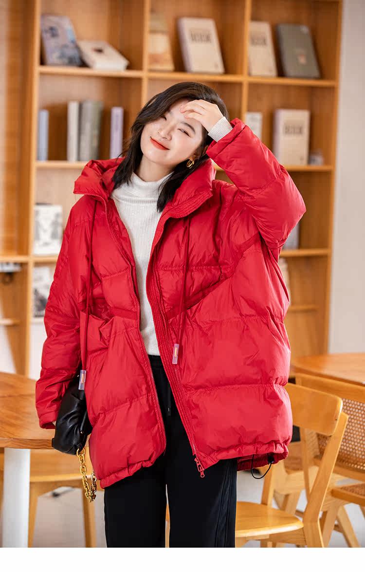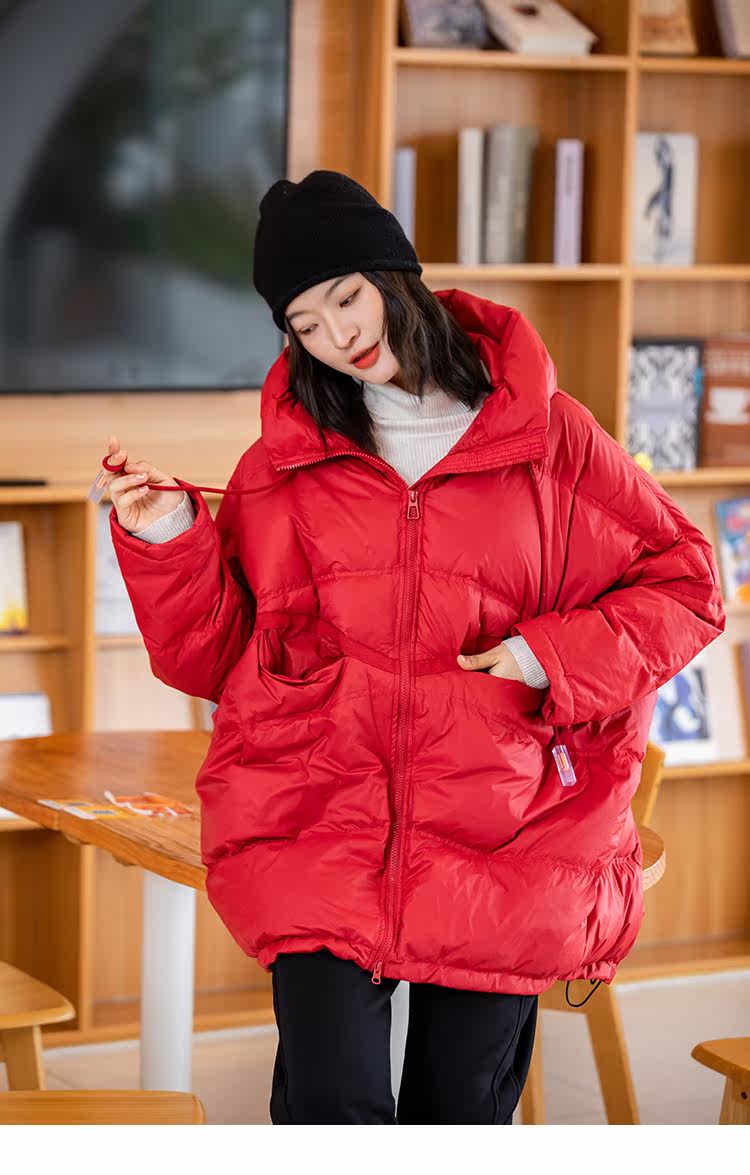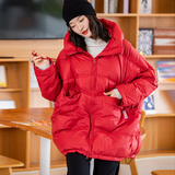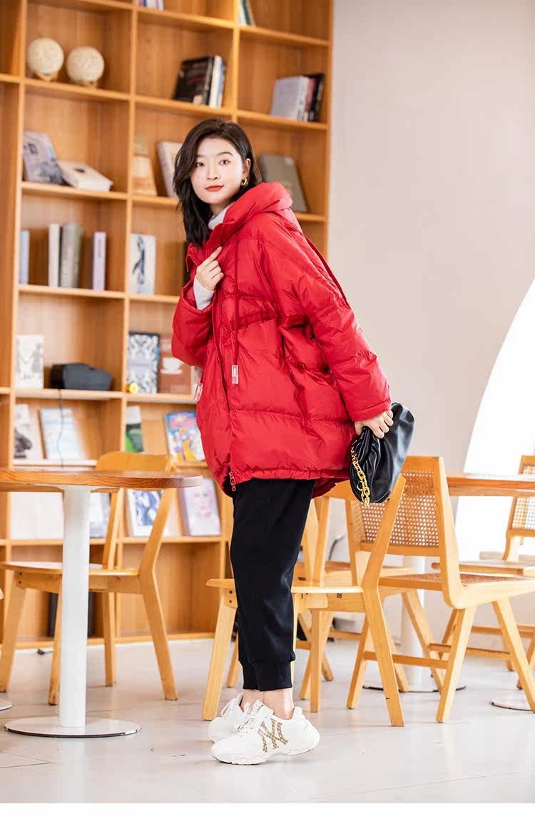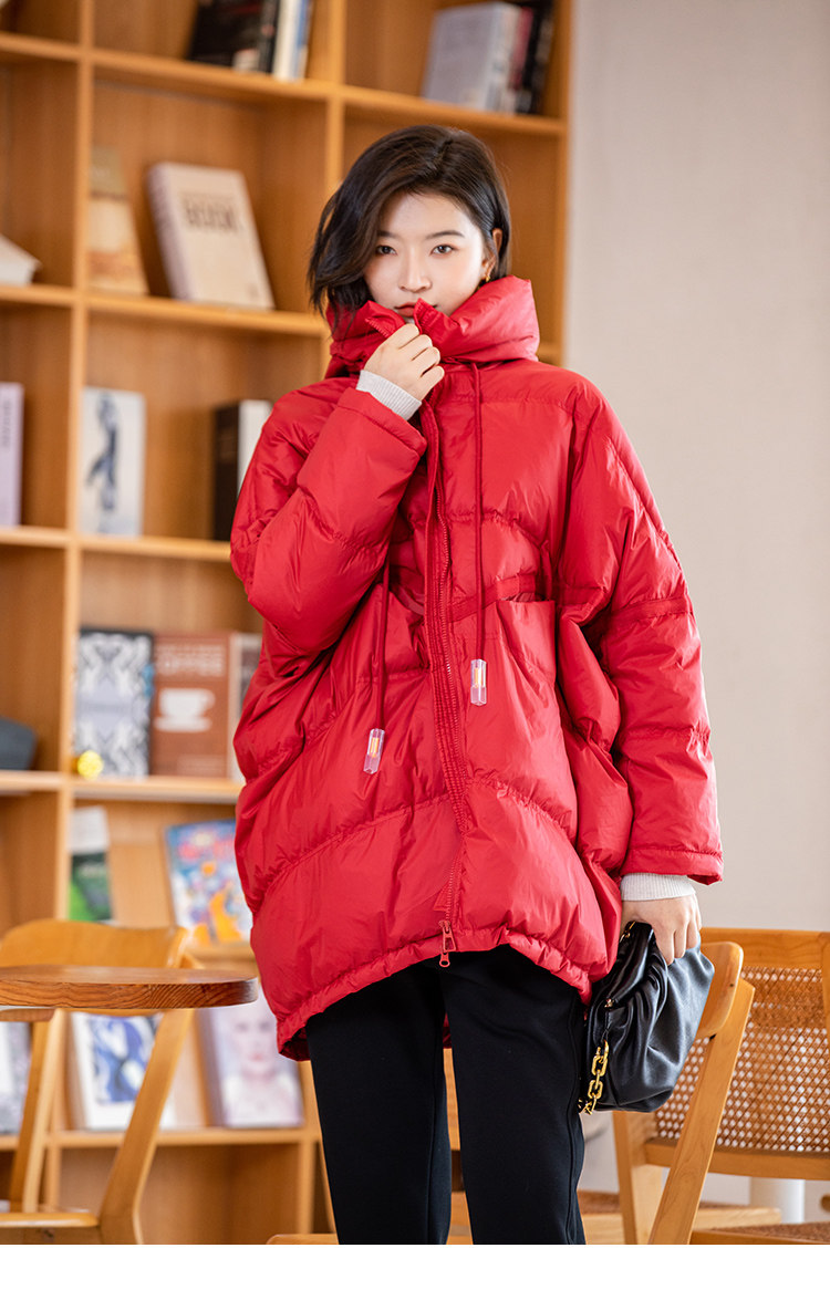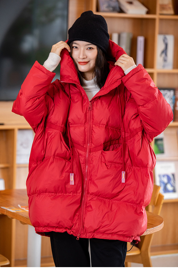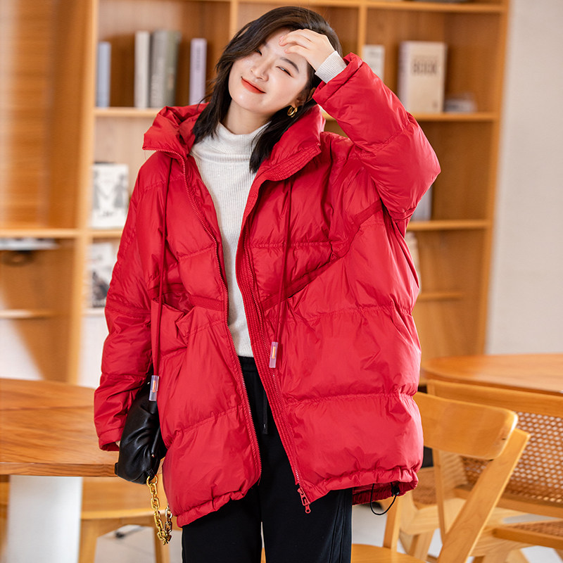 Зимний пуховик, красное удерживающее тепло пальто с капюшоном, бархатная куртка, большой размер, утиный пух
