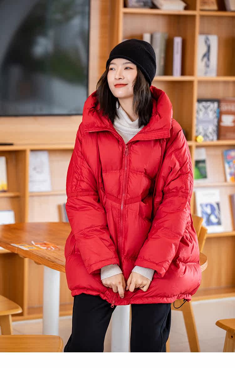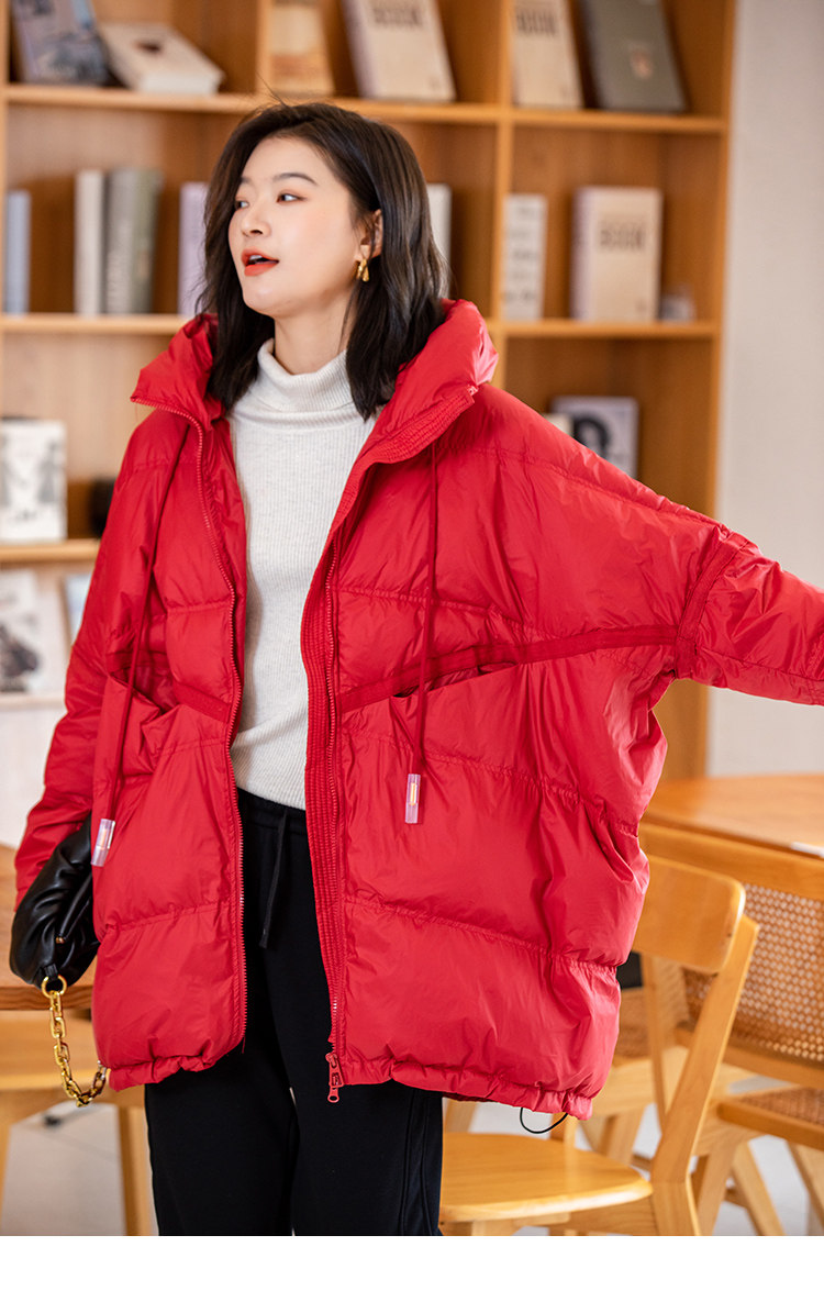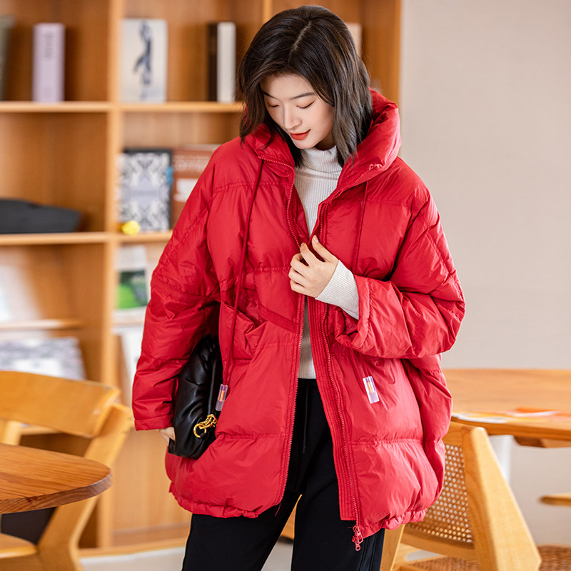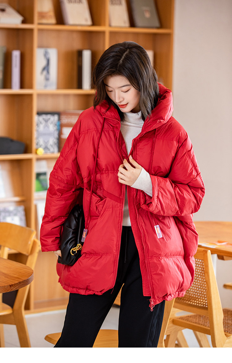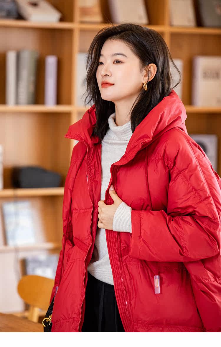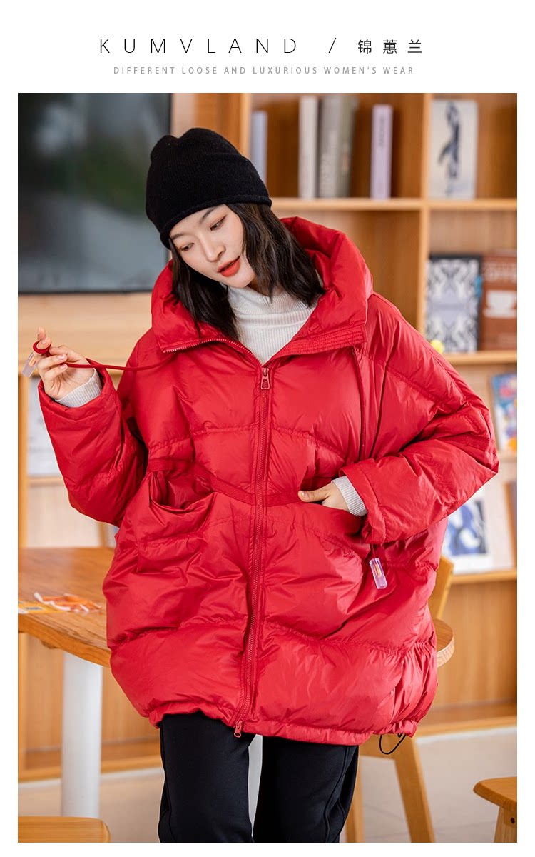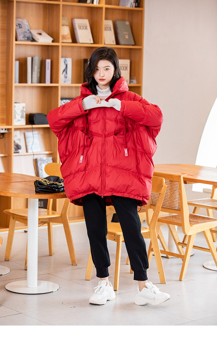 Зимний пуховик, красное удерживающее тепло пальто с капюшоном, бархатная куртка, большой размер, утиный пух