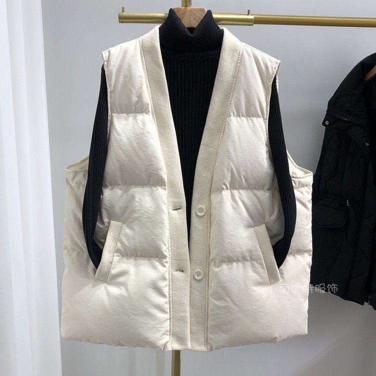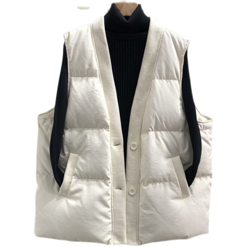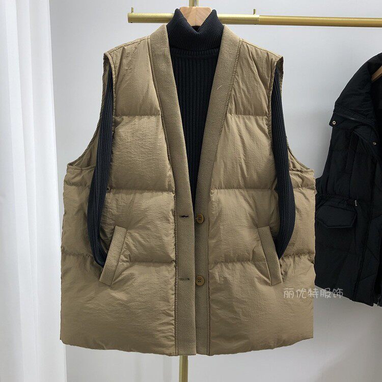 Элитный пуховик, жилет, бархатная демисезонная осенняя куртка, V-образный вырез, свободный крой, большой размер, утиный пух