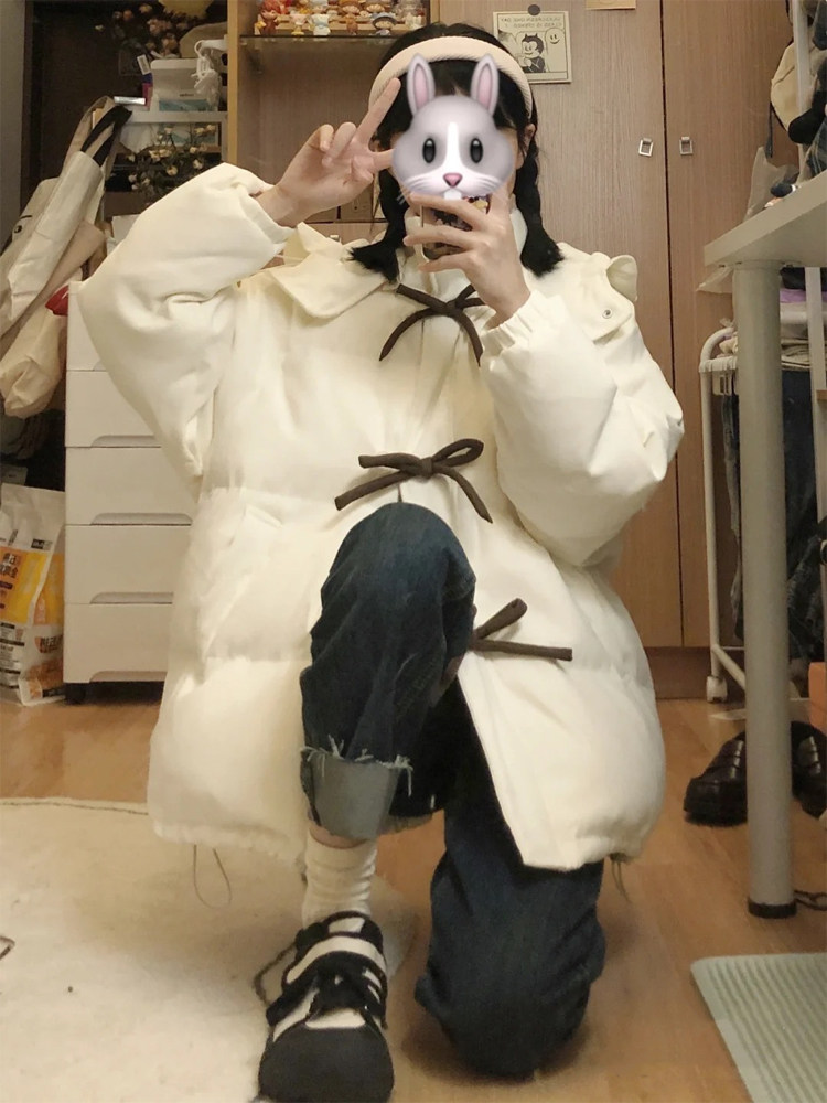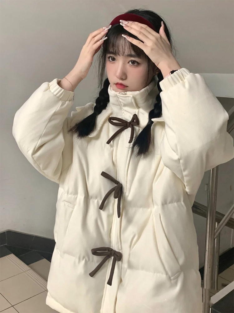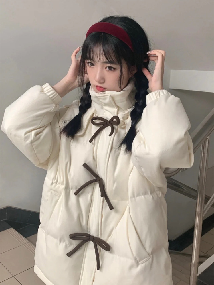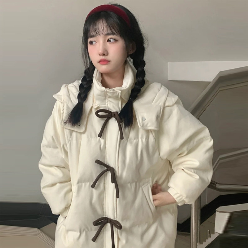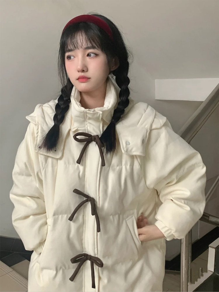 Зимний пуховик с пухом с бантиком, толстовка с капюшоном, куртка, коллекция 2022, в корейском стиле, оверсайз