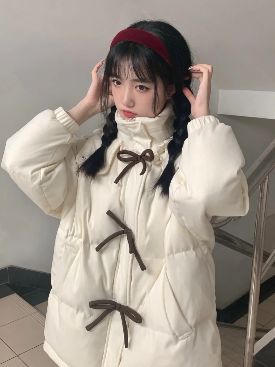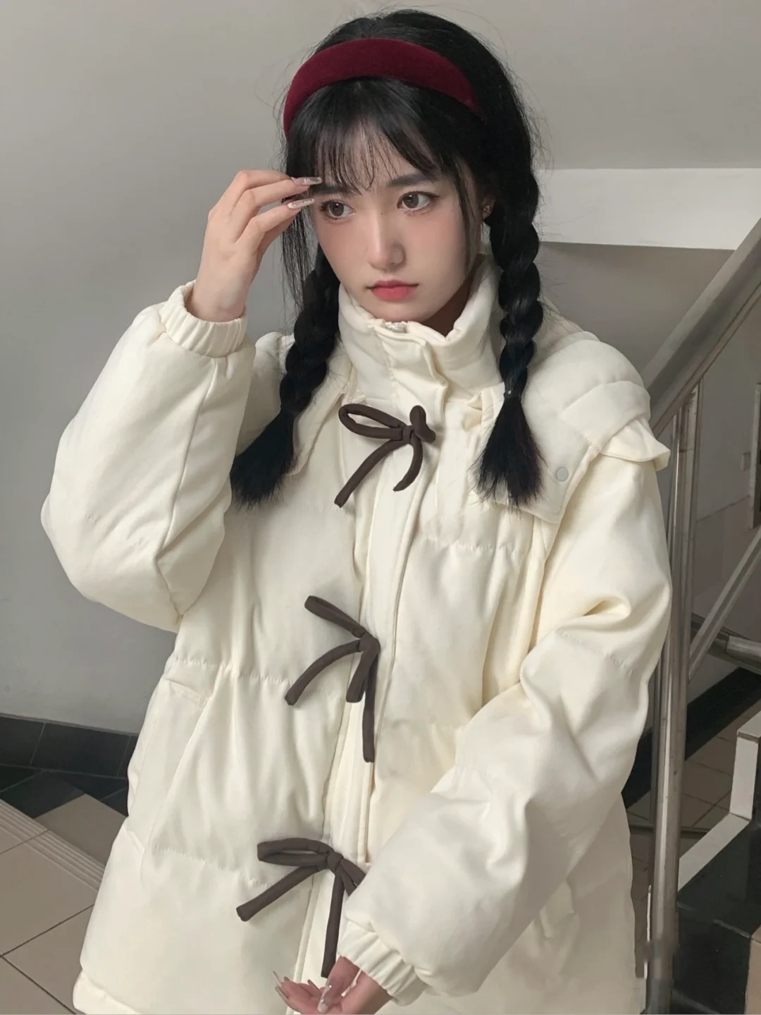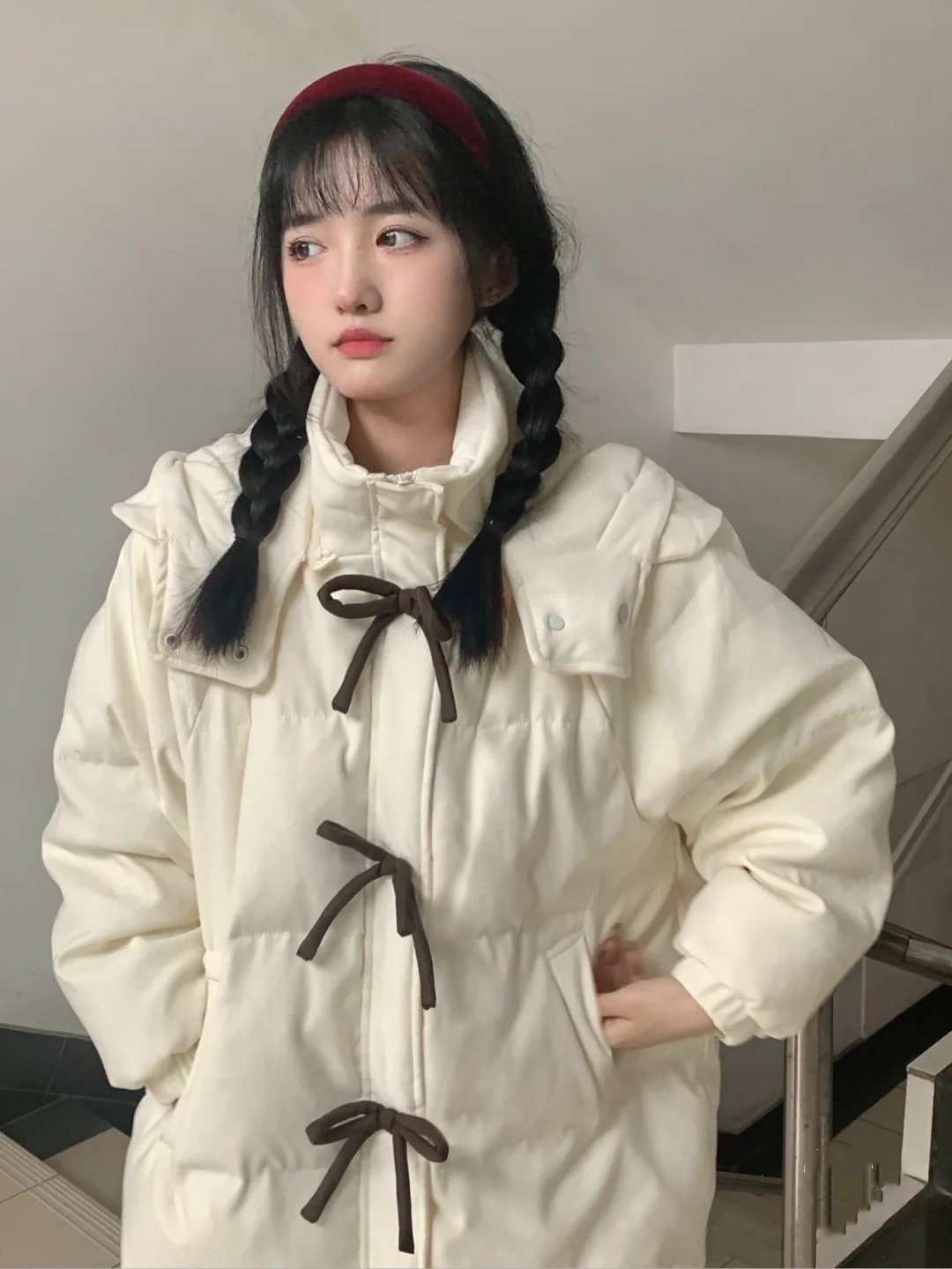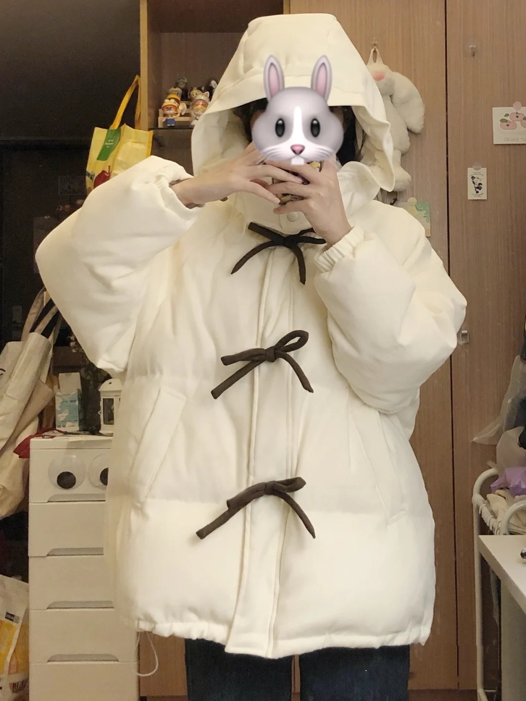 Зимний пуховик с пухом с бантиком, толстовка с капюшоном, куртка, коллекция 2022, в корейском стиле, оверсайз