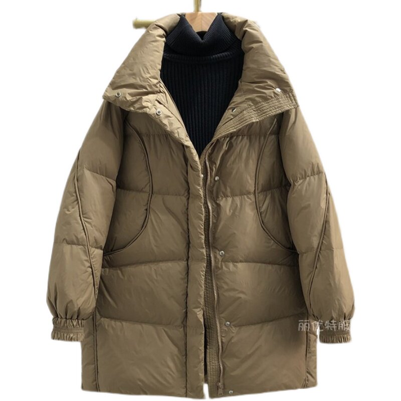 Качественный пуховик, бархатная зимняя куртка, средней длины, свободный крой, утиный пух