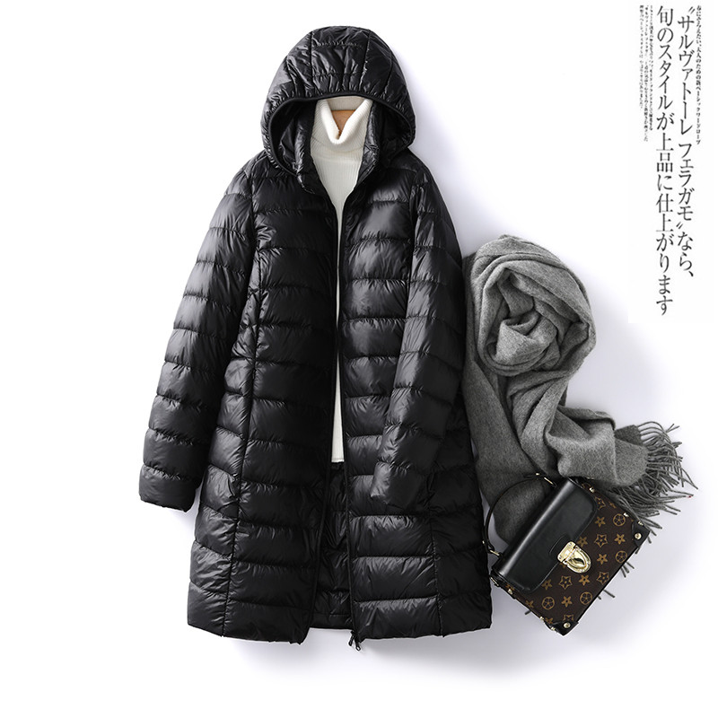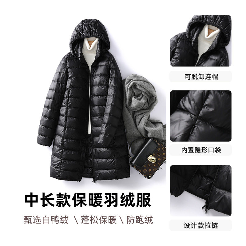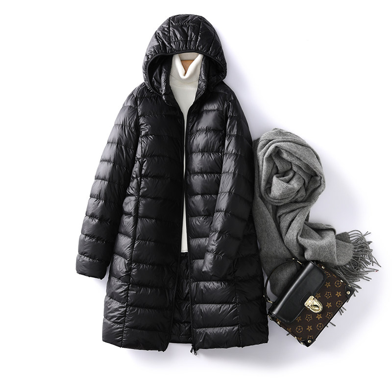 Легкий и тонкий зимний пуховик для отдыха, длинная куртка, французский стиль, средней длины