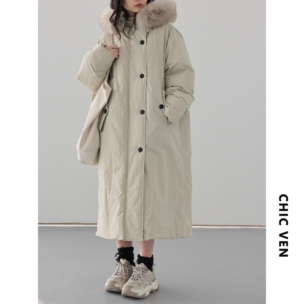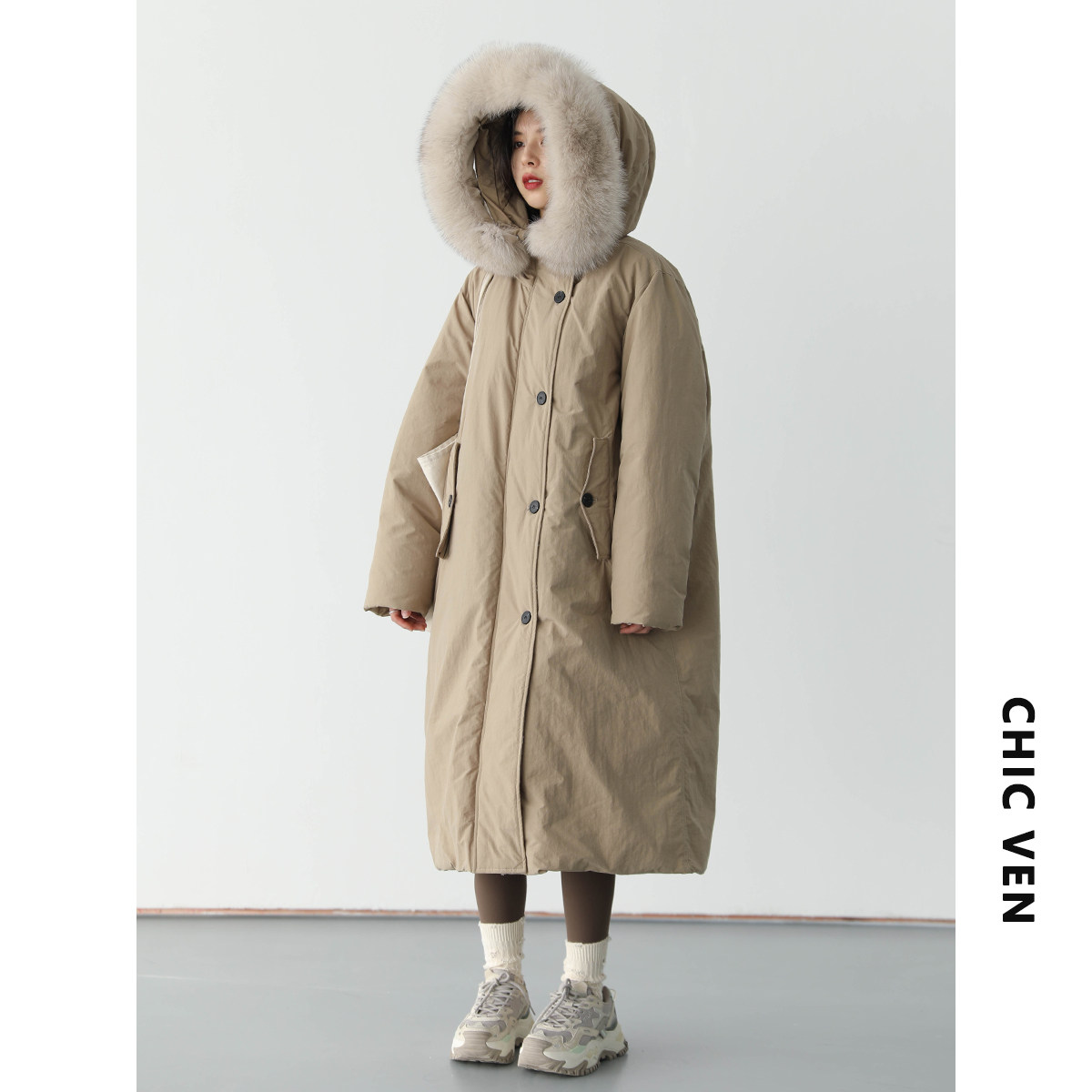 Chicven "return" тяжелый работник лиса шерстяной воротник 90 белая утка вниз по ути