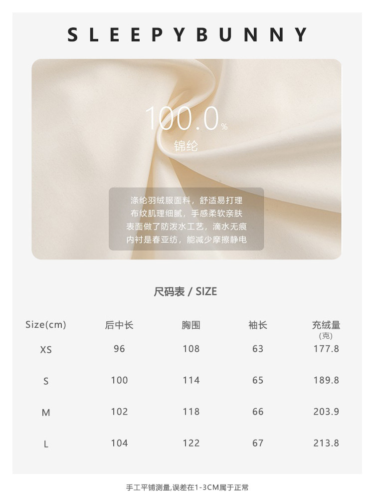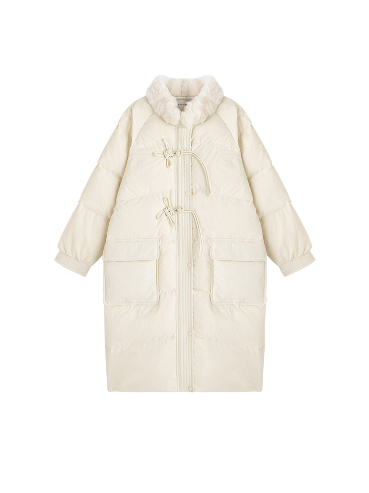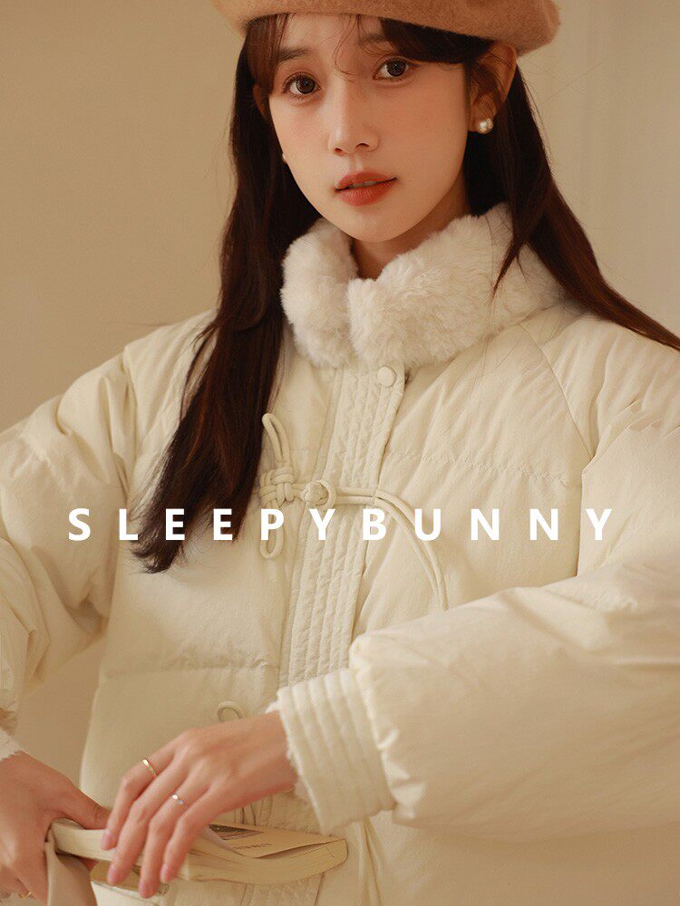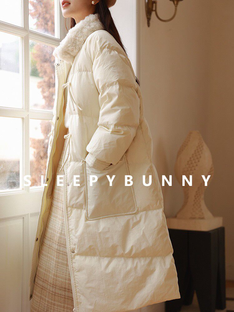 瞌睡兔 Белый пуховик для отдыха, утепленная куртка, оверсайз, длина миди