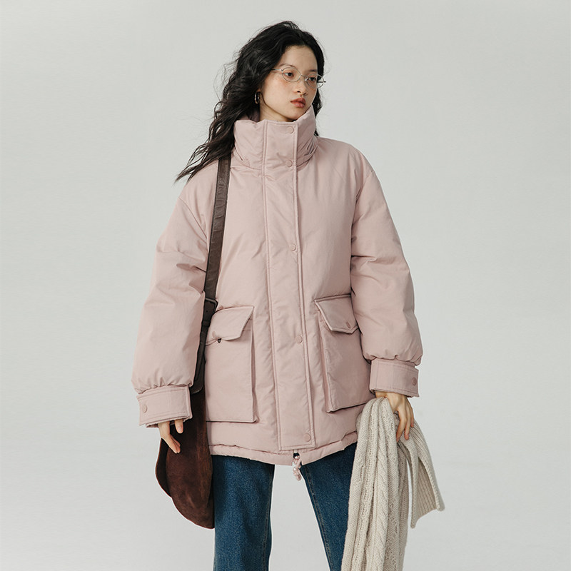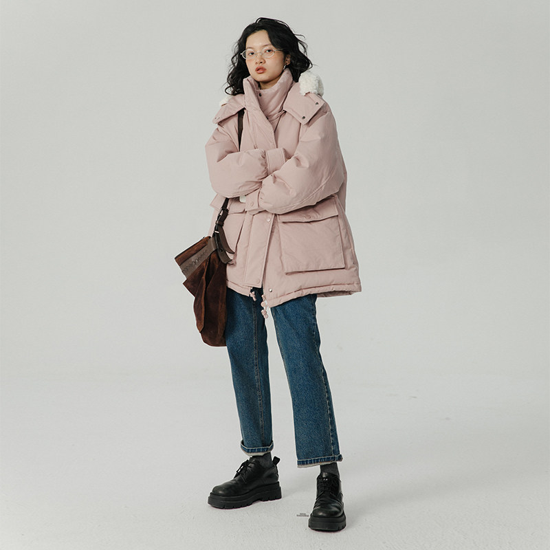 Розовый пуховик с капюшоном, куртка, коллекция 2023, оверсайз