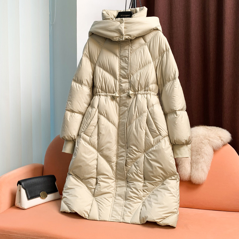 Пуховик для отдыха, длинный корсет с капюшоном, куртка, коллекция 2023, средней длины