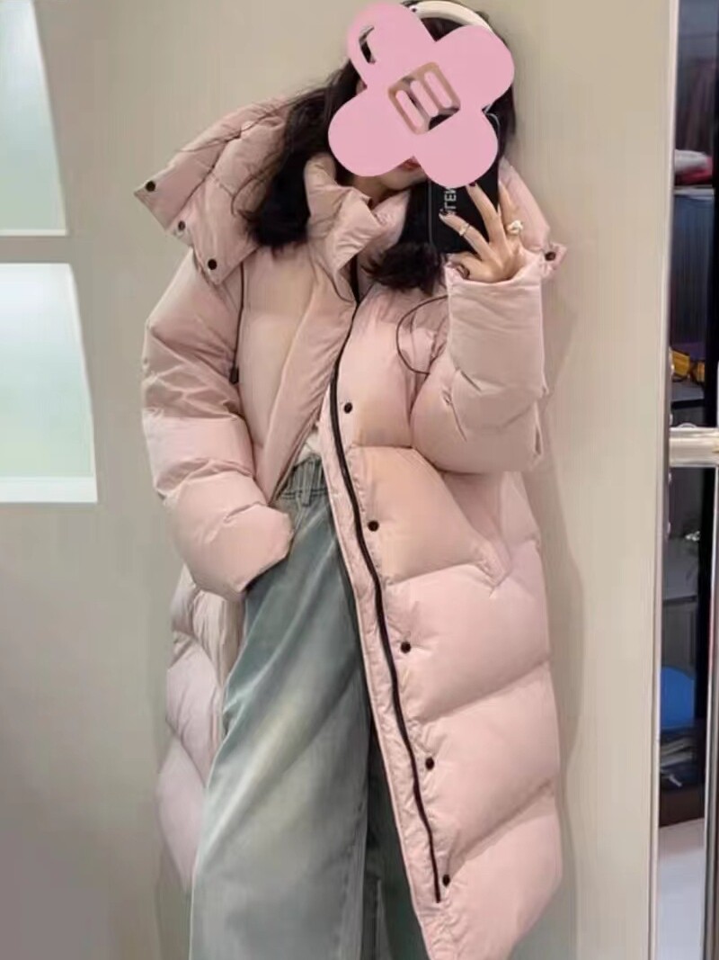 Розовый зимний пуховик, бархатная куртка, длина макси, 2023, оверсайз, утиный пух
