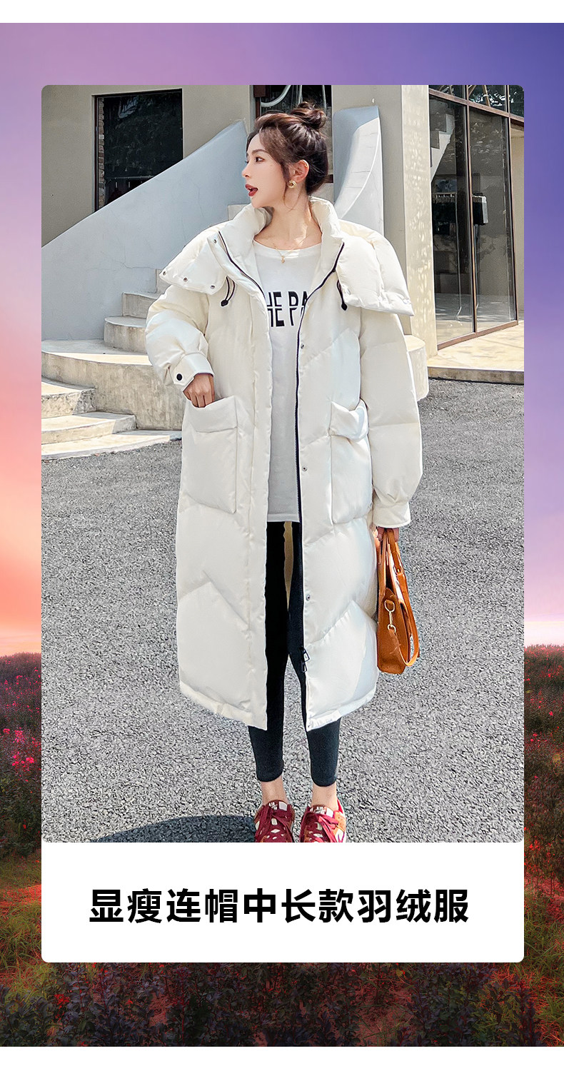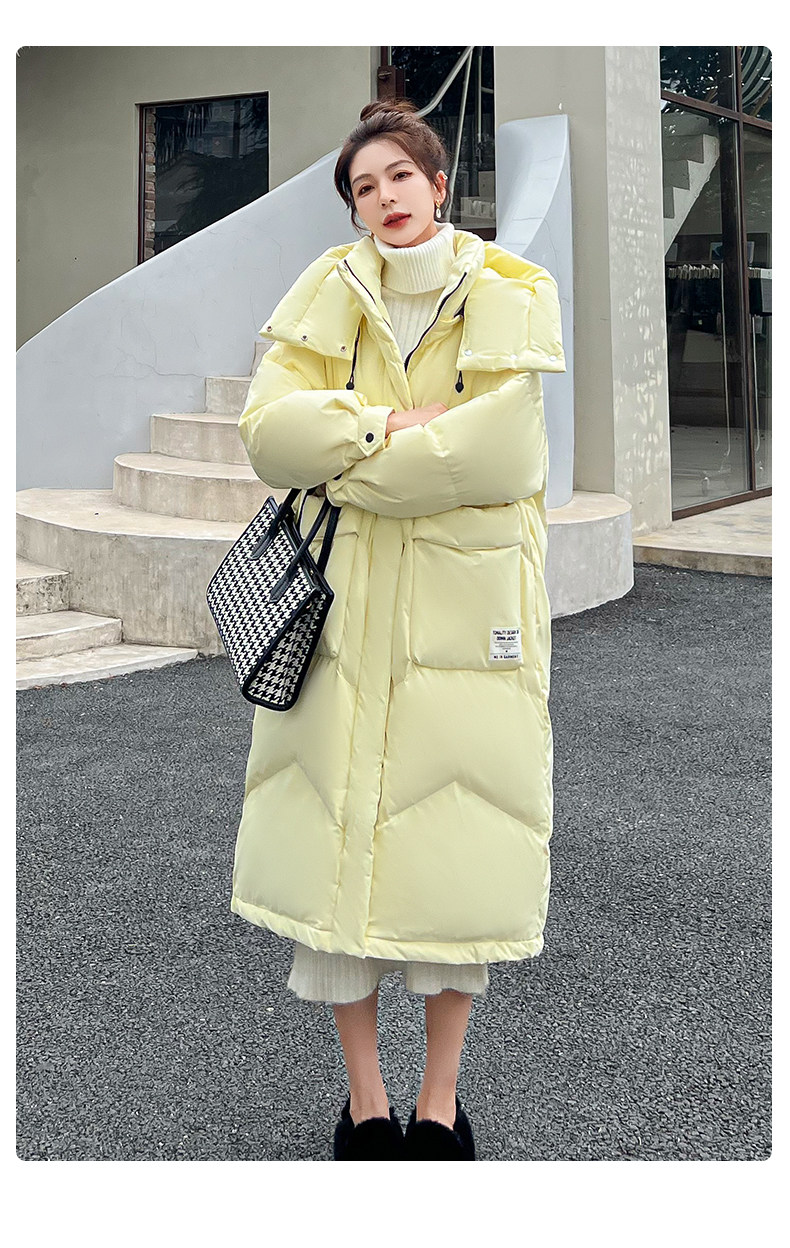 鸭鸭 Осенний длинный пуховик, куртка с капюшоном для отдыха, 2023 года, городской стиль, в корейском стиле