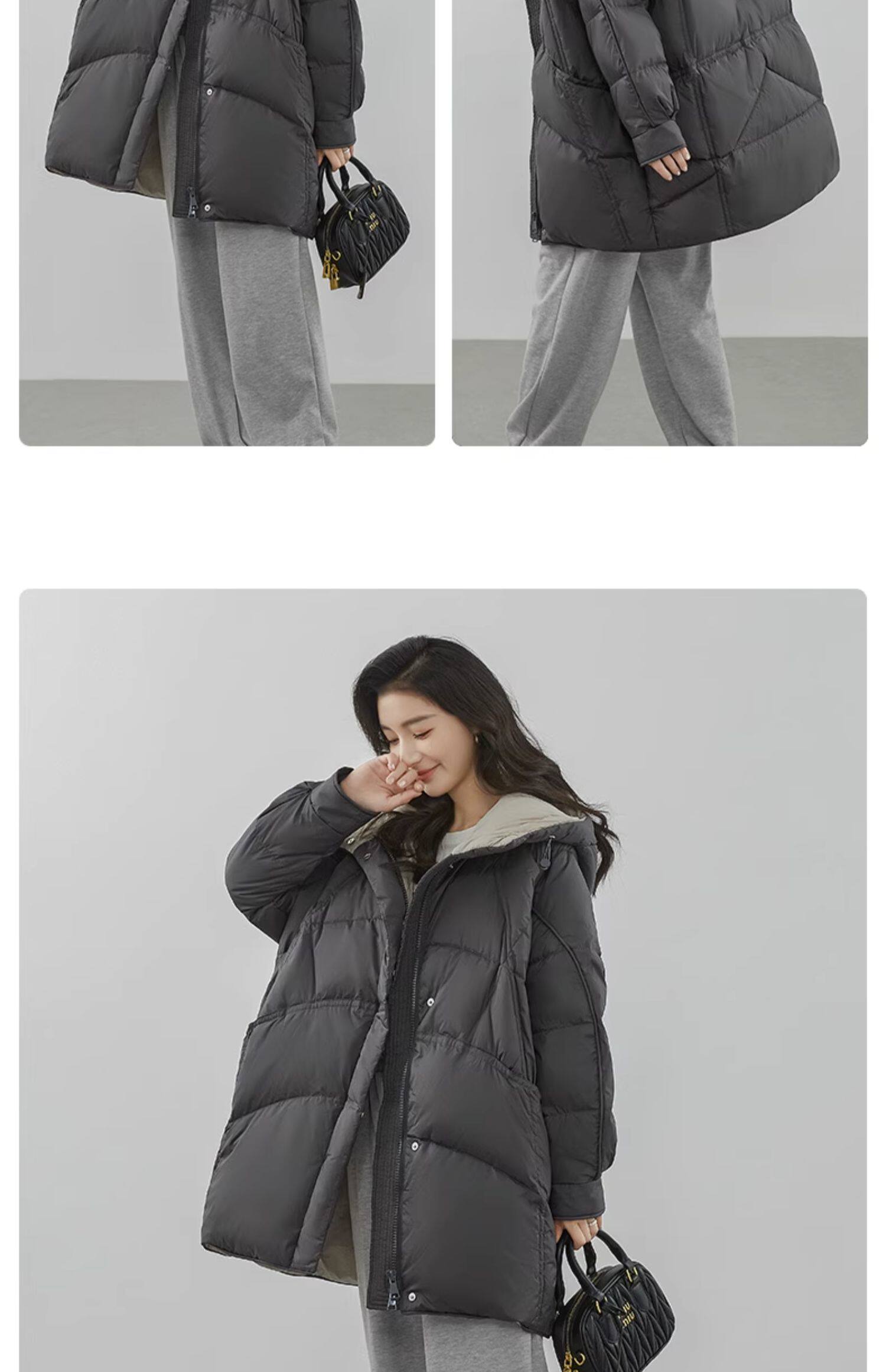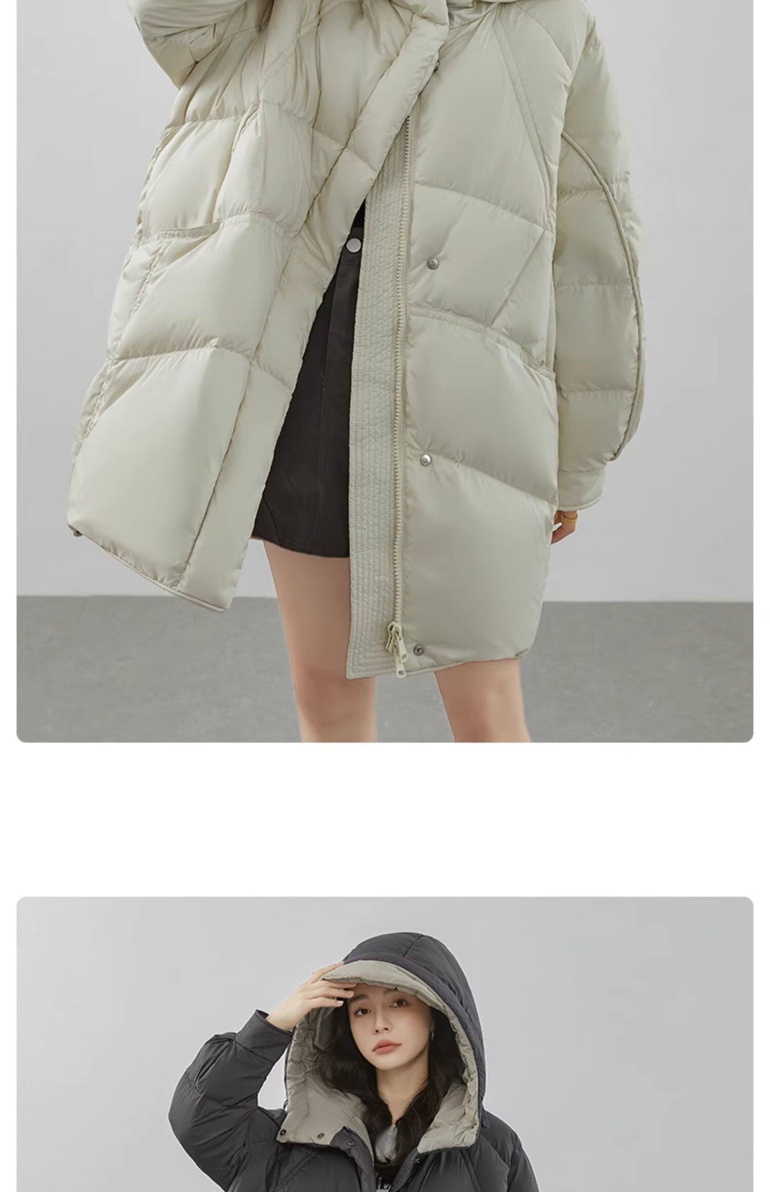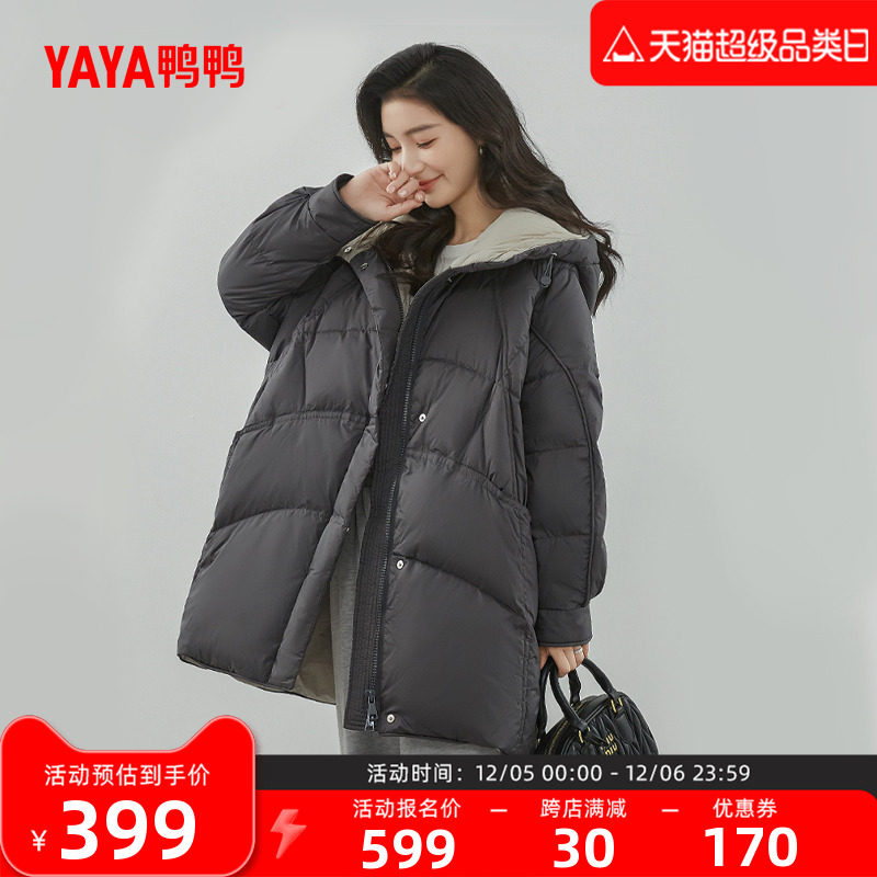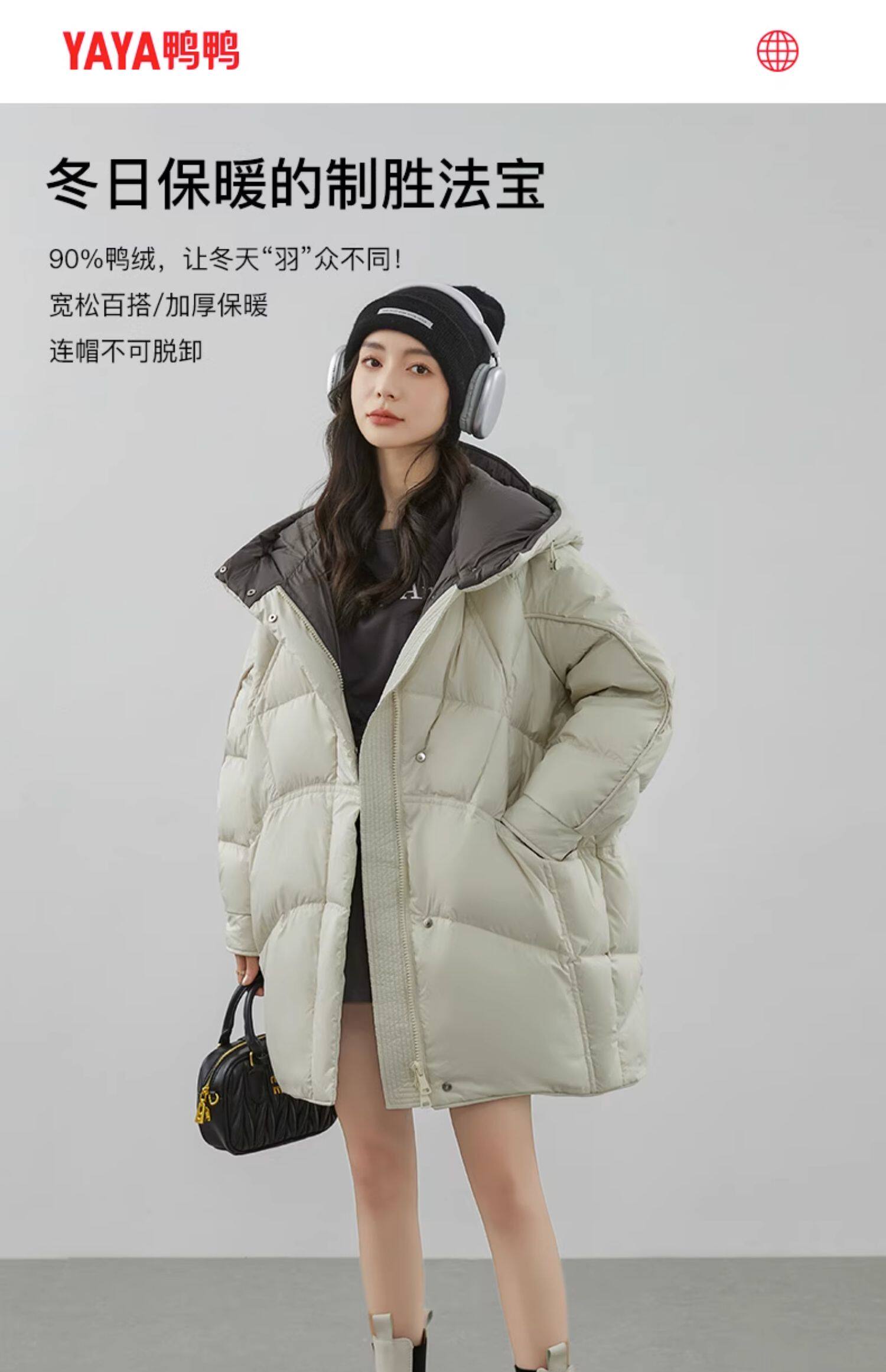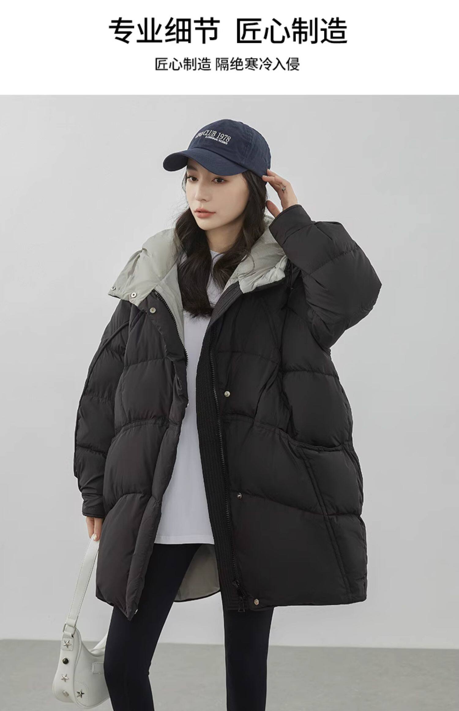 鸭鸭 Пуховик, зимняя длинная толстовка с капюшоном, куртка, средней длины, оверсайз, увеличенная толщина, в корейском стиле