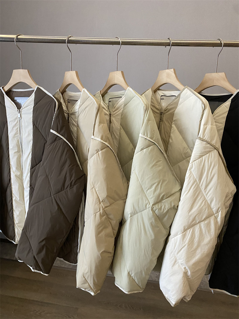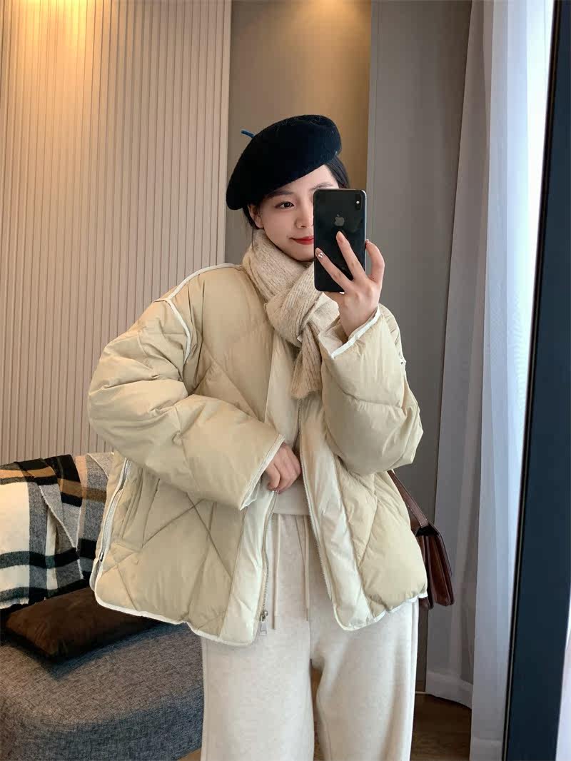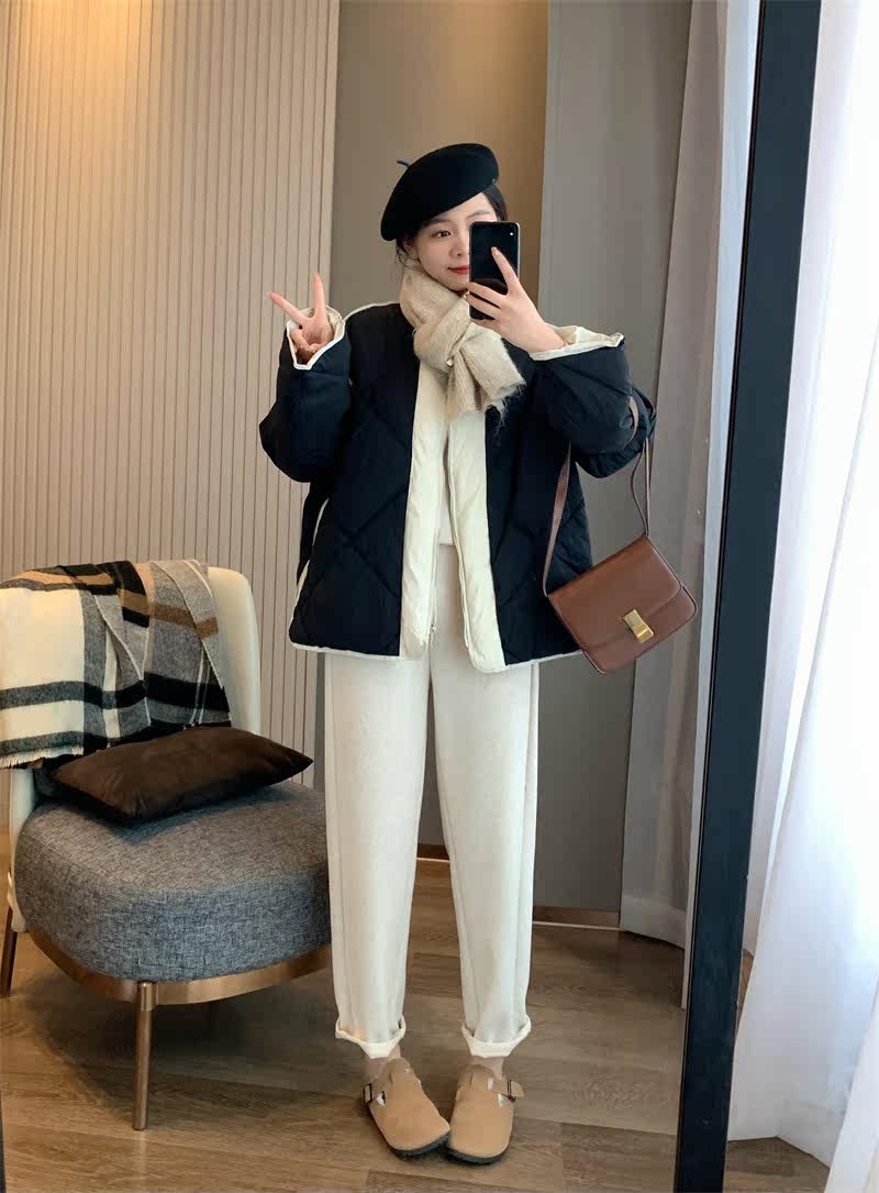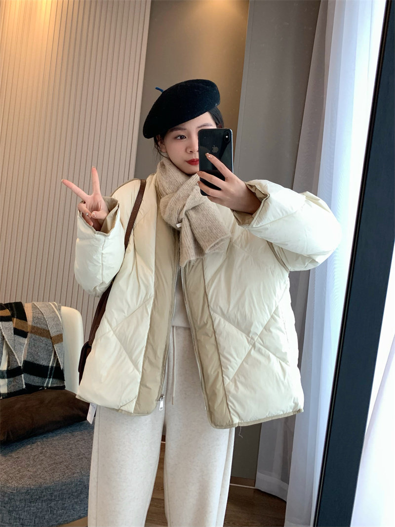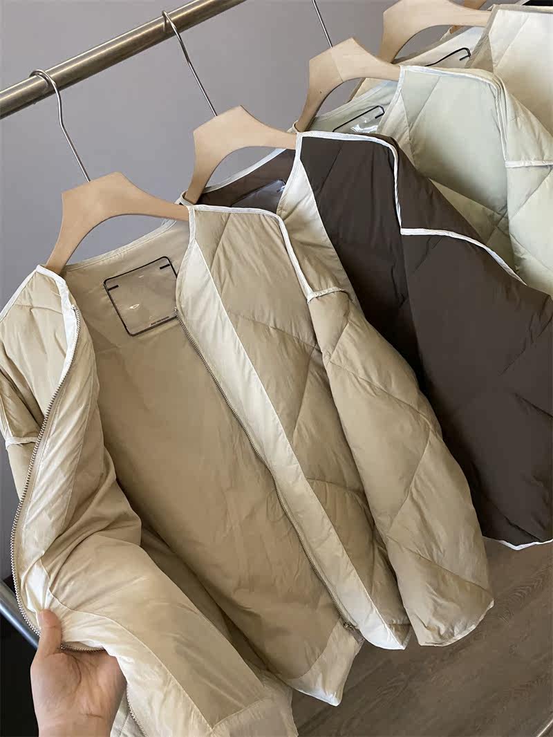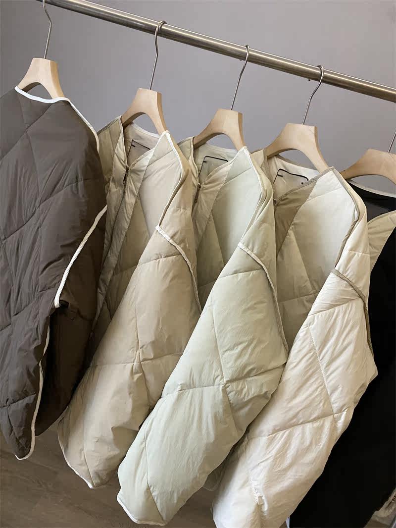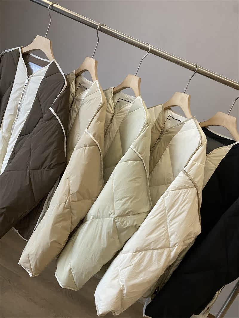 IN BLUE Зимний бархатный легкий и тонкий пуховик с круглым воротником с ромбовидным узором, утиный пух