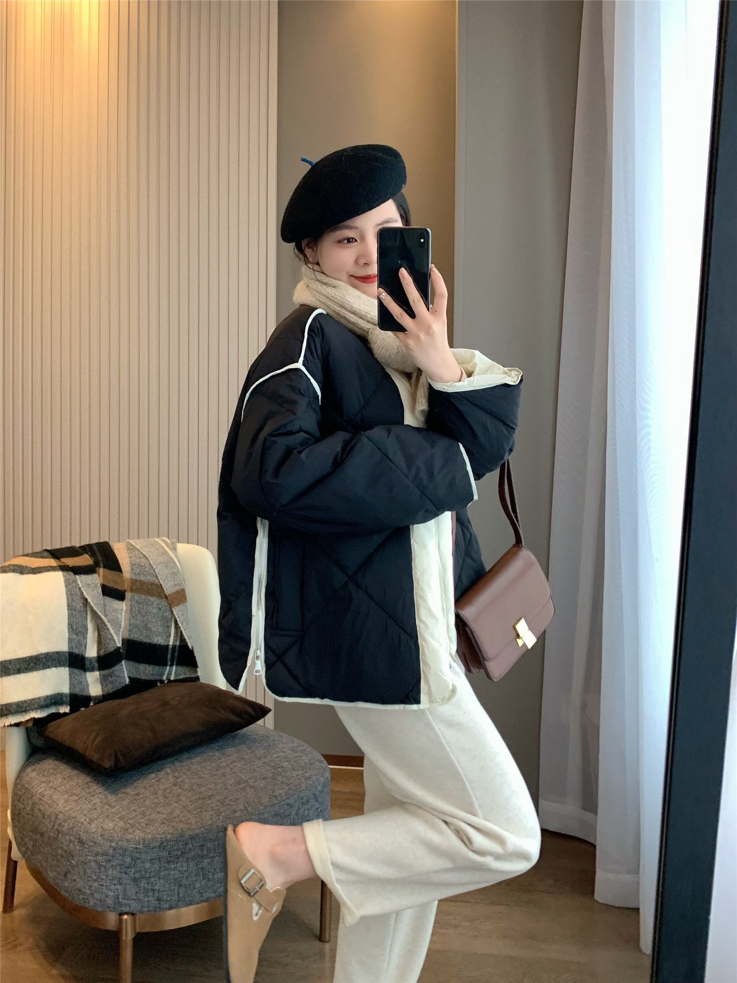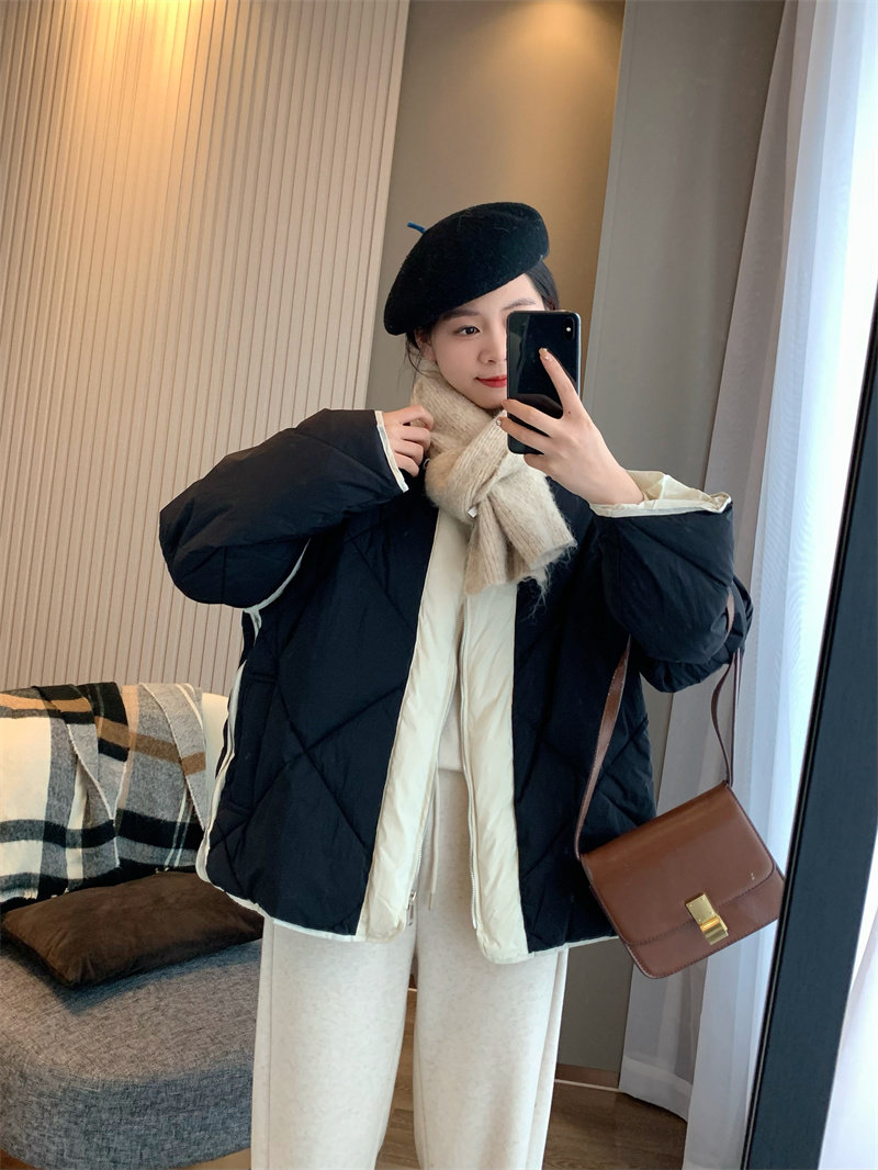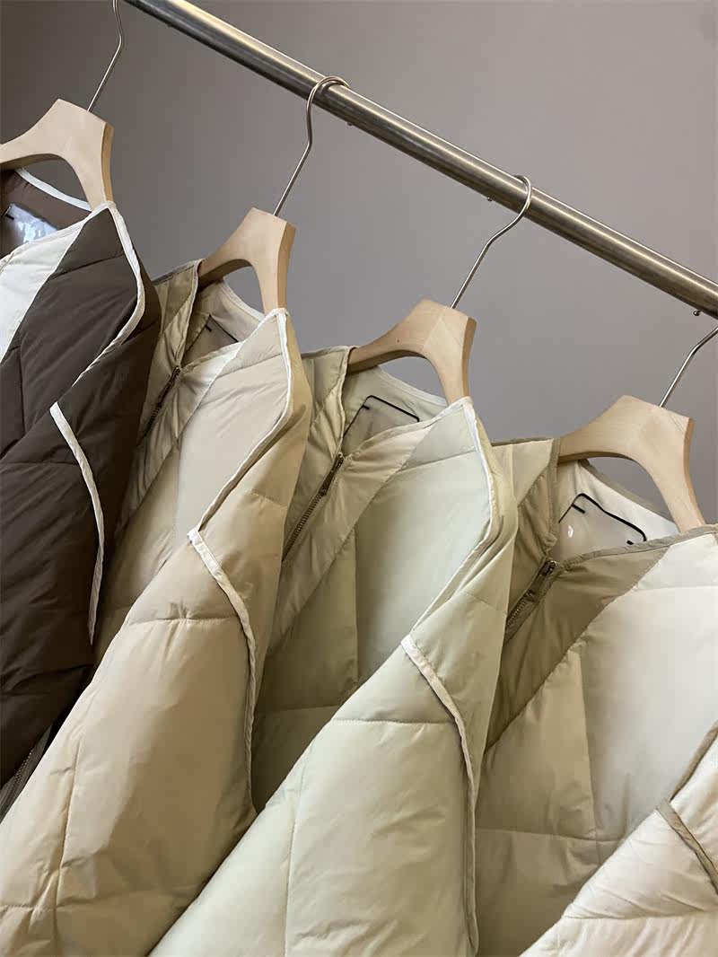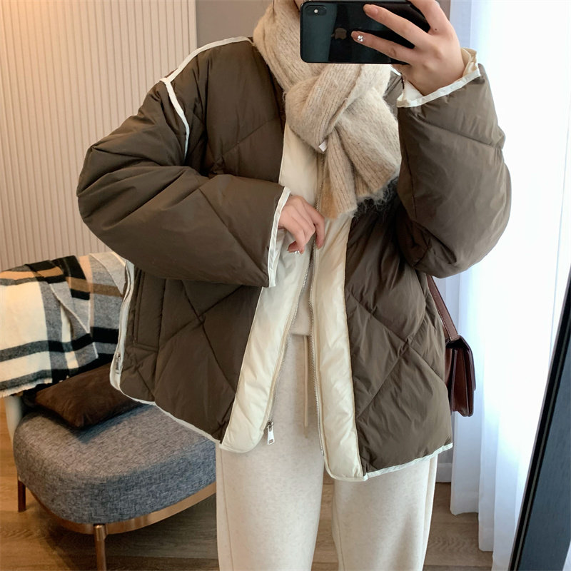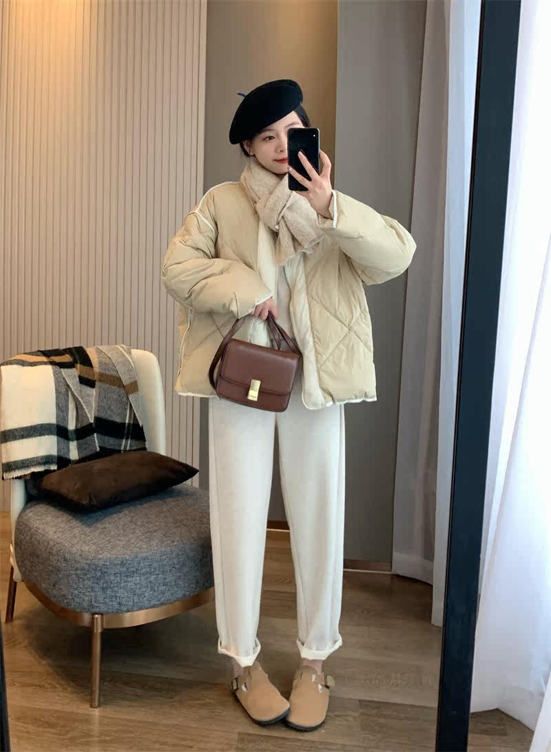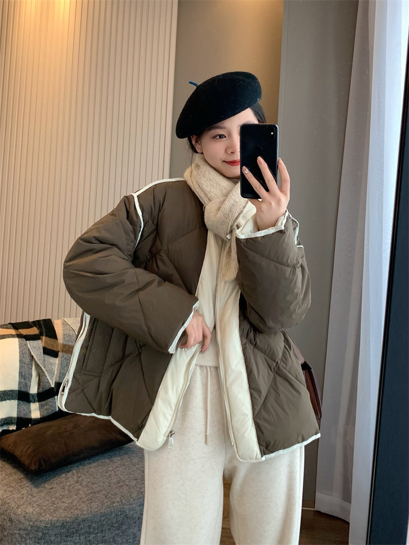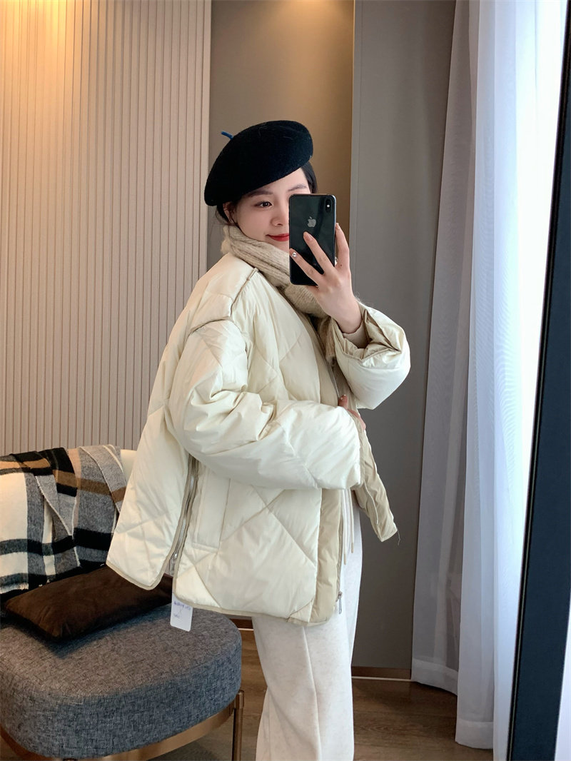 IN BLUE Зимний бархатный легкий и тонкий пуховик с круглым воротником с ромбовидным узором, утиный пух